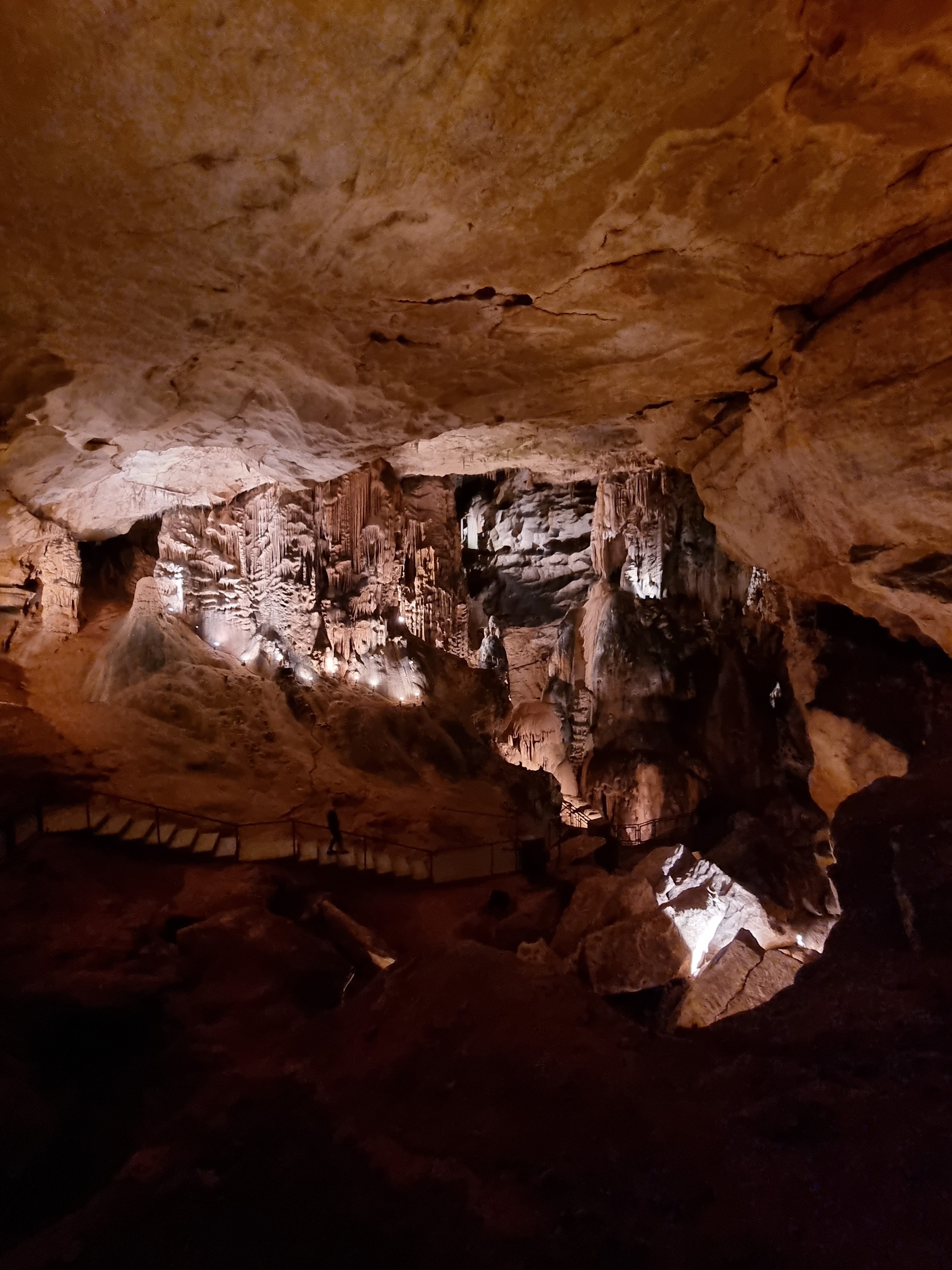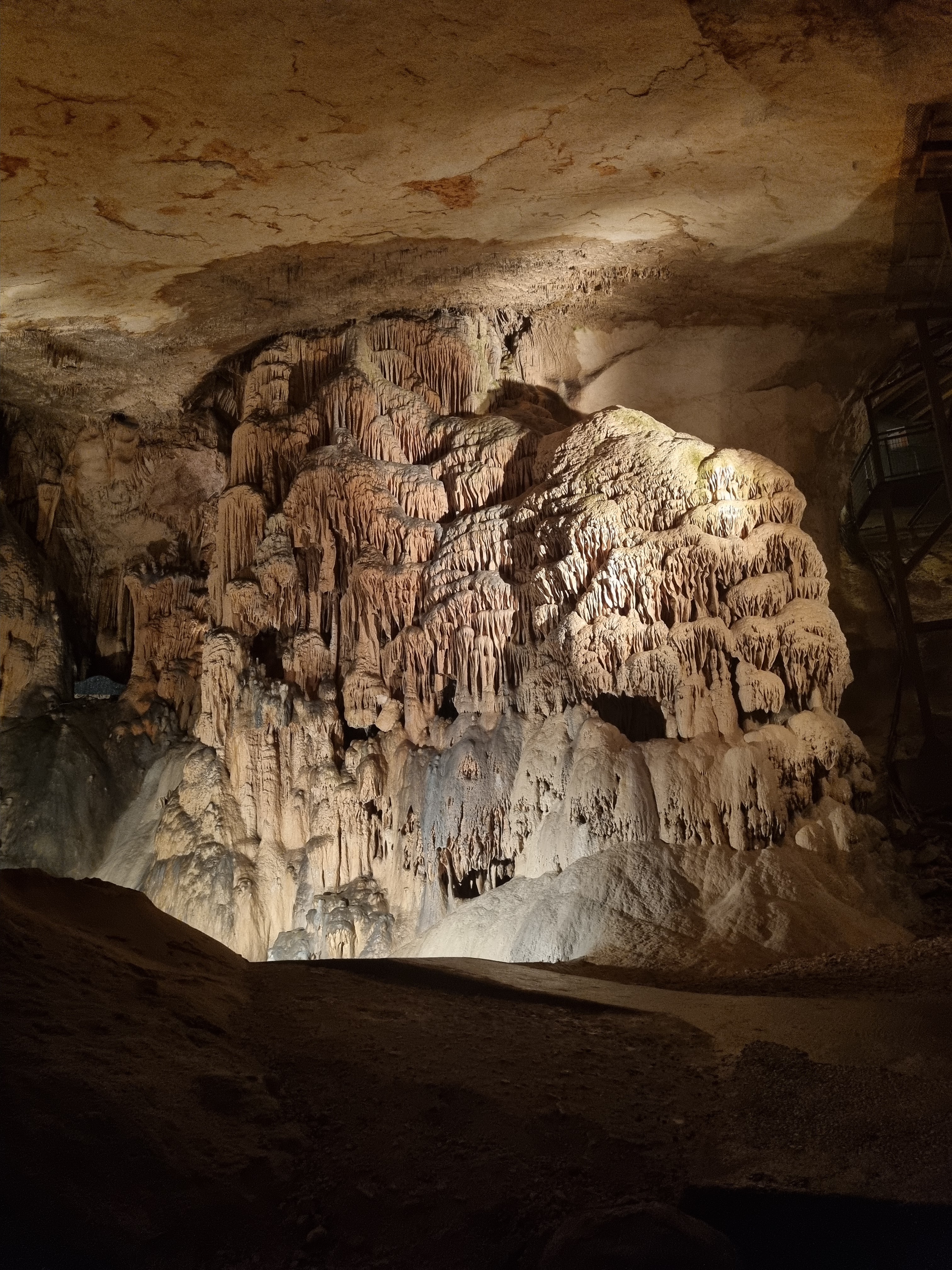 Plus de 400 marches pour y accéder, jusqu'à 50m de hauteur de plafond, des proportions de stalagtites et concrétions énormes... Mise en lumière intelligente, guide sympa (le matin sans réservation, c'est visite accompagnée, durée 1 heure): à faire !