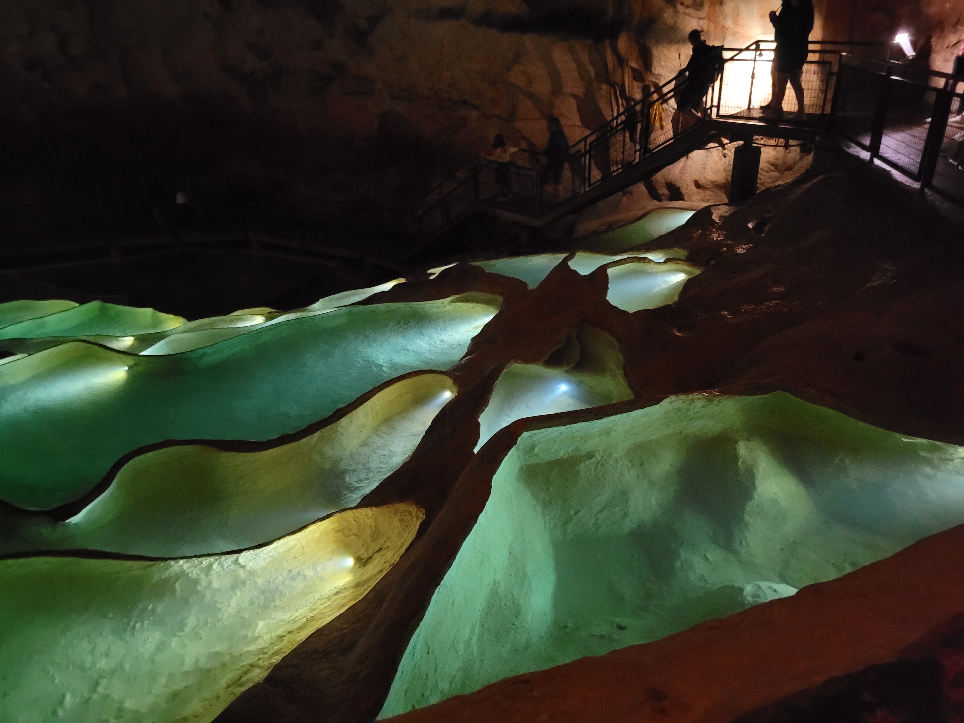 Un départ toute les heures pour visiter la grotte. Il y a de quoi se restaurer autour. La visite dure environs une heure. Il y a une magnifique galerie couleur tiramisu, des très belles gours et des animations sons et lumières à l’intérieur. Il y a beaucoup de visiteurs et il y a maximum à ne pas dépasser, pensez donc à réserver.
