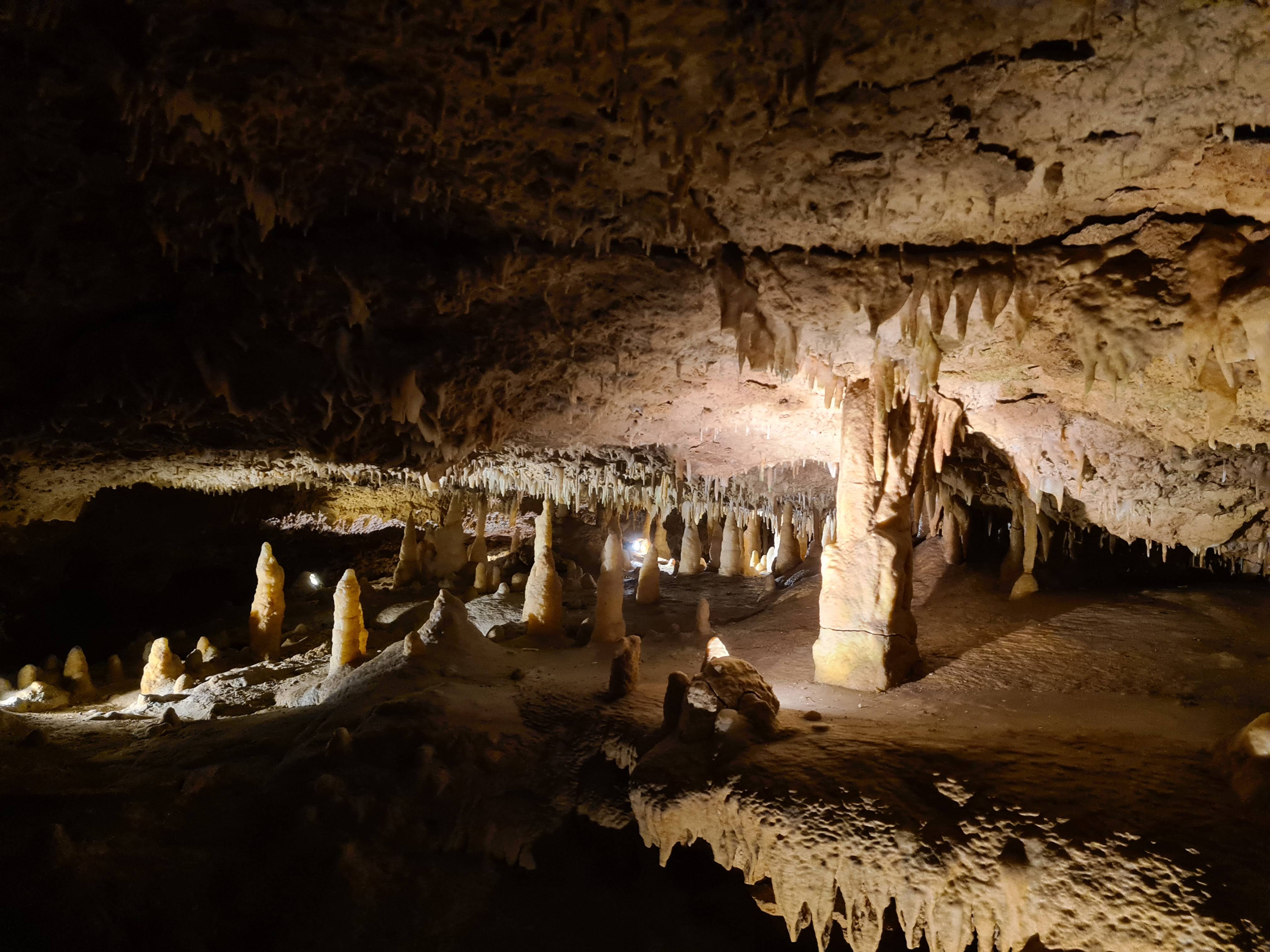 Visite de la grotte en suivent du parc animalier. Bonne petite visite au frais qui permettra de voir différentes formations géologiques tel que des stalagmites et stalagtites ainsi que des drapés et quelques autres. De plus un guide vous expliquera comment sont apparus ces formations et répondra à vos questions sur le site. Une petite boutique de souvenirs et disponible. Guide qui a fait la visite : Maëva