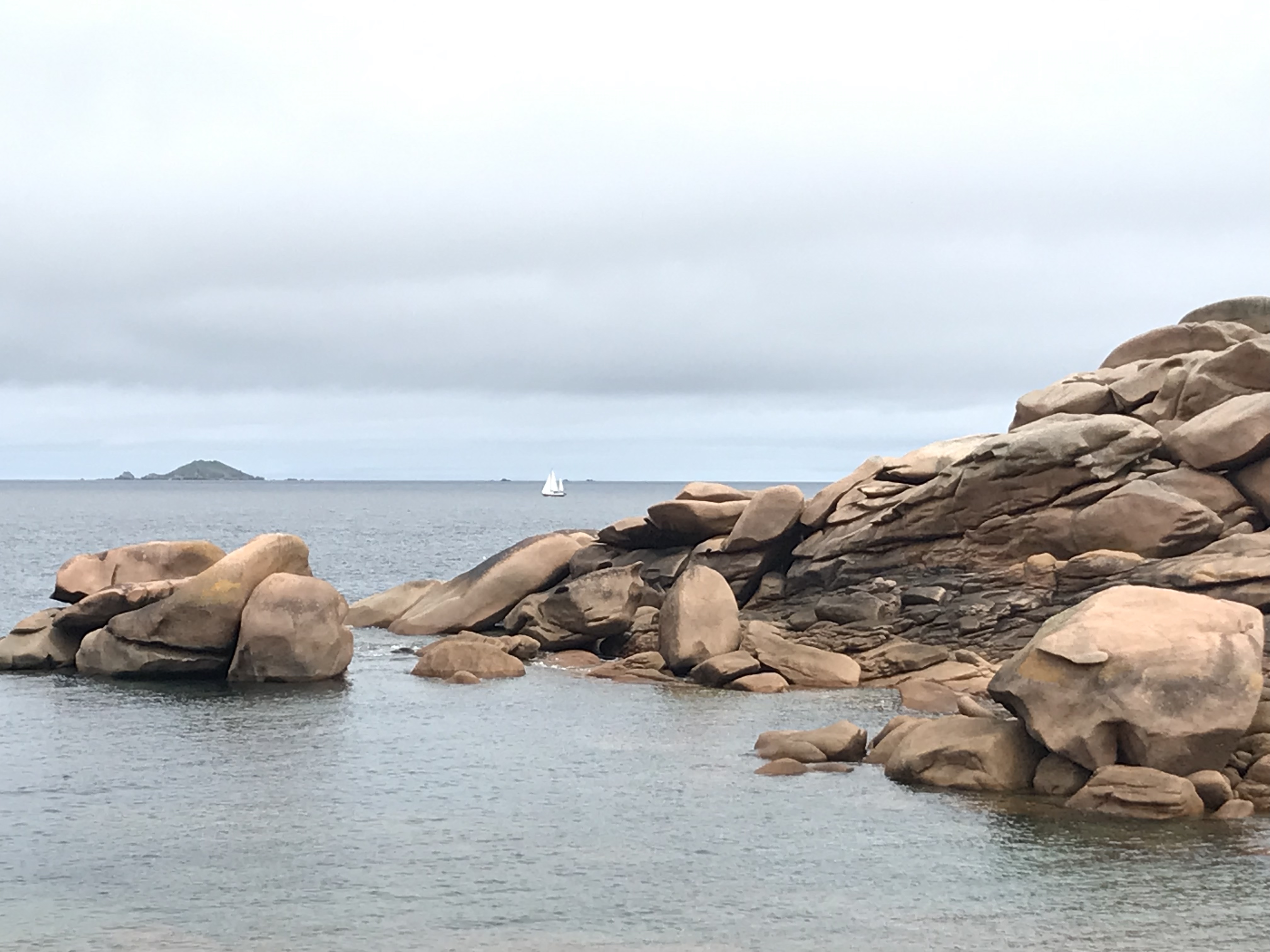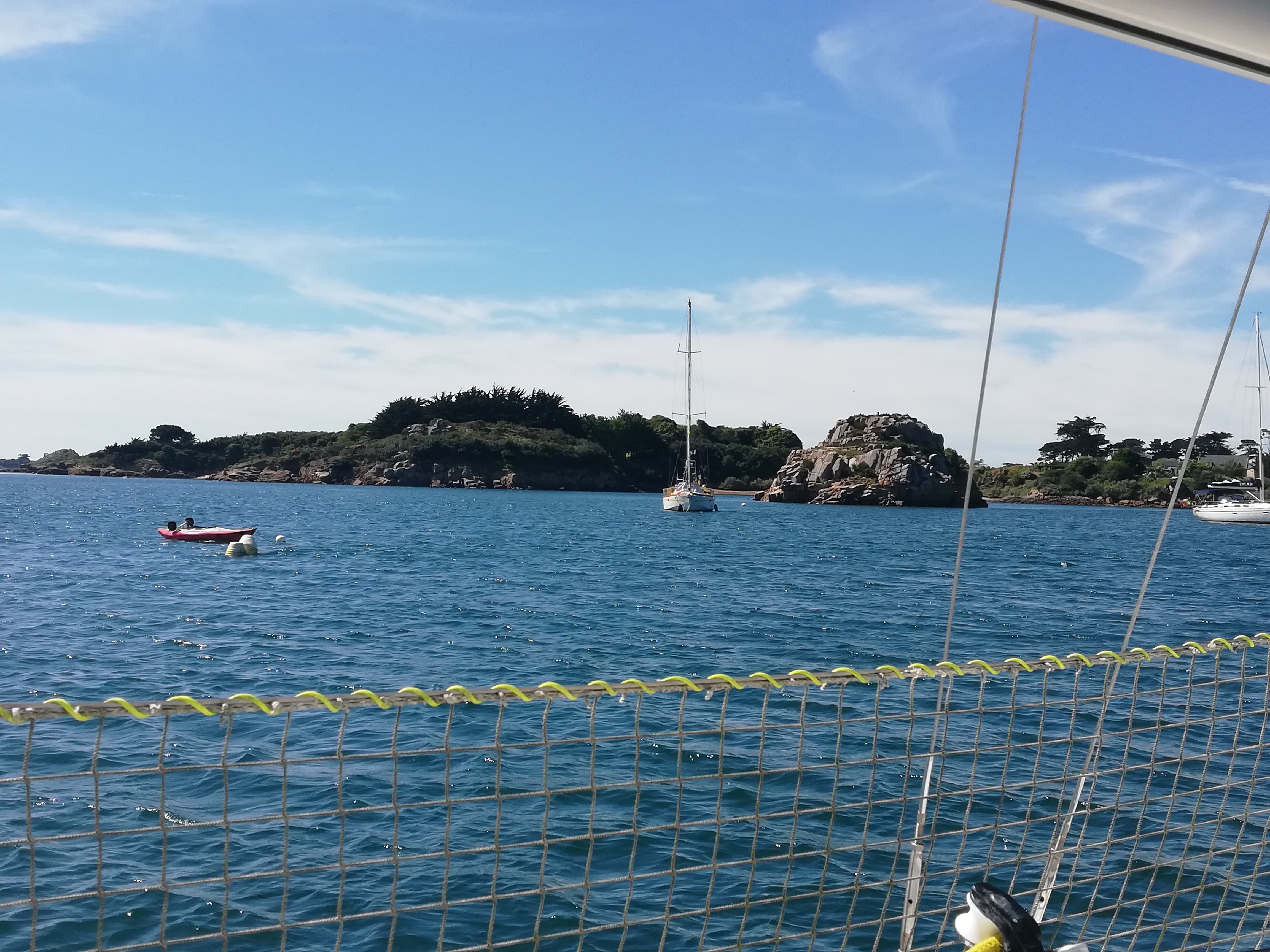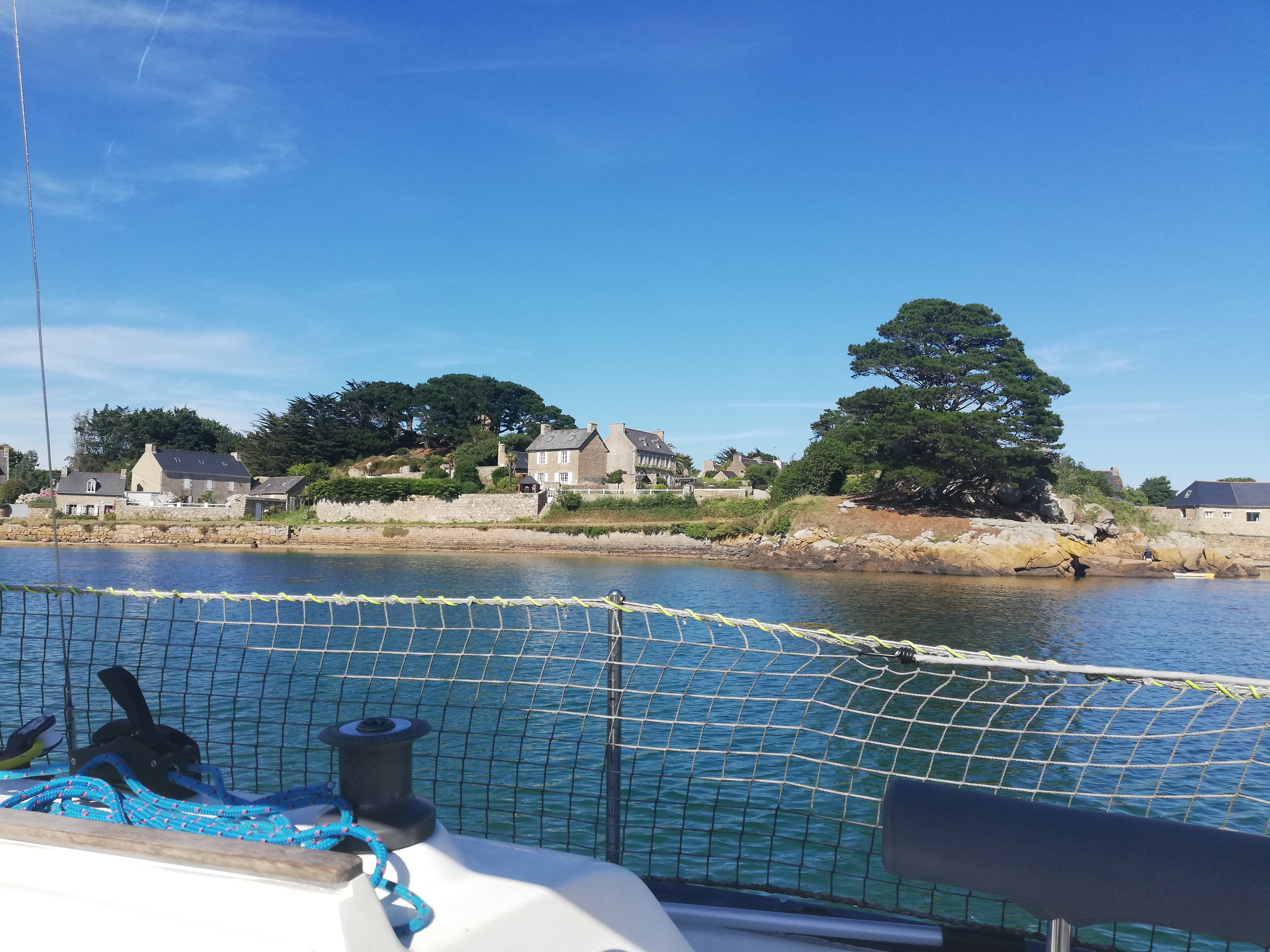 Très belle escale à Bréhat. Mouillage au calme et promenade dans l'île le soir à la fraîche. Je me pose juste une question pourquoi un tracteur pour le petit train touristique et pas un moyen plus écologique :chevaux par exemple.