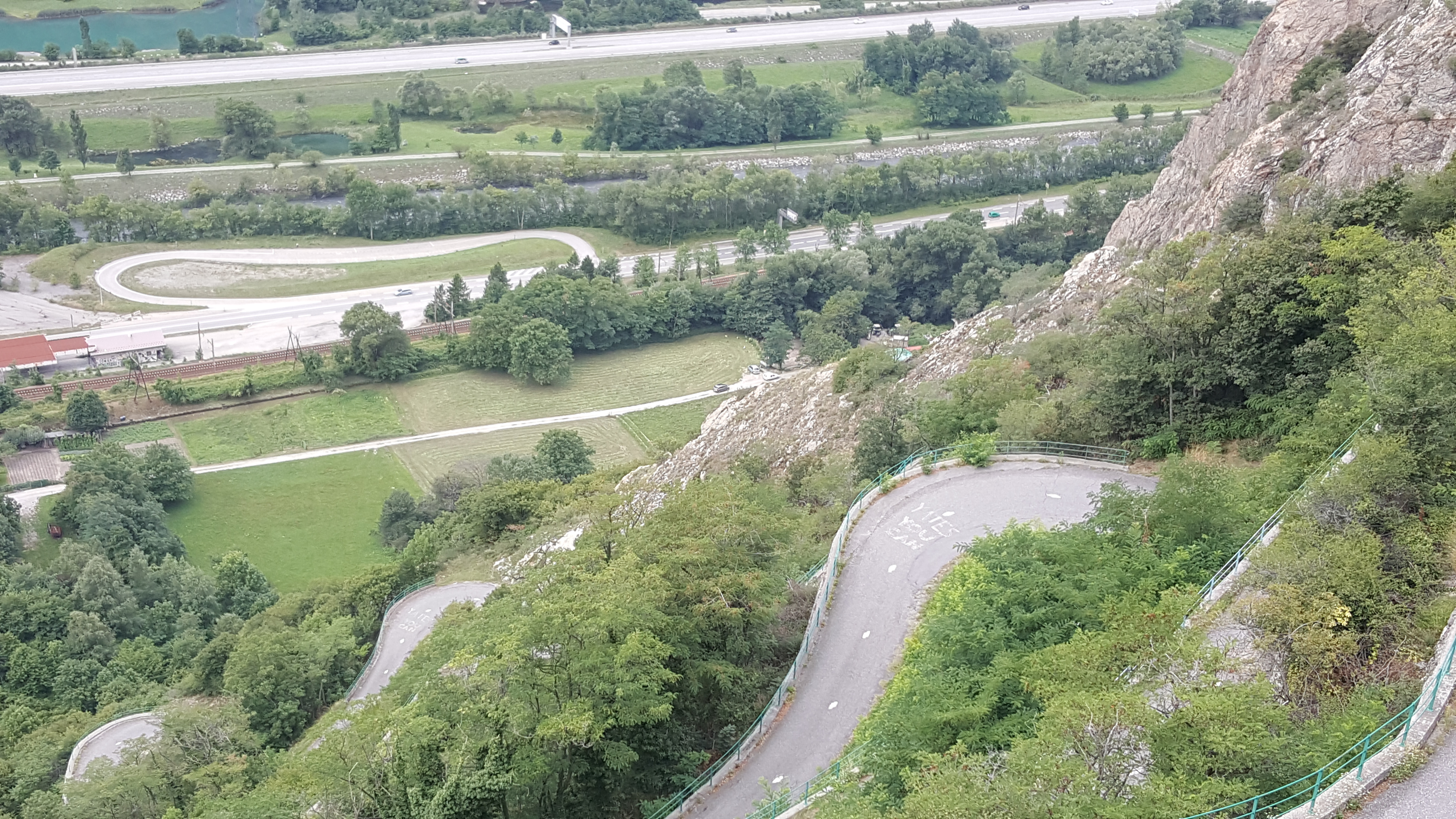 Compte tenu de la largeur de la route, nous avons choisi de monter les lacets en voiture dès 9h45 afin d'éviter tout désagrément. Dépasser quelques vélos et croiser un riverain en voiture a été faisable sans se presser. La montée s'effectue tranquillement en observant la vue sur la vallée. Nous avons préféré redescendre par Le Chatel et Hermillon. A voir absolument !