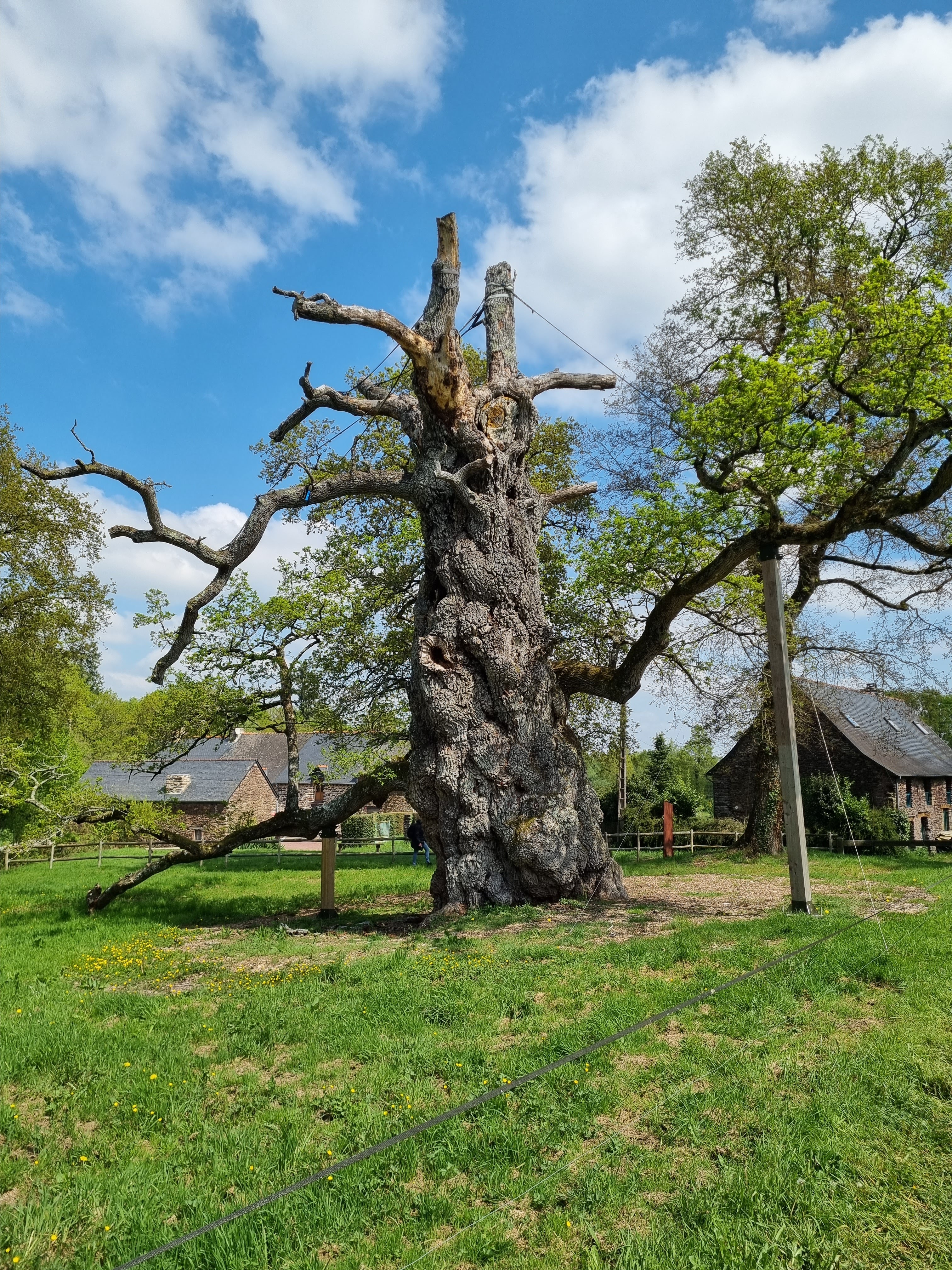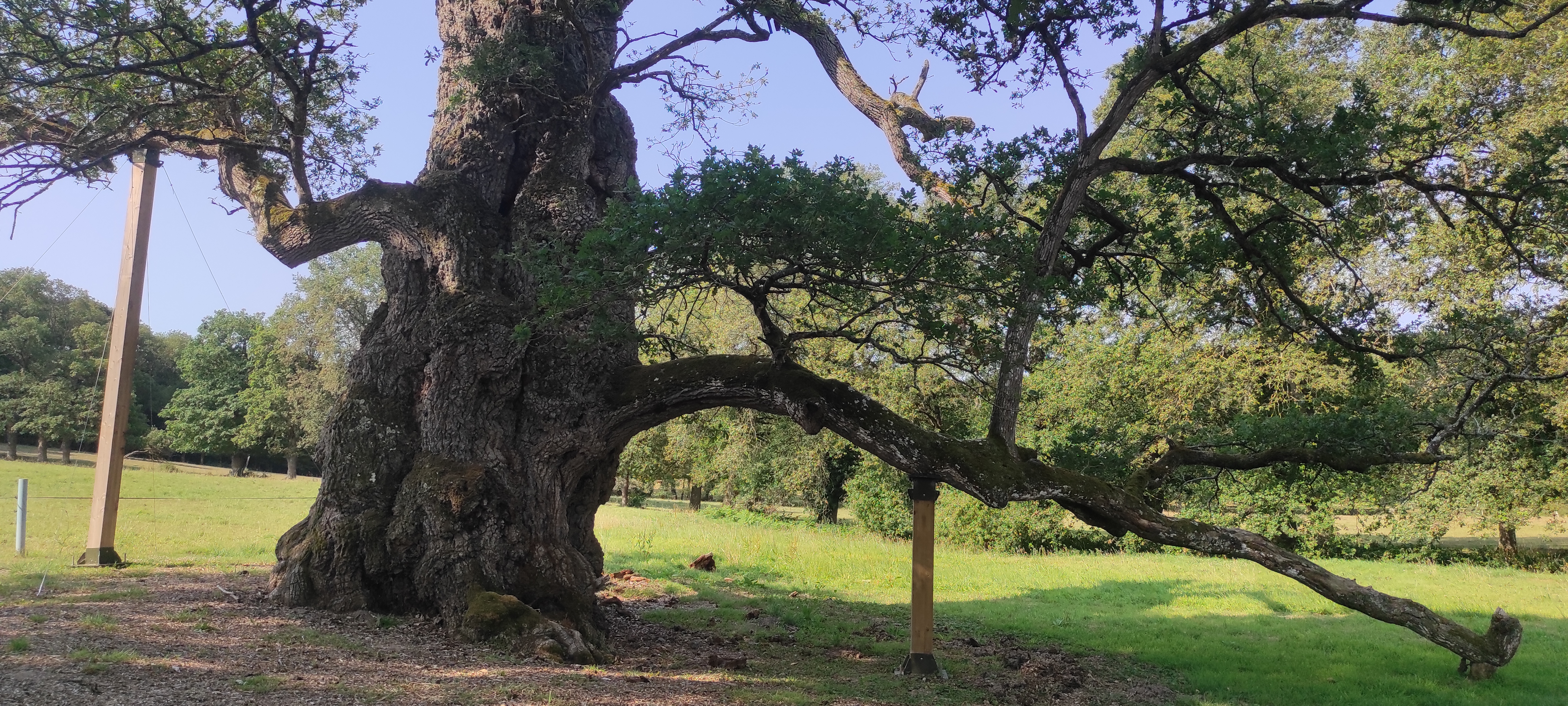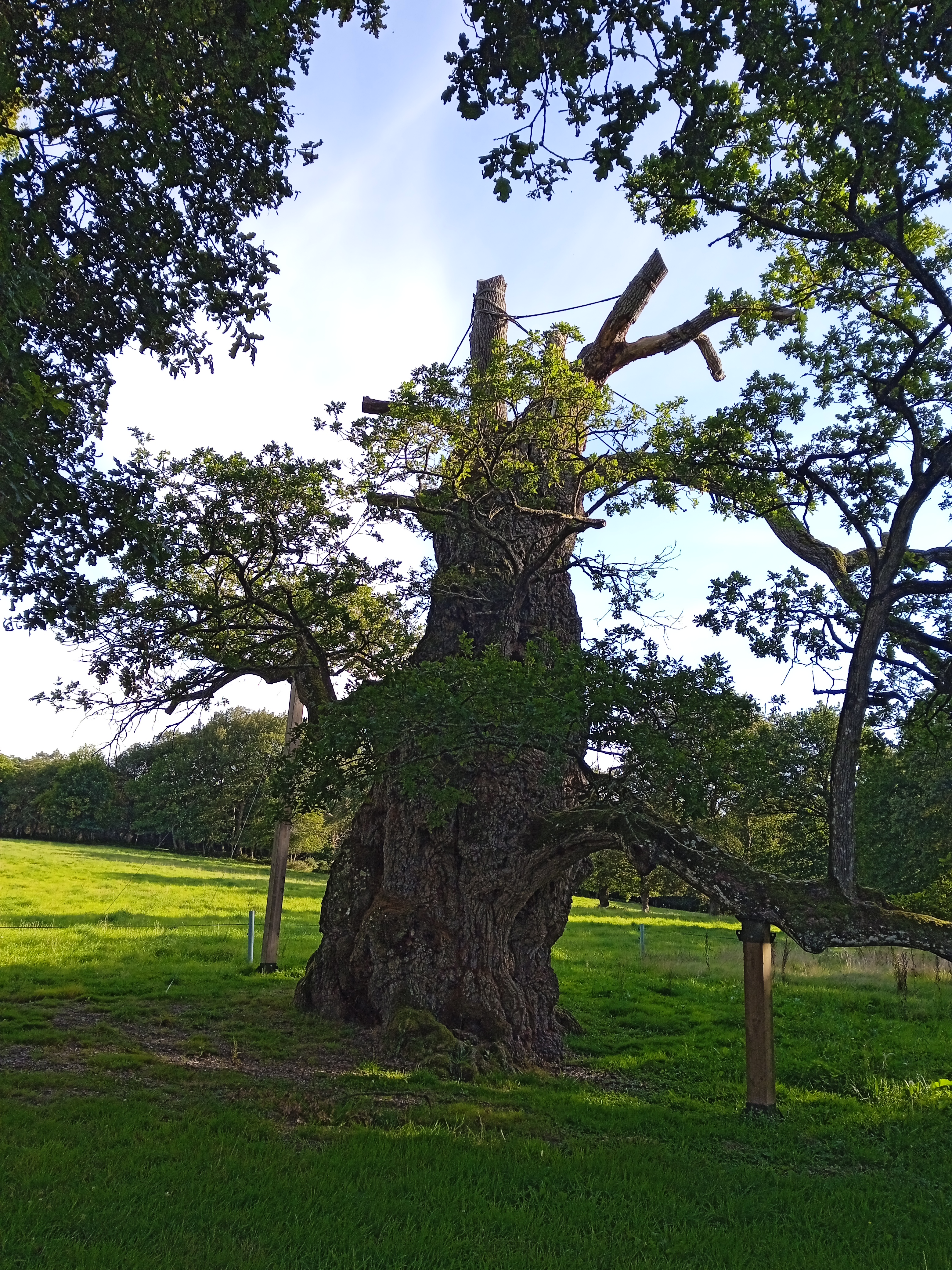 Tout à fait remarquable de pouvoir contempler ce chêne qui a traversé bien des époques et est toujours debout. Il est un peu en souffrance mais il est aidé par des tuteurs très solides.