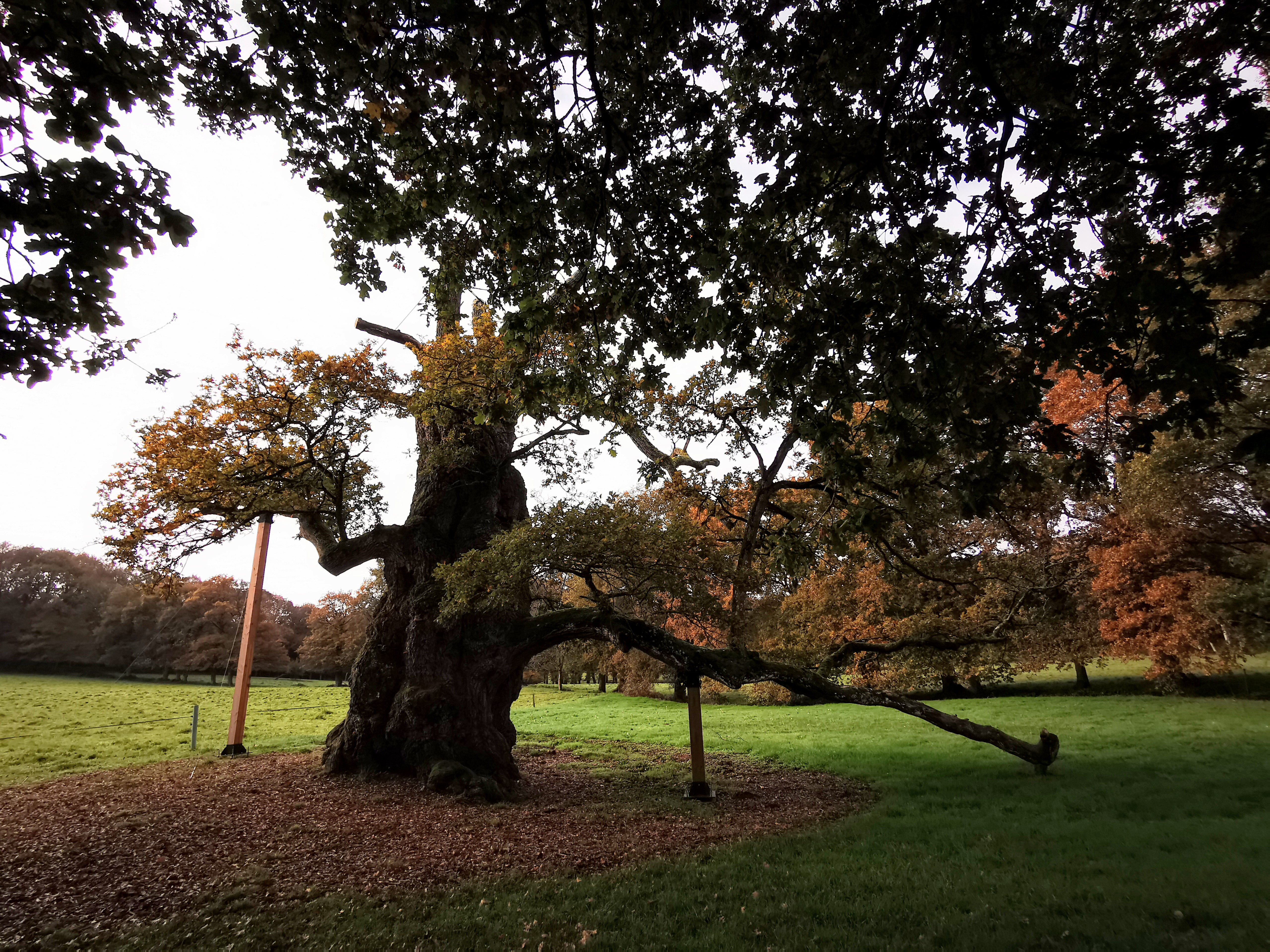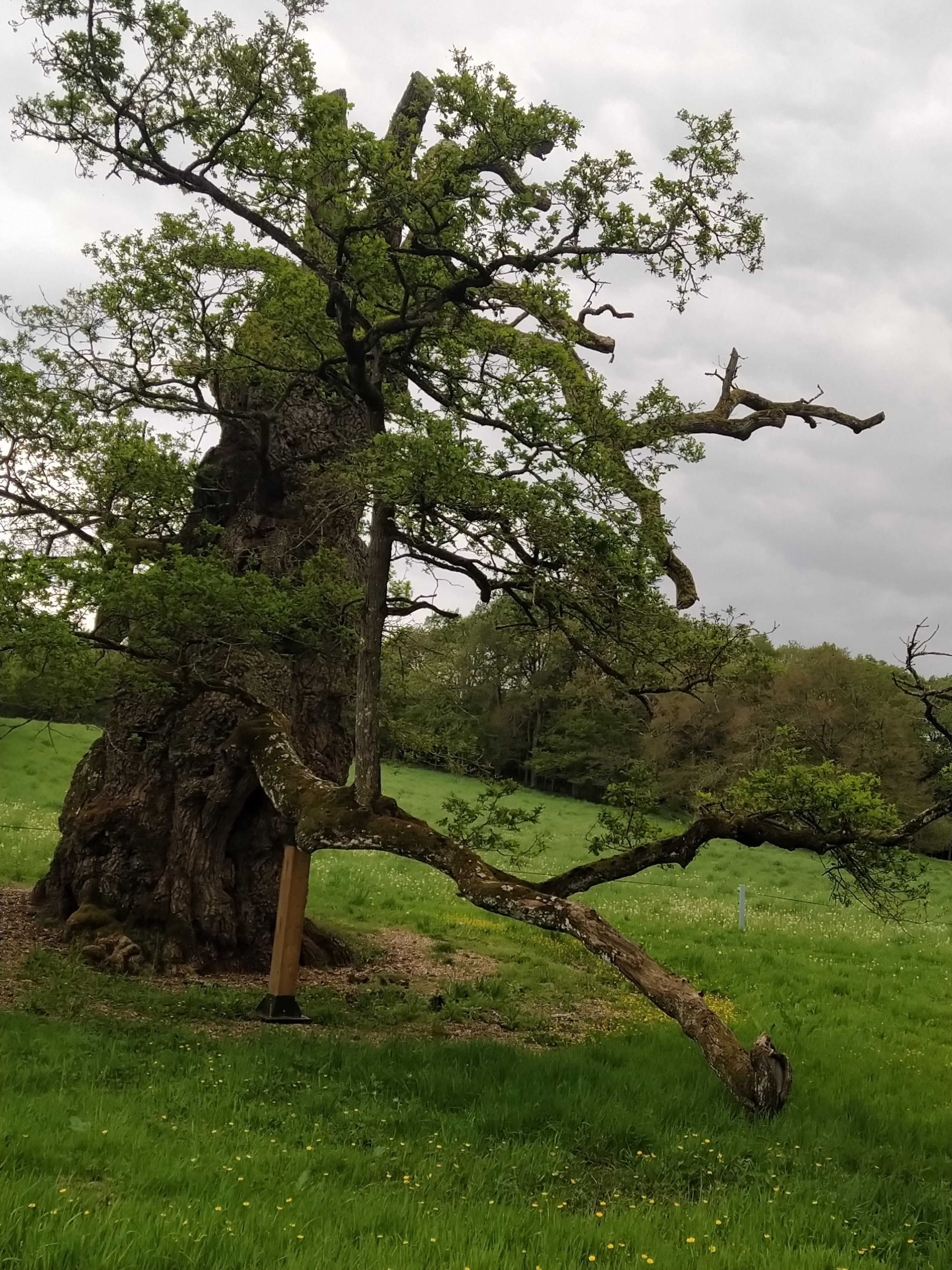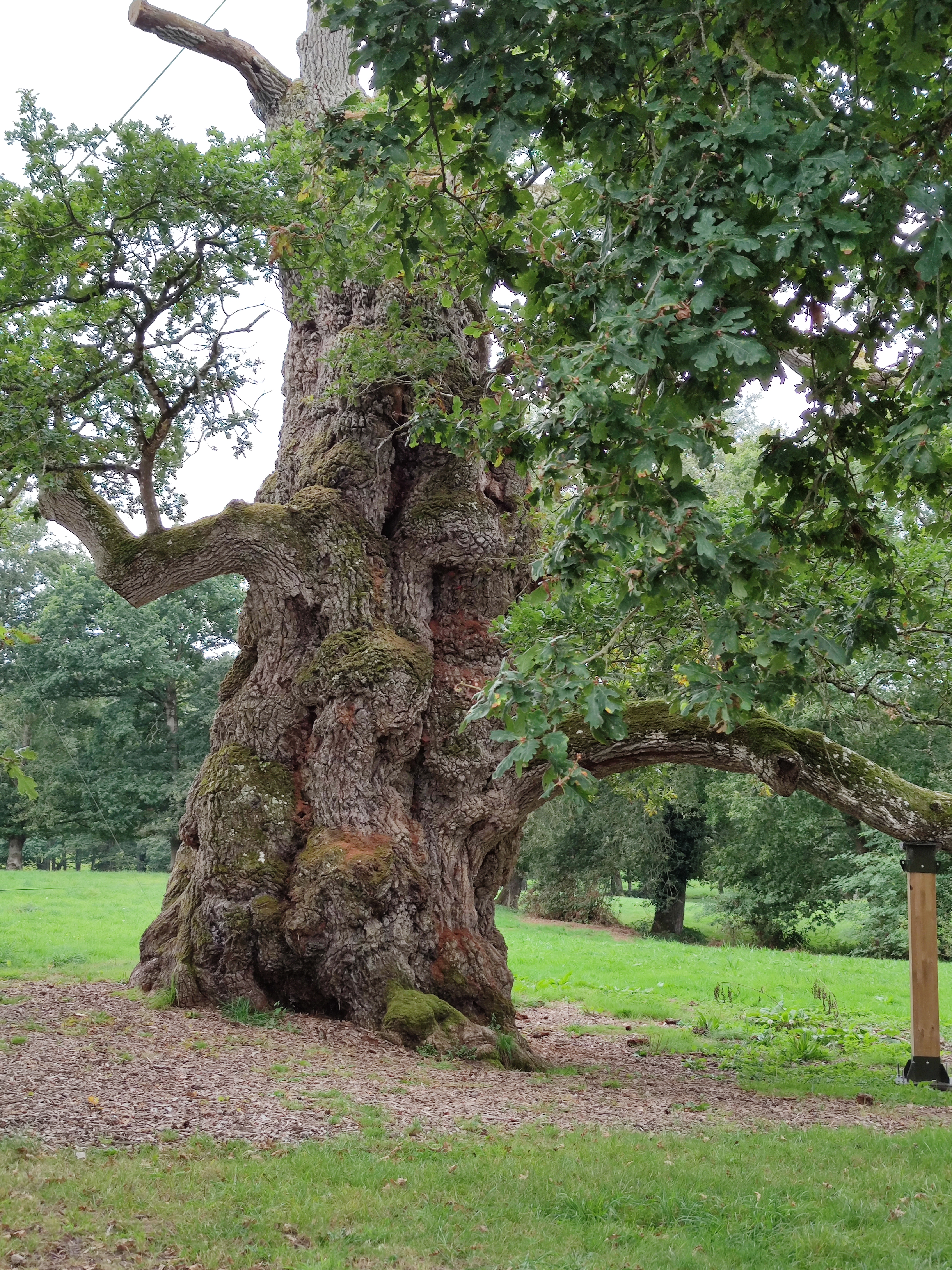 Tout à fait remarquable de pouvoir contempler ce chêne qui a traversé bien des époques et est toujours debout. Il est un peu en souffrance mais il est aidé par des tuteurs très solides.