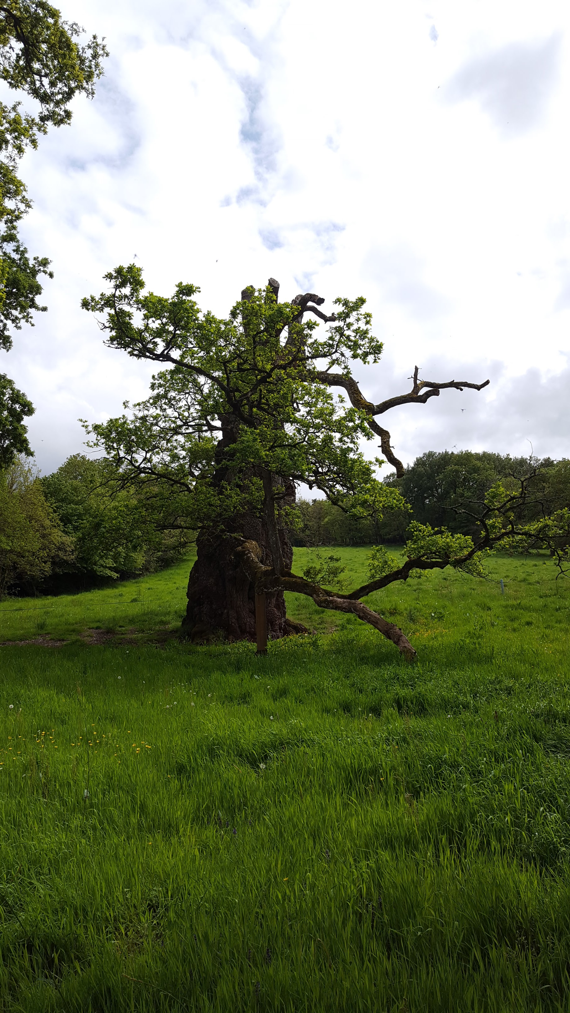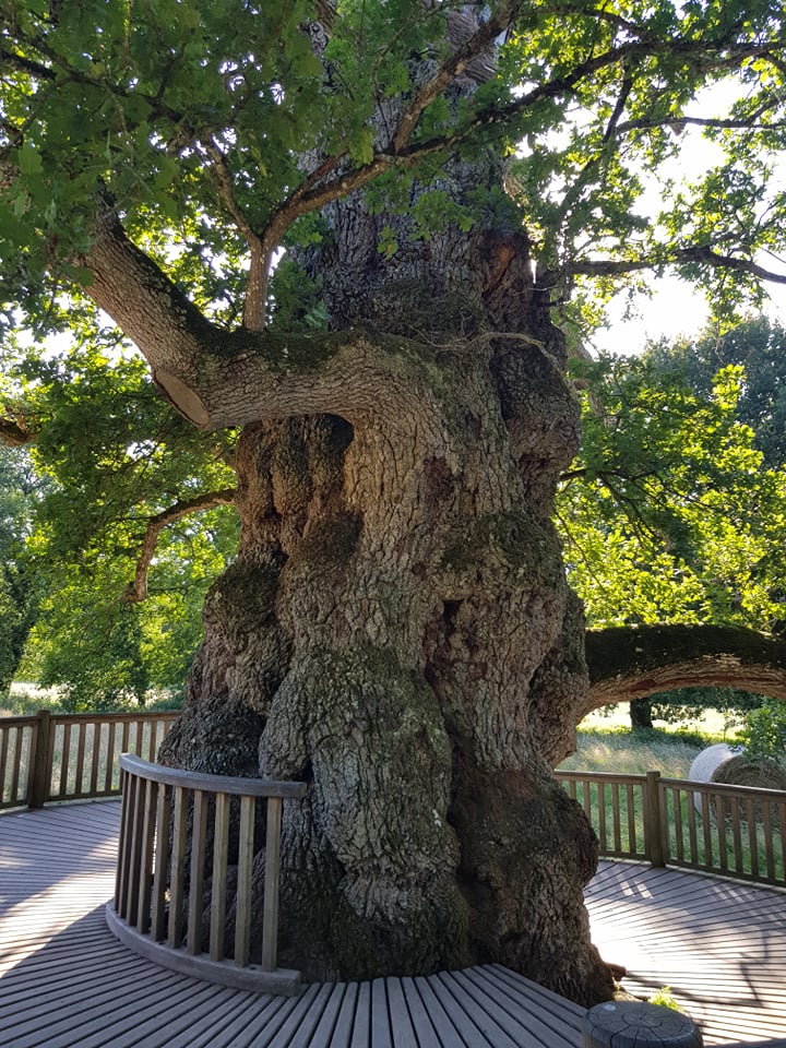 Chêne mythique que j'avais vu il y a 6 ans, qui était alors magnifique malgré son grand âge. Je suis allée le voir en fin d'été cette année, mon coeur était triste de voir que les tempêtes de ces dernières années l'ont abîmé considérablement ! Il a perdu énormément de sa majesté et de sa vigueur mais malgré tout, il reste encore une certaine magie qu'il partage à qui y est sensible. Je crains hélas qu'il soit en fin de vie 😕. Rendez lui visite avec respect pour lui donner force de vie