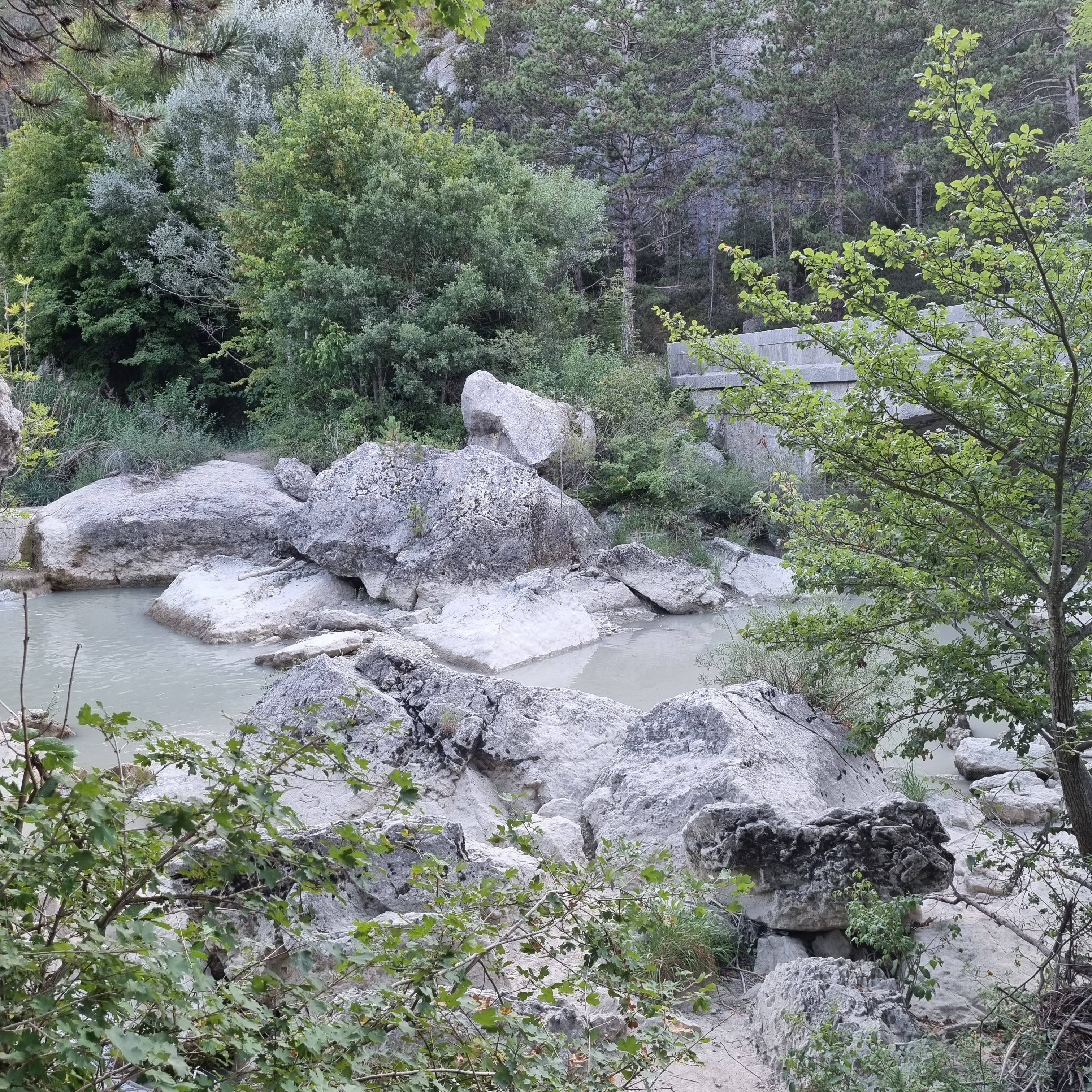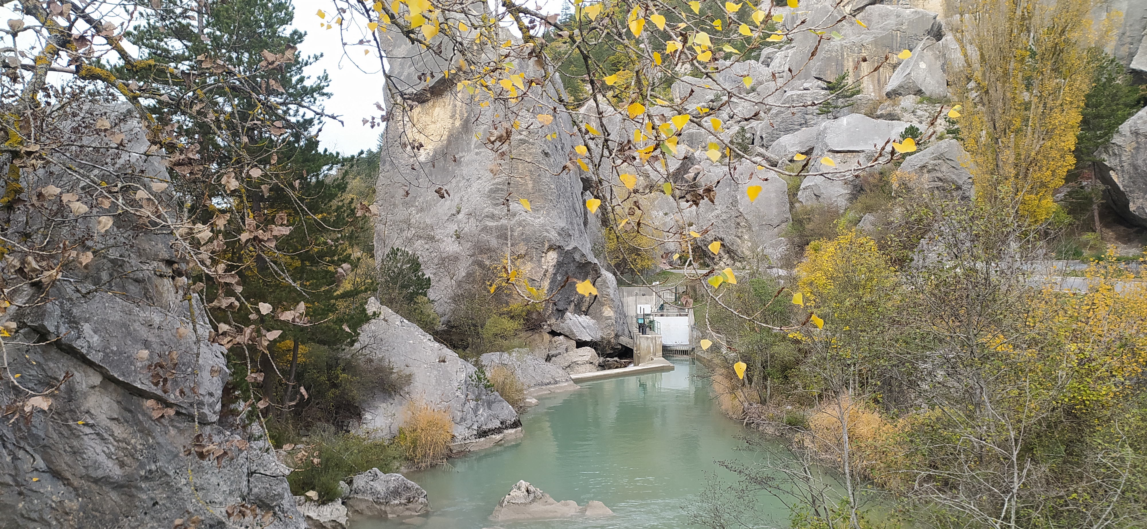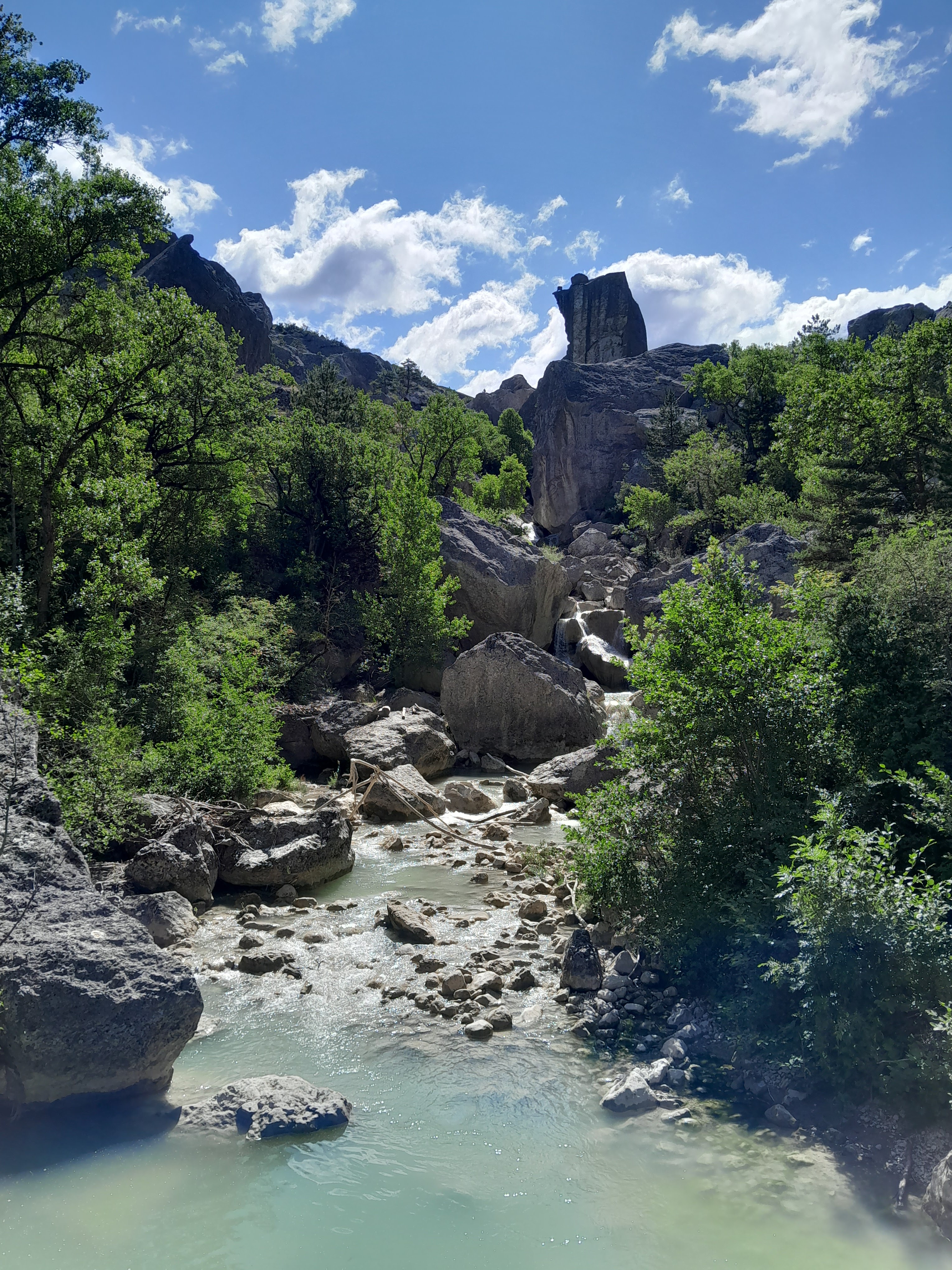 Un lieu chaotique ou la Drôme est bleue turquoise, c'est enchanteur