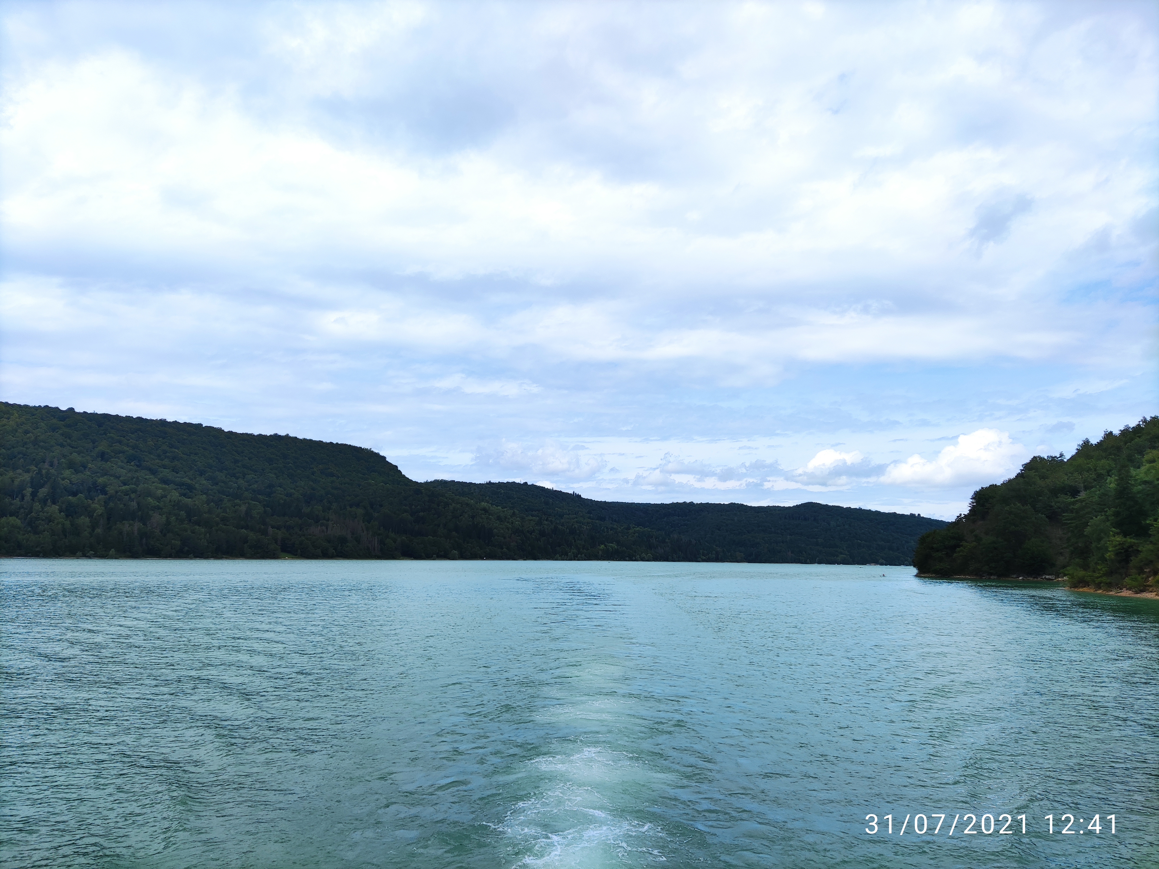 Une ballade bien sympa sur le beau Lac de Vouglans, que je n'avais jamais faite bien que natif du Jura. Un chouilla de fraîcheur mais pas trop en cette période bien chaude que nous connaissons. Ballade tranquille avec nos enfants en bas âge et commentaires humouristiques du capitaine guide. L' eau est assez basse, mais y a encore de quoi faire ! Pourvu que ça dure . Service boissons ou glace à bord pour ceux qui n'ont pas profité de la buvette avant de monter sur le Louisiane. Beaucoup d'information qui défilent sur l'écran a coté du capitaine sur la construction du Lac de Vouglans, et c'est à mon avis dans la cabine a l étage vu le soleil qu on est le plus a l aise, surtout avec des pitchouns