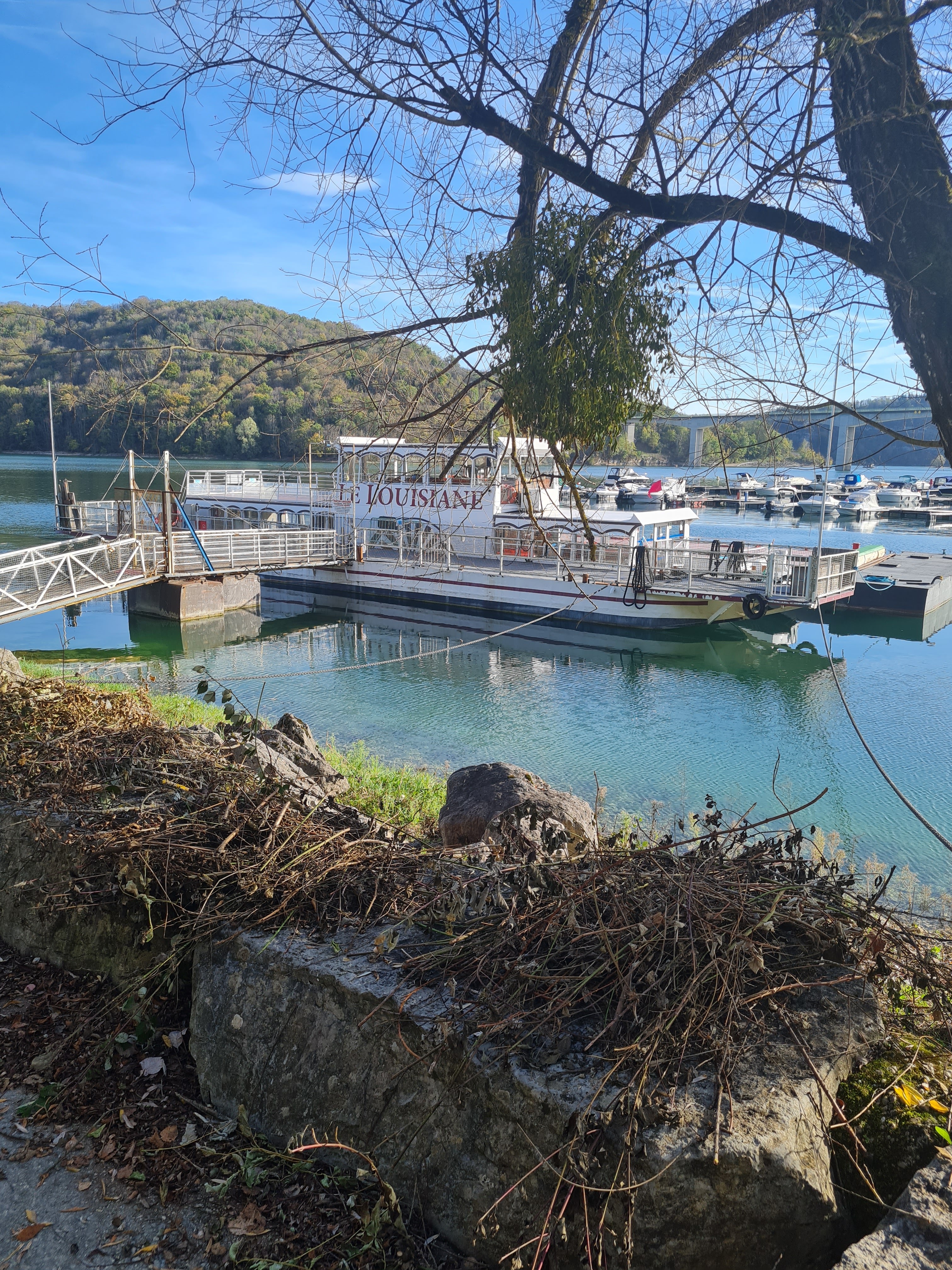 Super ballade sur le lac de vouglans à bord du Louisiane . Bien se prendre à l avance pour prendre ses billets le matin pour les ballades de l après midi en haute saison . Car bcp de monde .