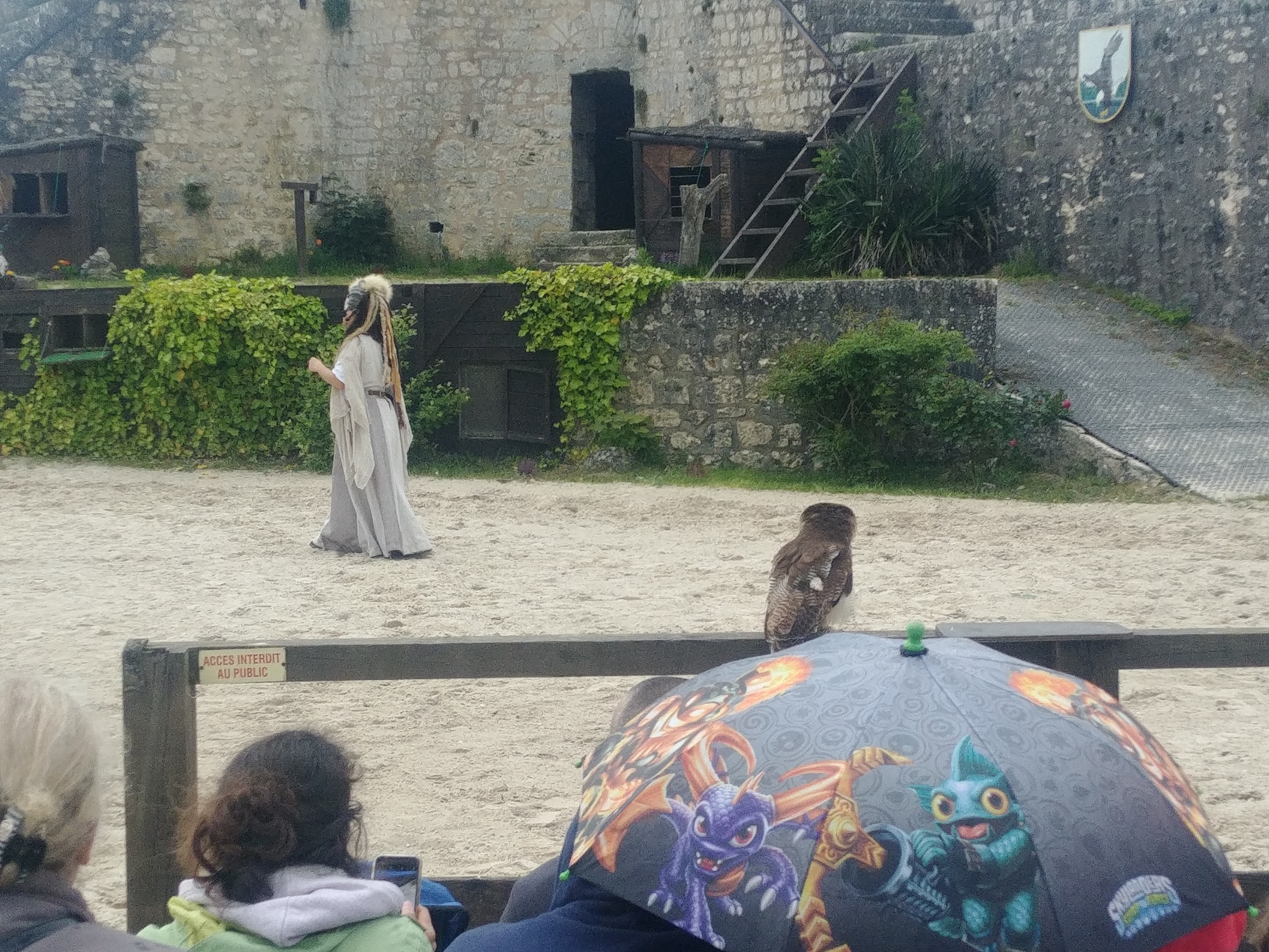 Nous avons fait les aigles de Provins et les chevaliers. Deux spectacles de très grande qualité malgré la pluie battante ! Bravo