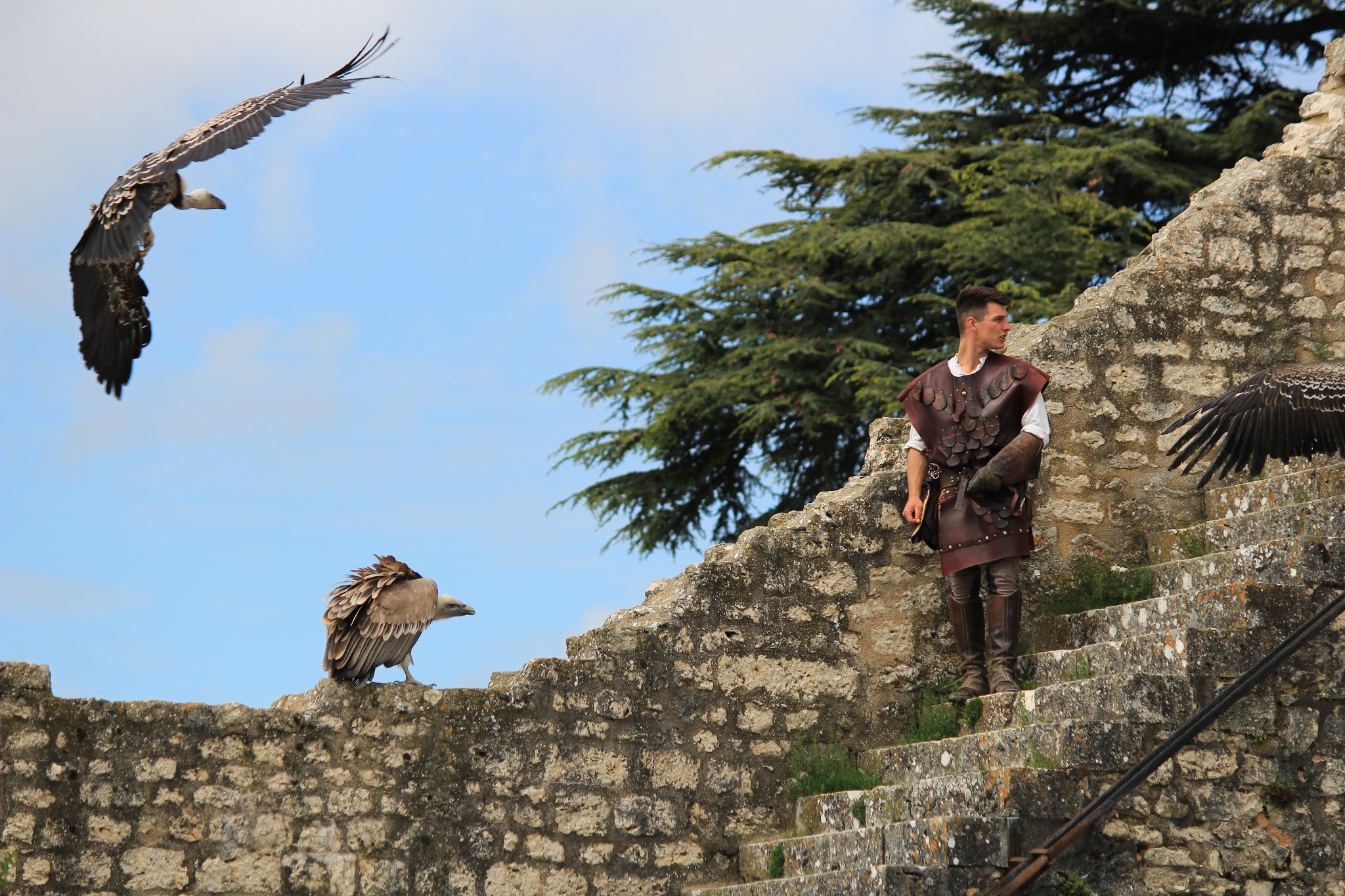 Jolie spectacle d'oiseaux en vol au sommet des remparts de Provins. Vous y observerez des faucons, des vautours, des buses, des chouettes, des aigles bien sûr, des hiboux et le serpentaire.