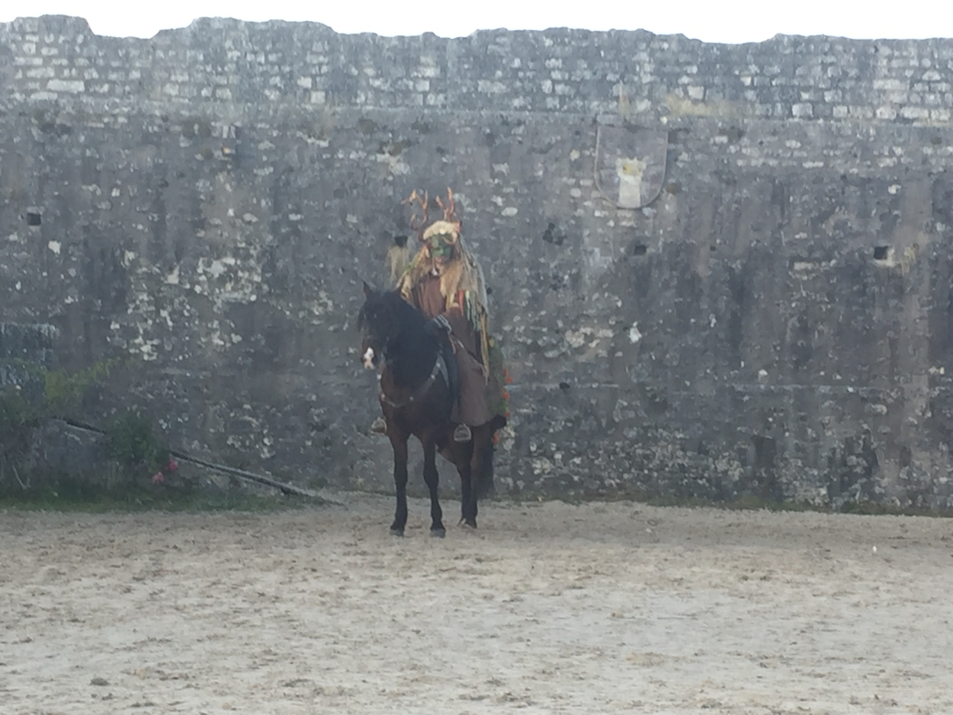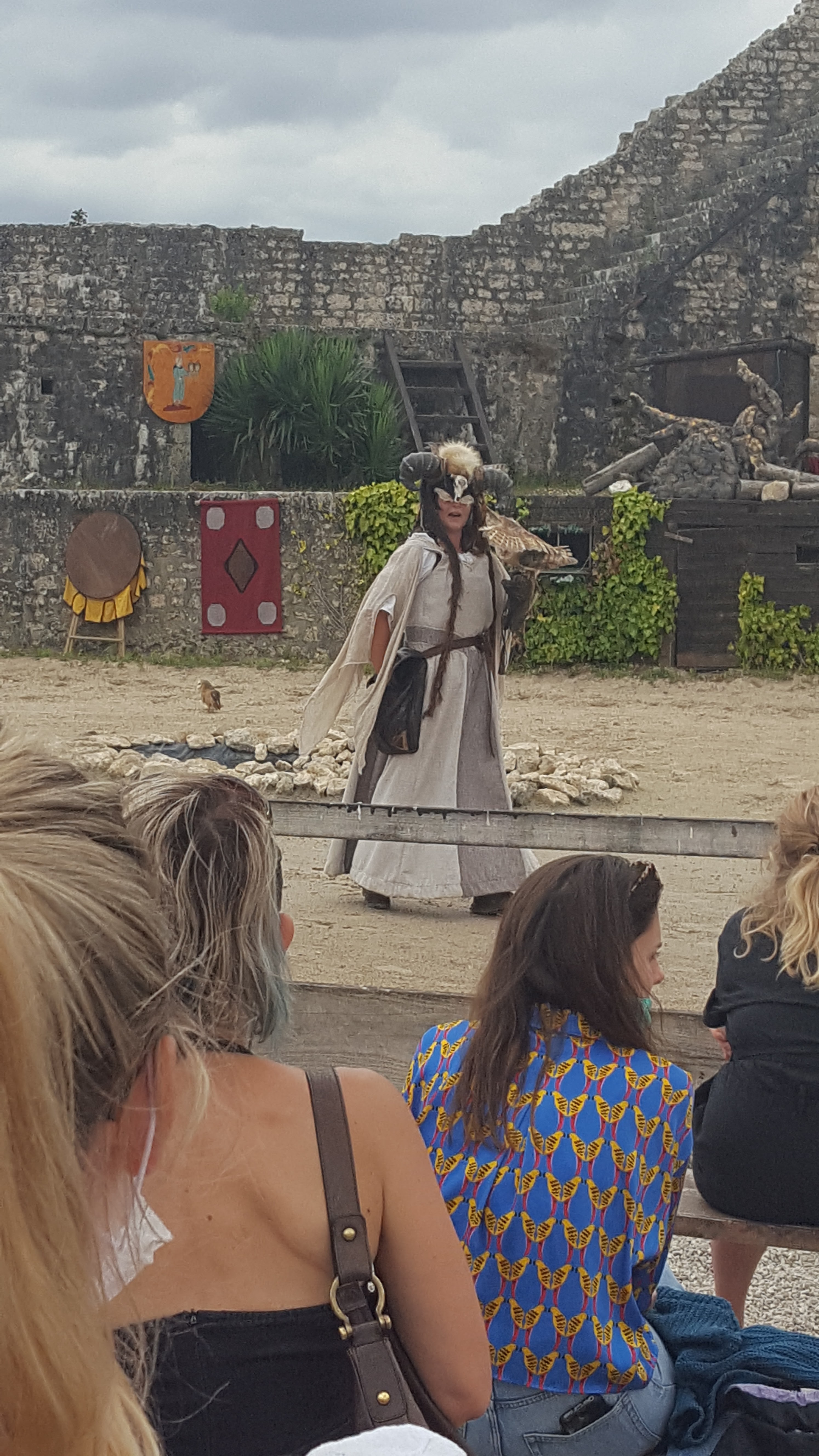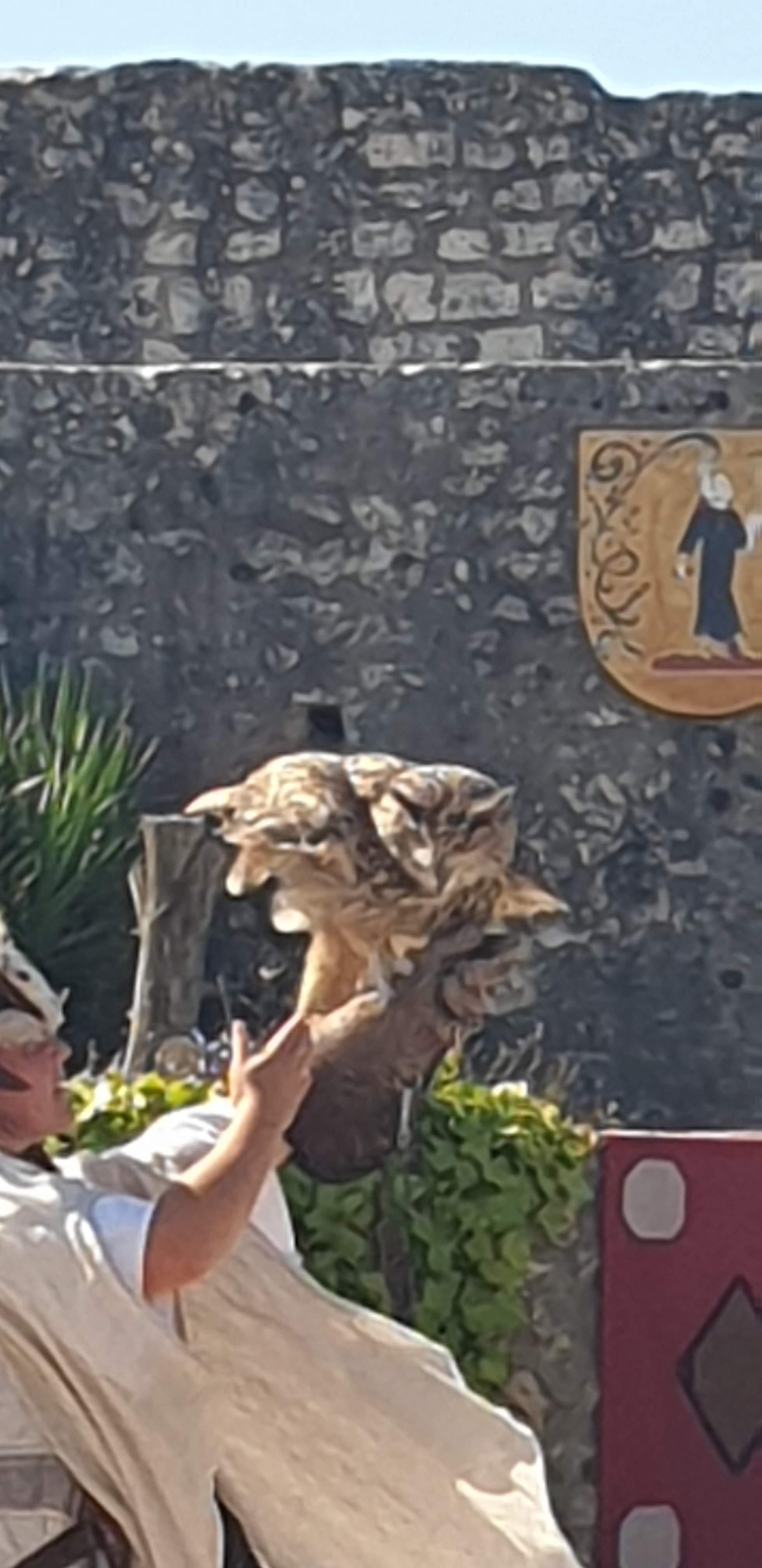 Le spectacle magnifique dans un décor tout aussi magnifique. Ambiance chevaleresque et mystique avec les rois de la nuit, il y a un petit numéro de clowns avec un àne et des rapaces qui atterrissent sur vos tètes et plein d'explications commentées ... Génial !