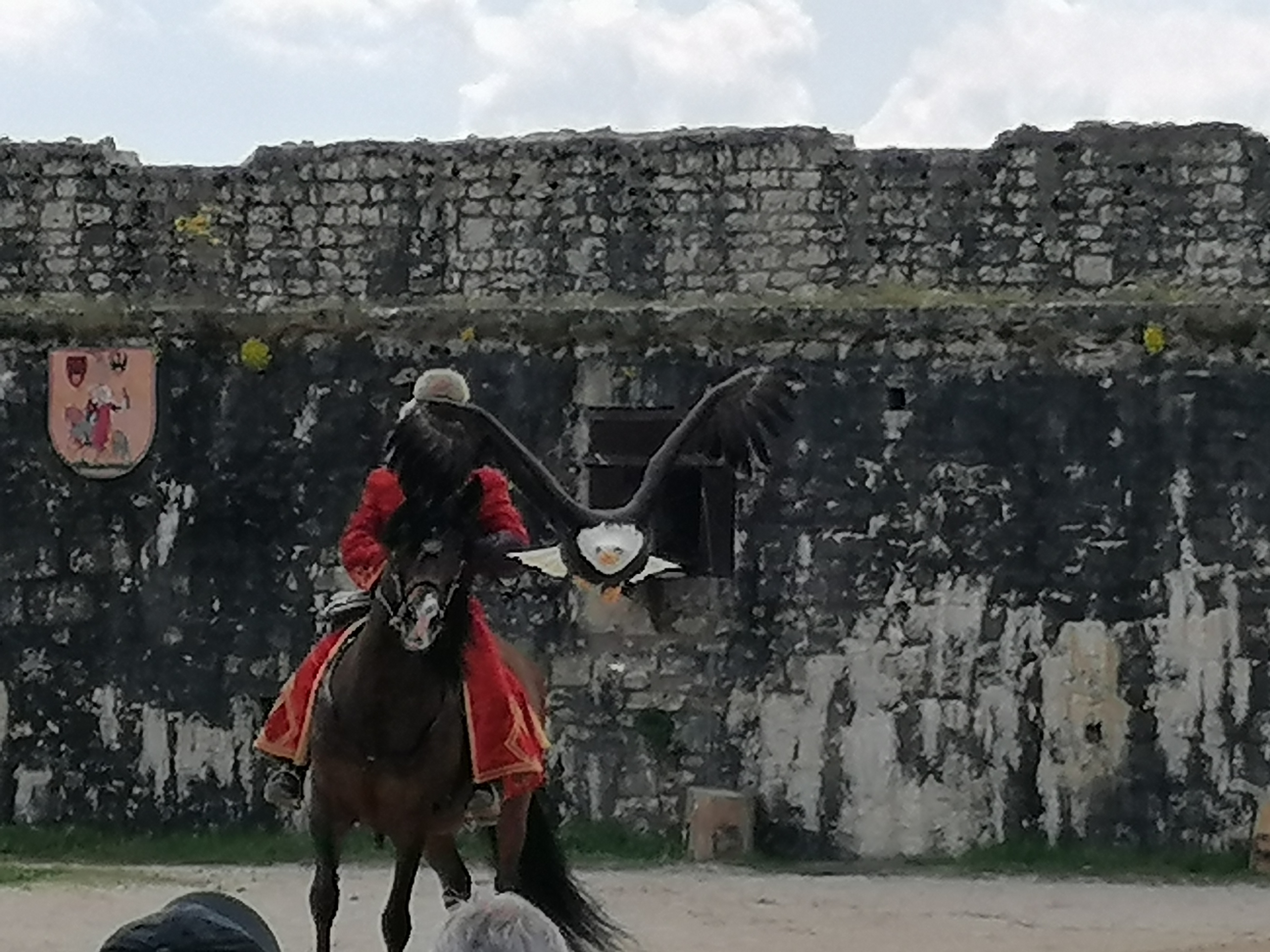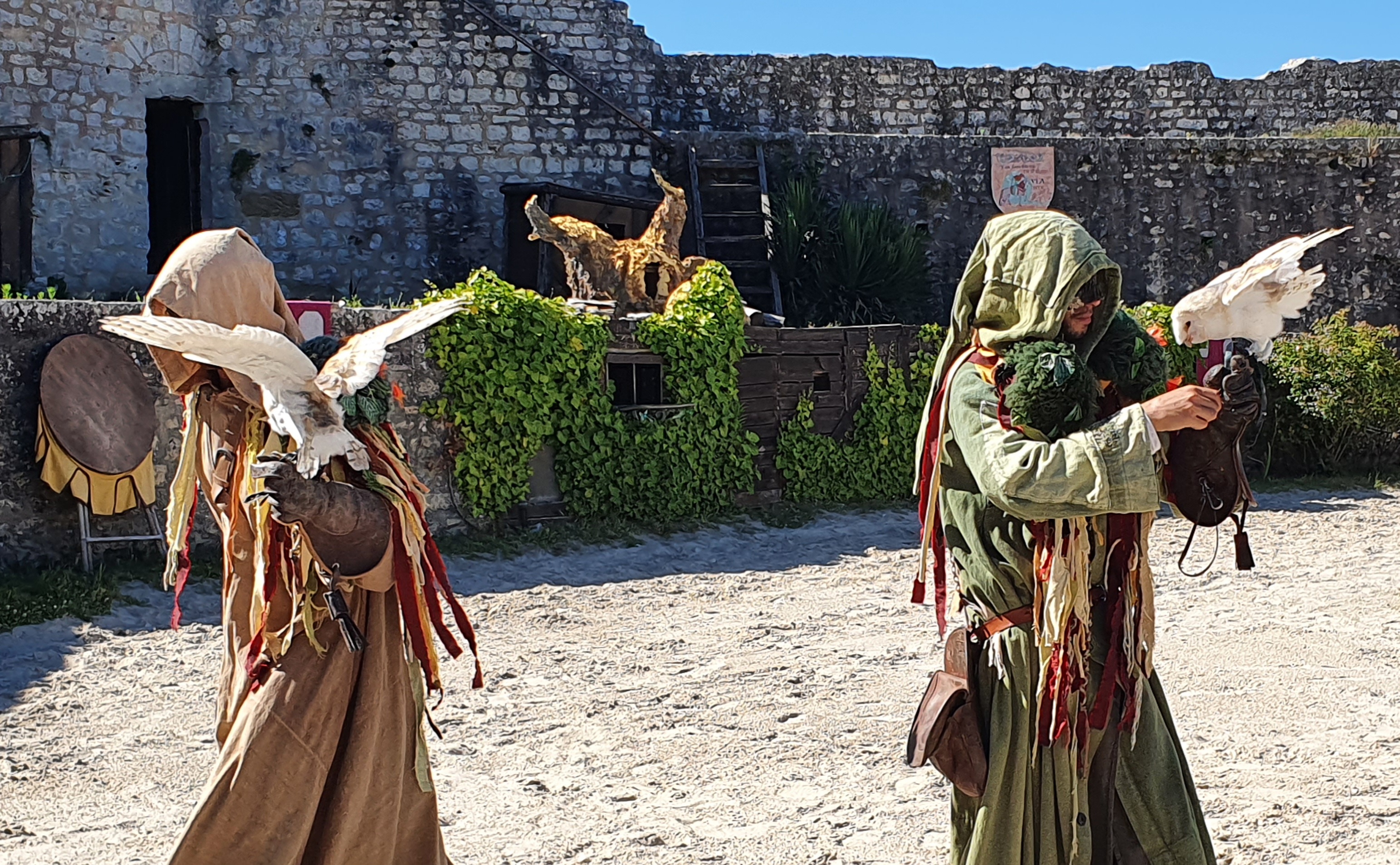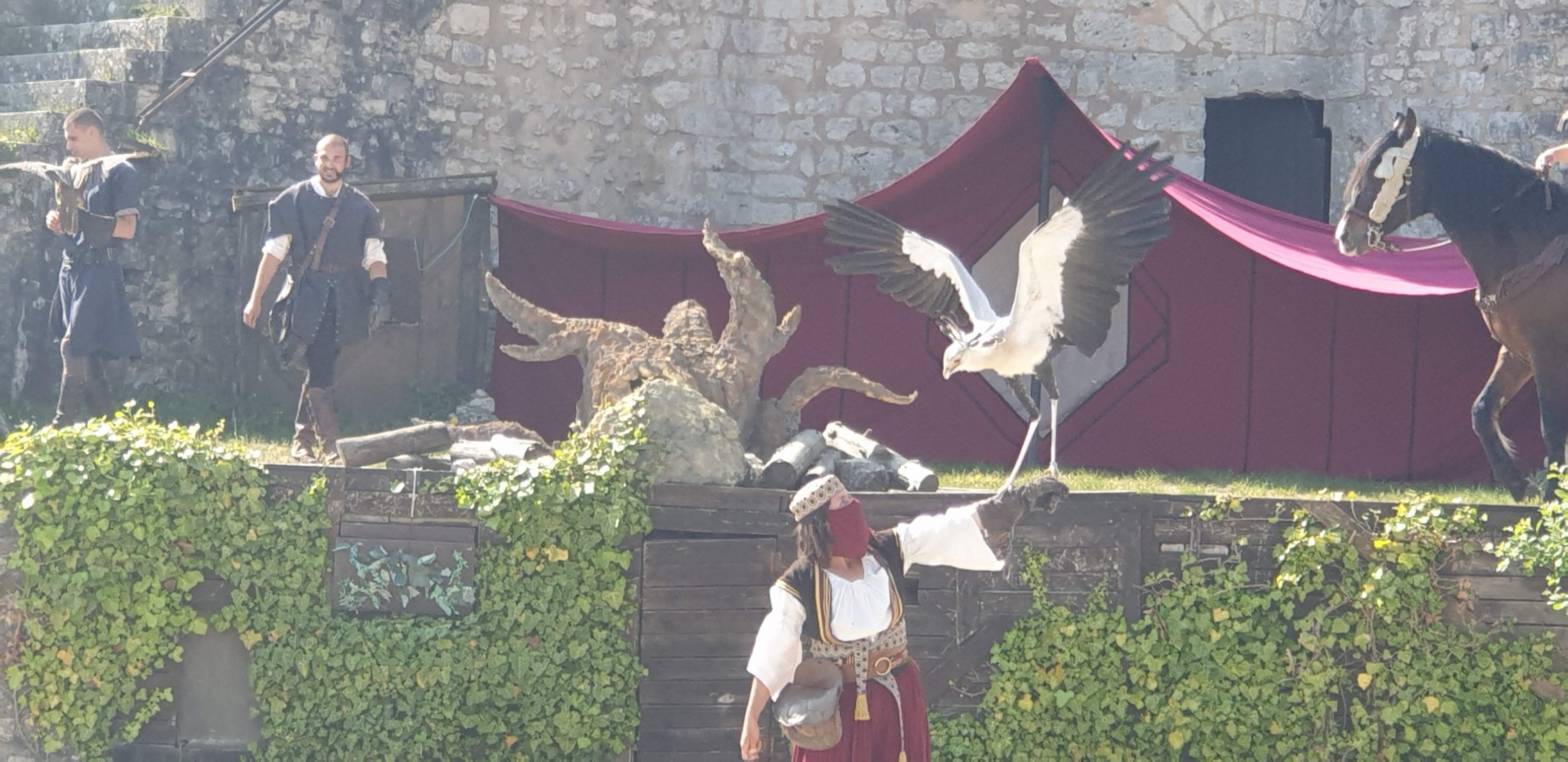 Beau spectacle. Prévoir de quoi affronter le soleil et la chaleur dans l amphithéâtre. Apres le spectacle, un petit circuit permet de voir les animaux. Belle ville médiévale. A 1 ou 2 kilomètres il ya un parc où l on peut pique-niquer