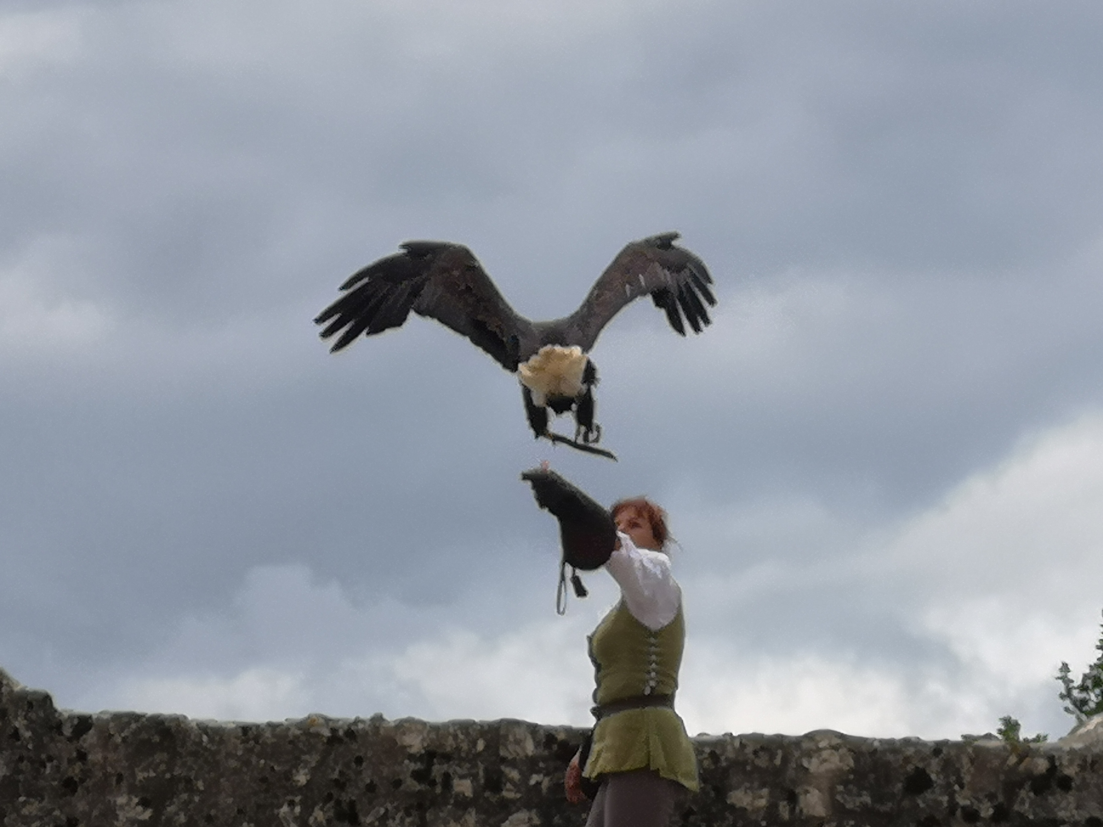 Un beau spectacle avec buses, chouettes, faucons, aigles, vautours, serpenterre... au moyen âge.