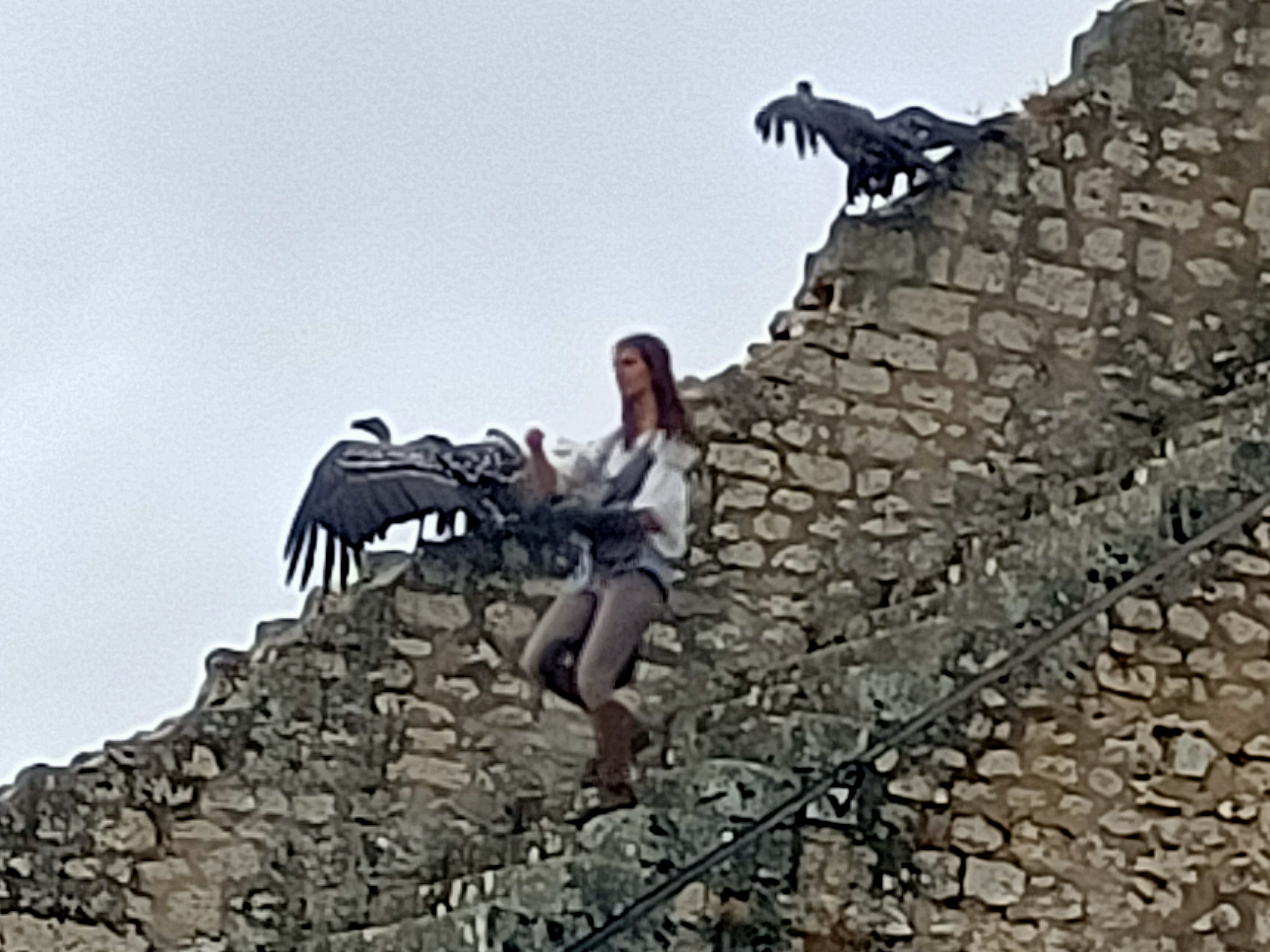 Très beau spectacle, il y a, à chaque nouvelle espèce, une présentation des volatiles. Le vol des vautours passe juste au dessus de nos têtes, c'est impressionnant !