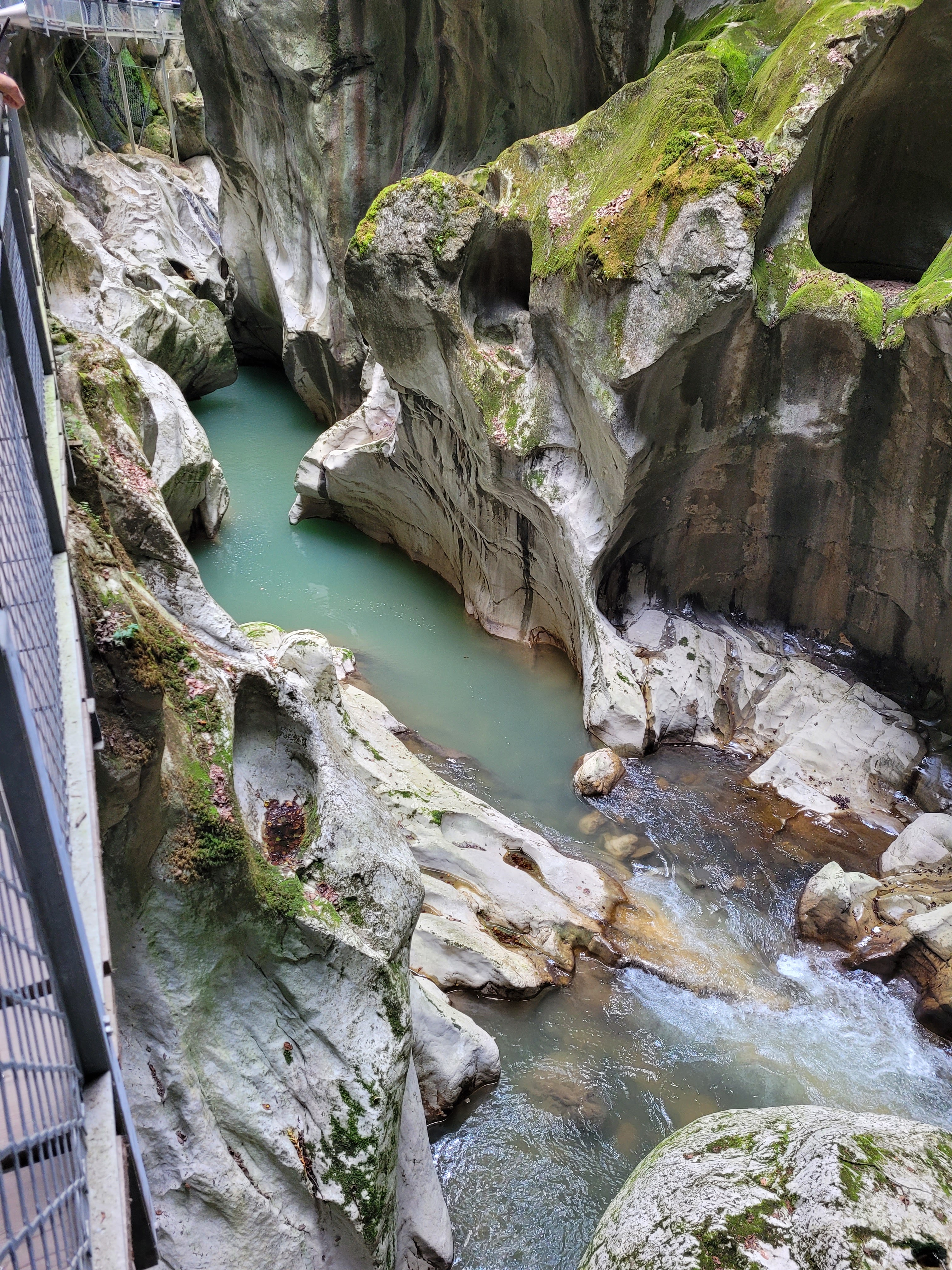 Clairement une expérience passable. Les gorges sont belles mais extrêmement courtes (20 minutes en y allant à un rythme lent) Le reste c'est une descente/remontée dans la forêt, comme possible tout autour... 18€ pour ça, c'est clairement de l'arnaque. Je conseille d'aller voir d'autres gorges tout autour ou en Suisse, bien plus belles et gratuites qui plus est.