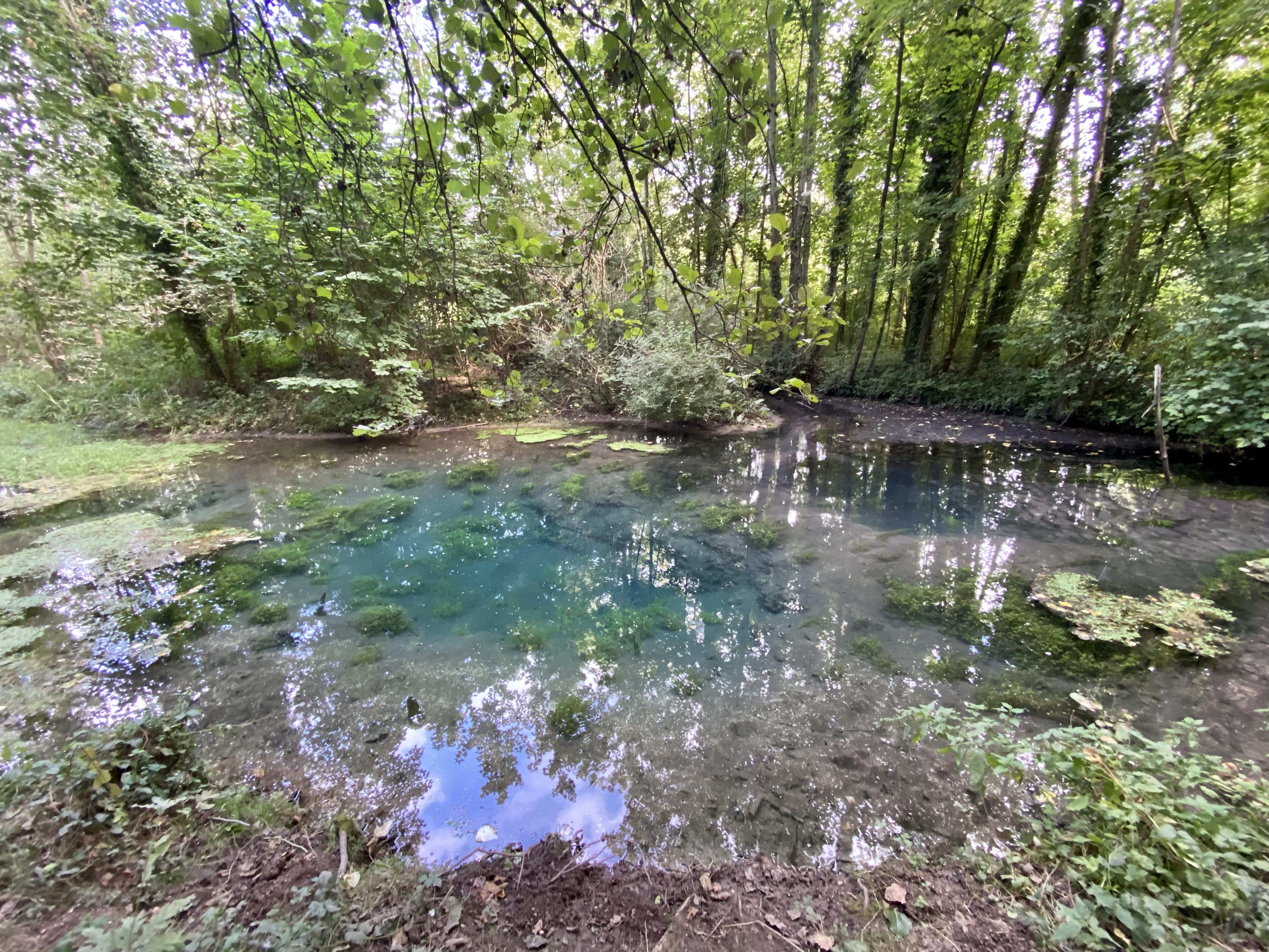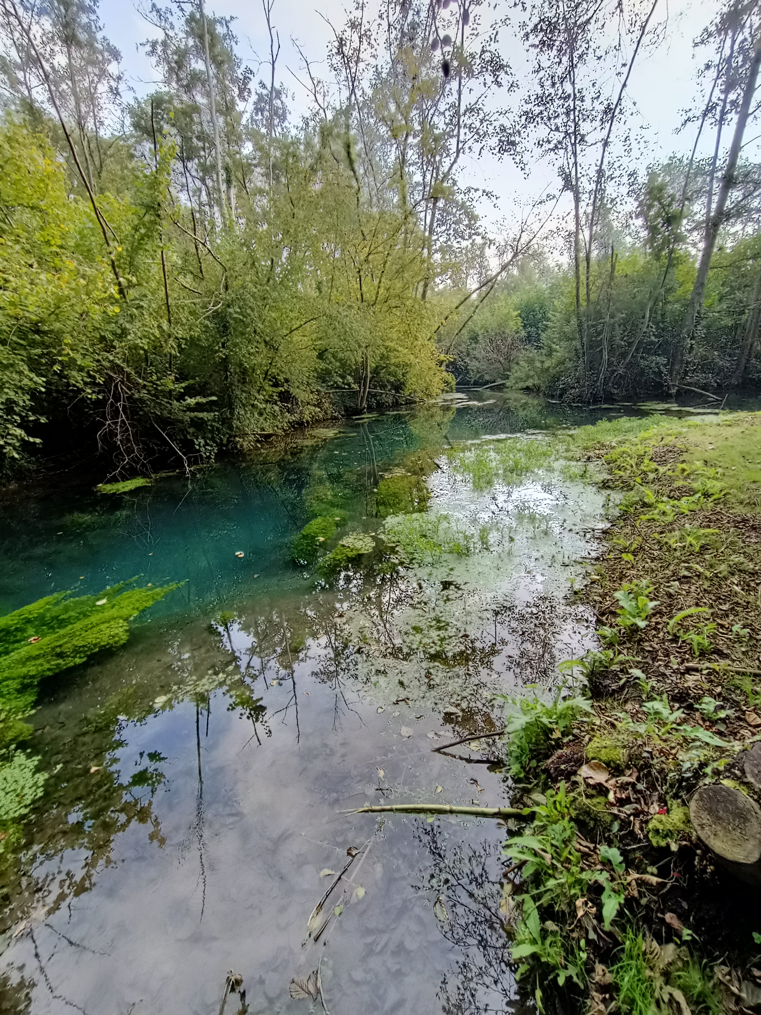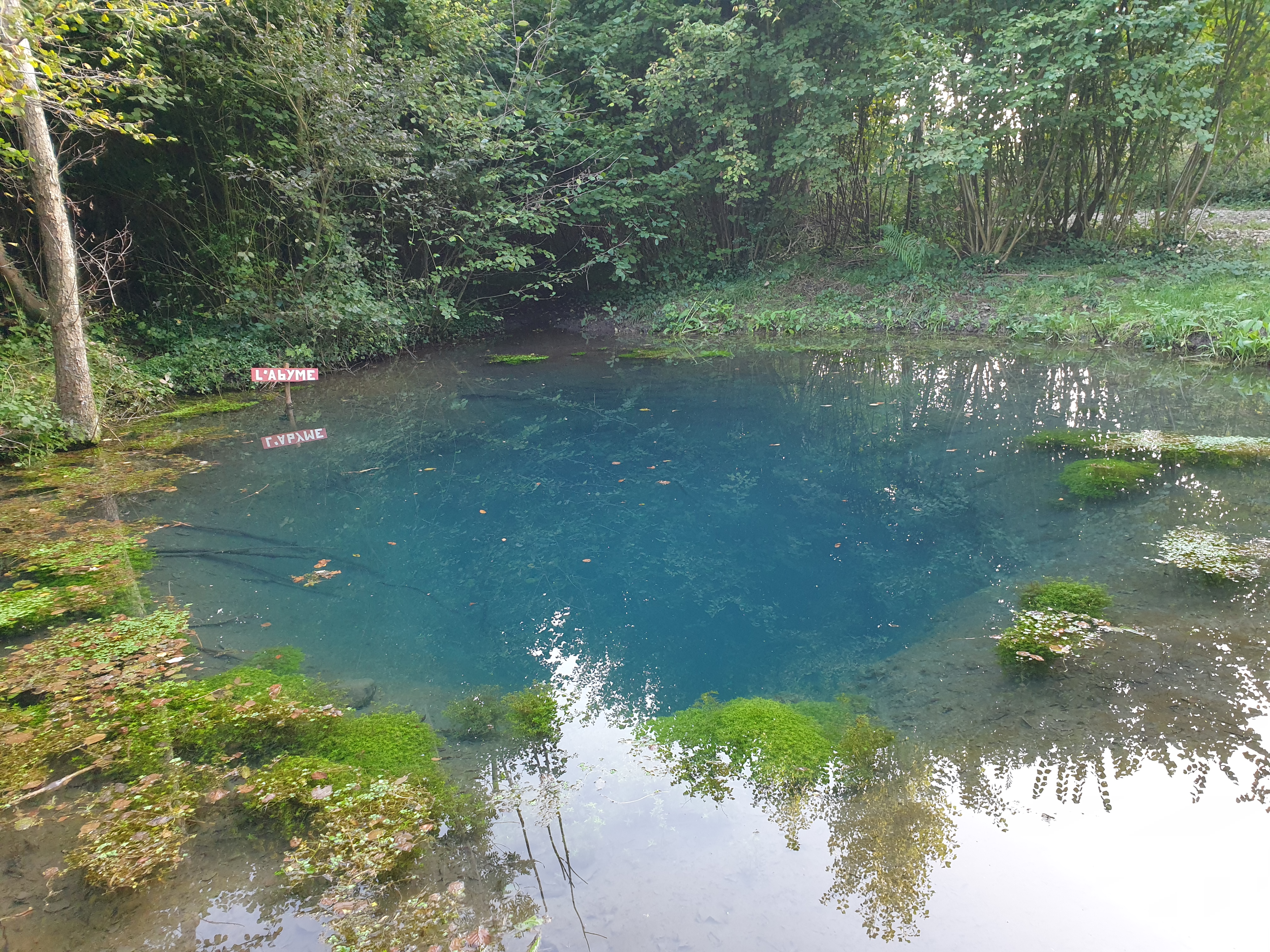 Puits tournant , à Fréchencourt . Une balade à découvrir impérativement !! Pour l'histoire : La grande profondeur de ces eaux très pures donne une belle coloration bleue , parmi ces sources , il y a l'Abyme ( c'est la toute dernière ) dont le gouffre est de 5,50 mètres de profondeur , ...l'Abyme s'est envasé et l'eau n'y tourne plus, car l'appellation de puits tournants provenait du fait que l'eau sortait du sol en plus grande abondance que le lit encombré d'herbes ne pouvait en débiter. Il se formait alors des tourbillons et des remous au-dessus du gouffre à un point tel qu'il n'était pas possible à cette époque d'y immobiliser un bateau ... Une légende dit qu'il y a bien longtemps un carrosse tiré par 6 chevaux Tomba dans L'Abyme avec ces occupants et qu'on ne retrouvera jamais l'attelage englouti .