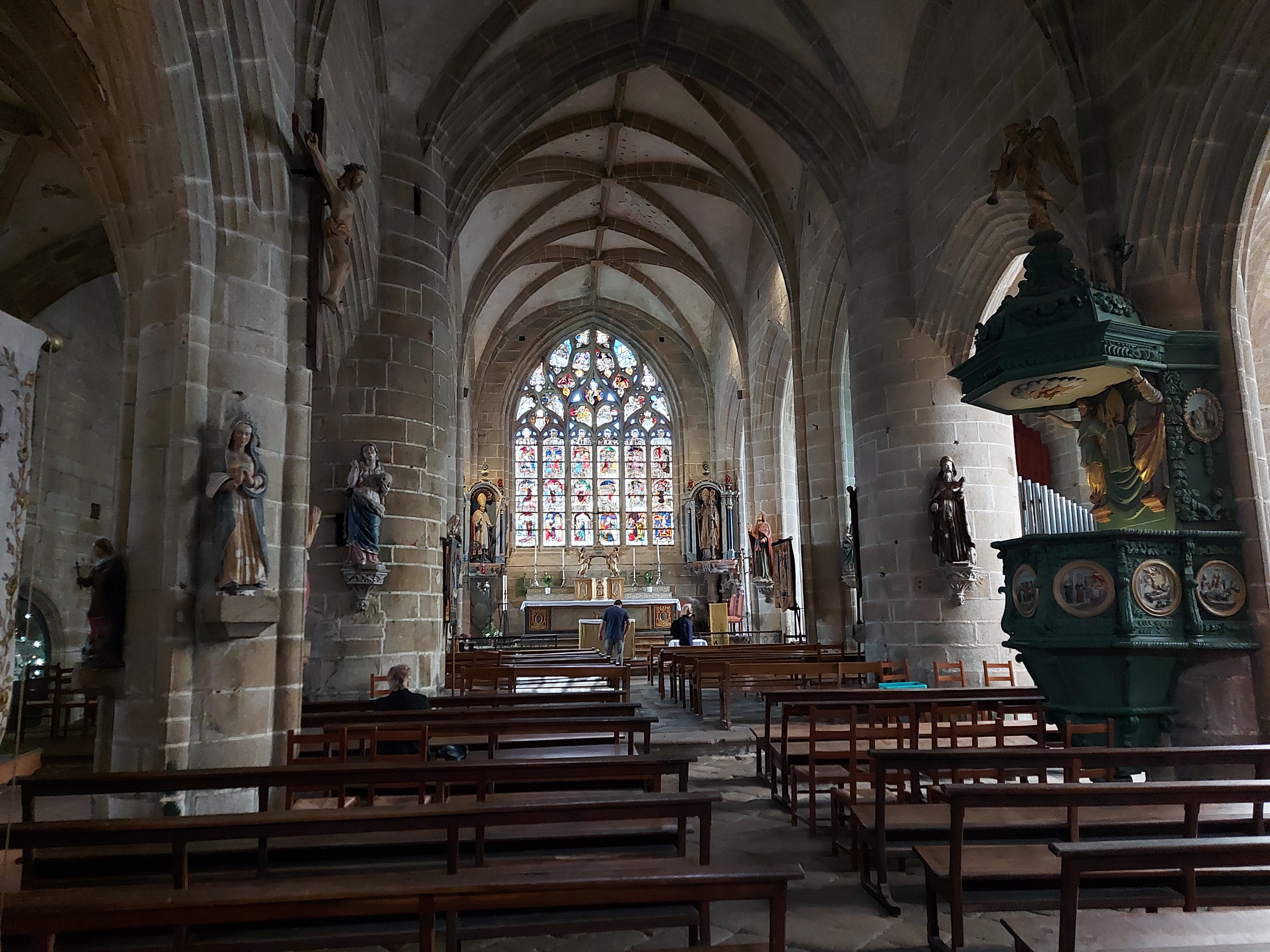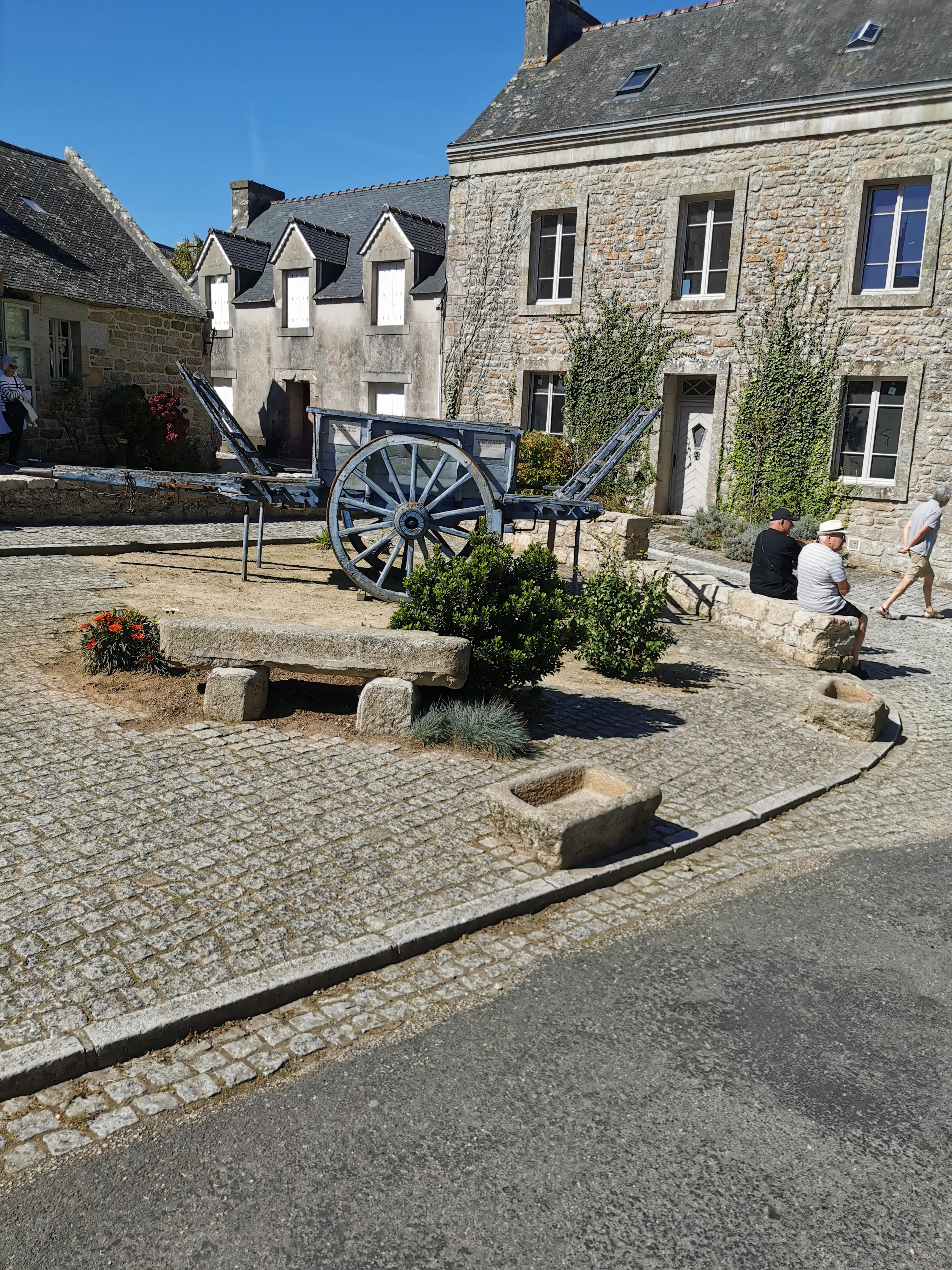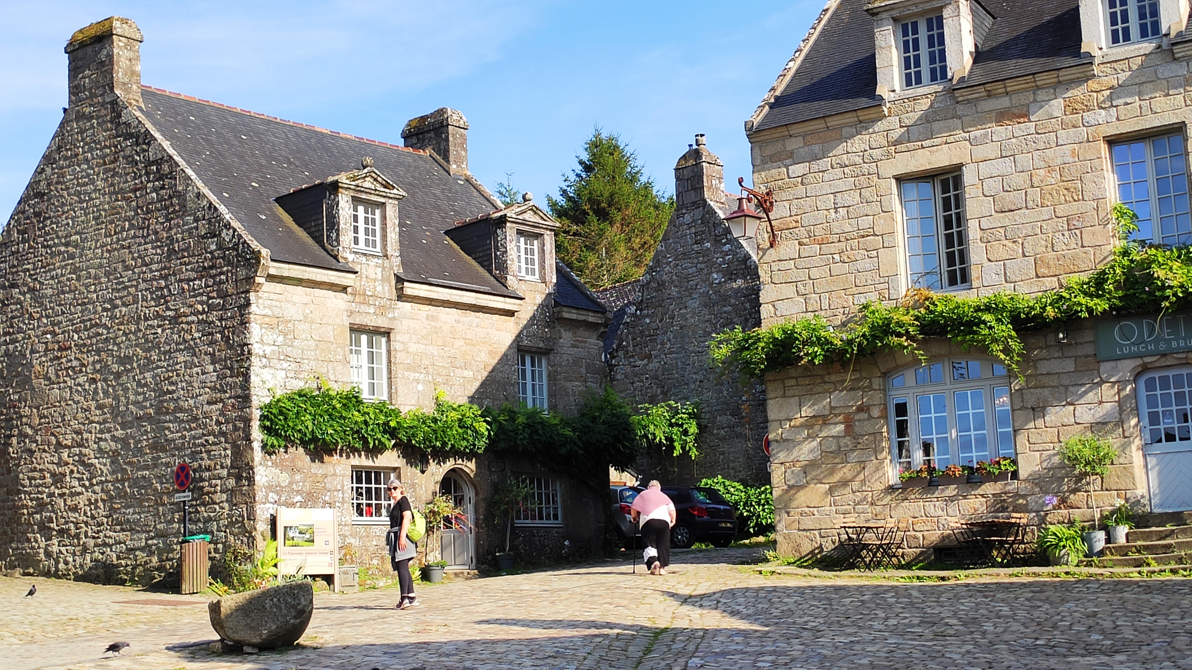 A découvrir une beau Village breton typique avec son architecture de pierre. Un parking payant pour quatre euros. Des tables de pique-nique sont disponibles à l entrée de la rue sur la gauche. A visiter l’église de saint Ronan avec ses magnifiques vitraux.
