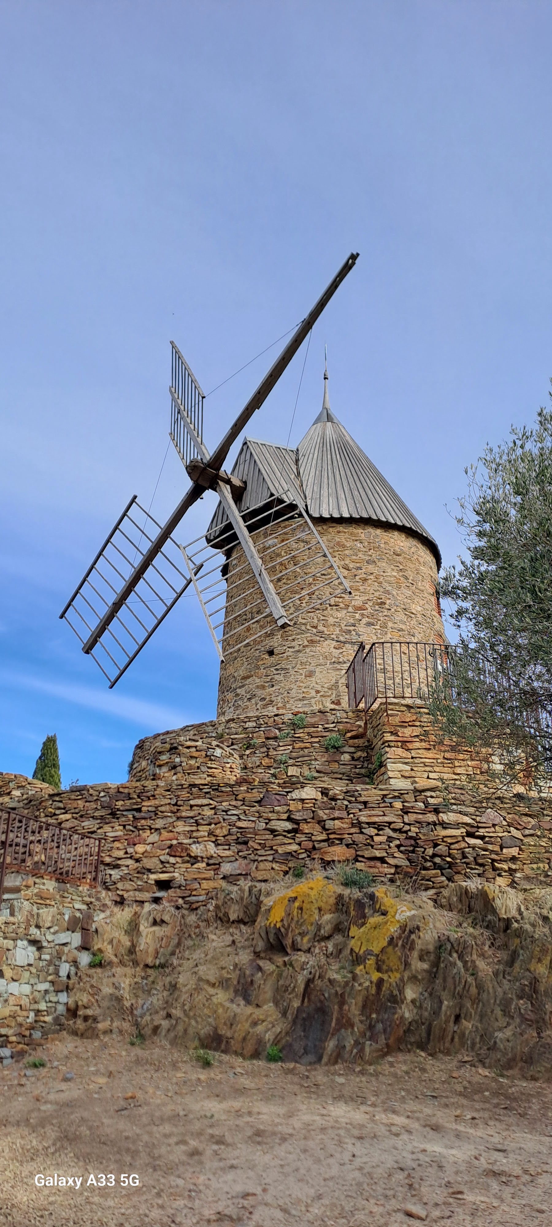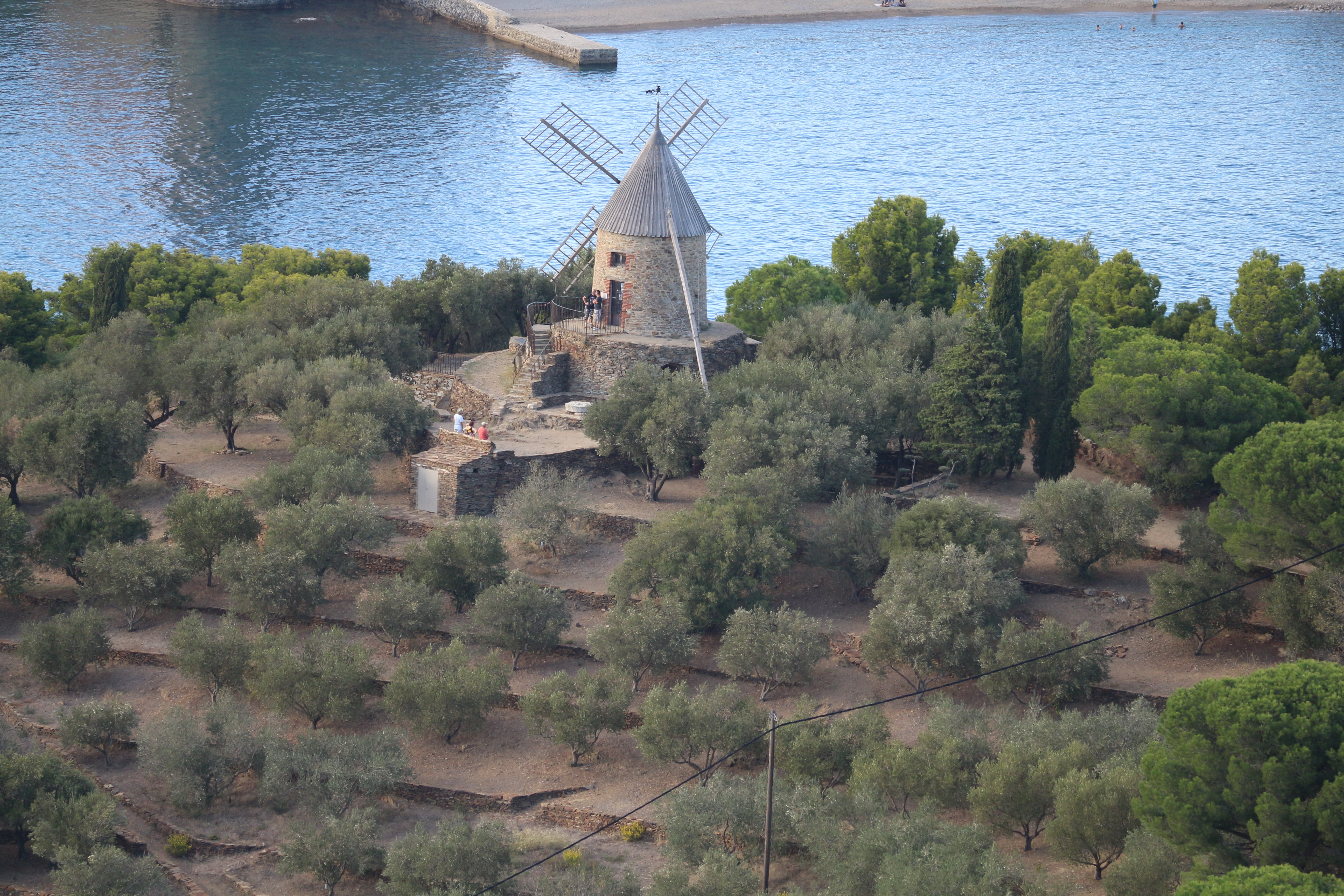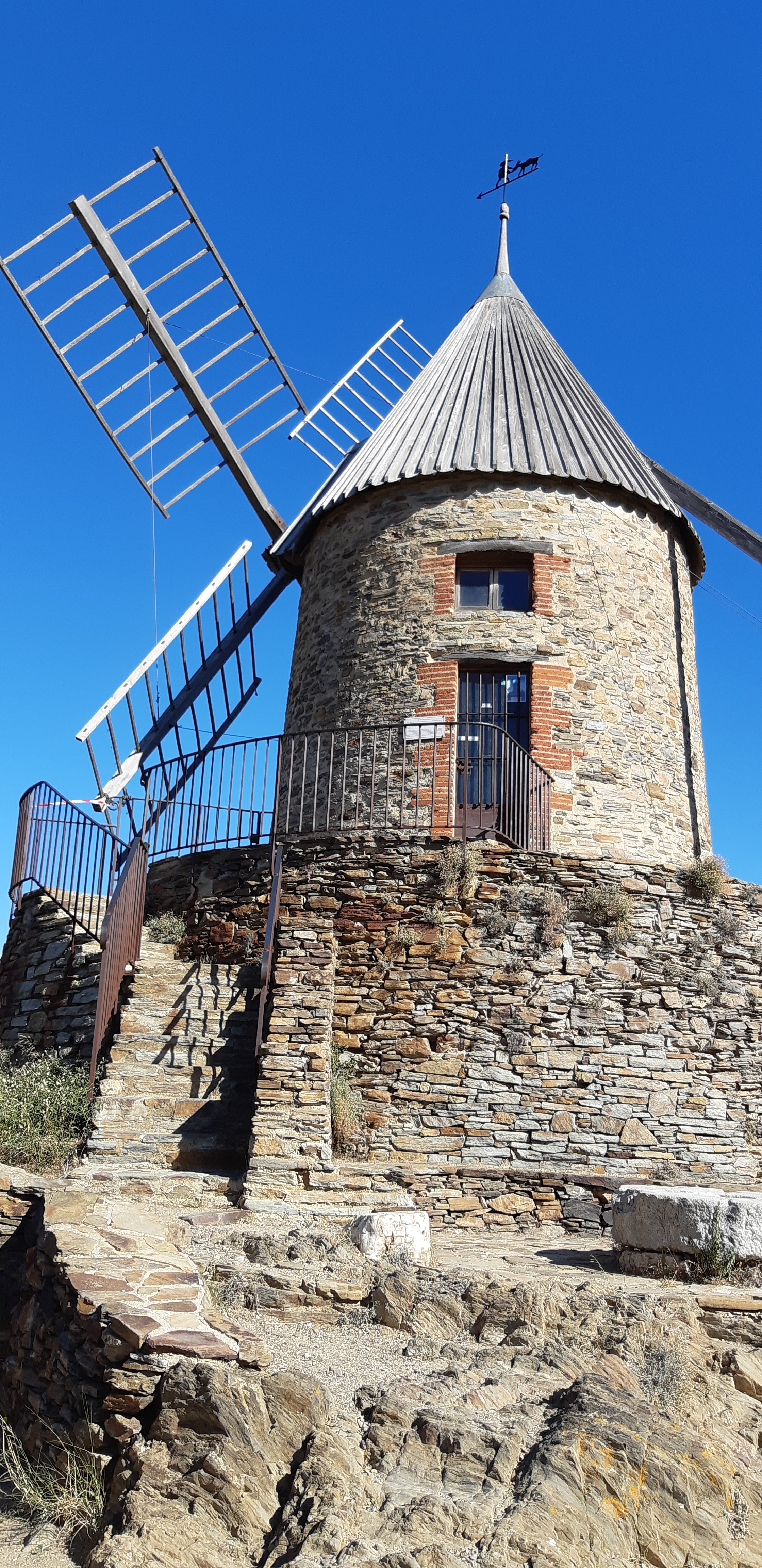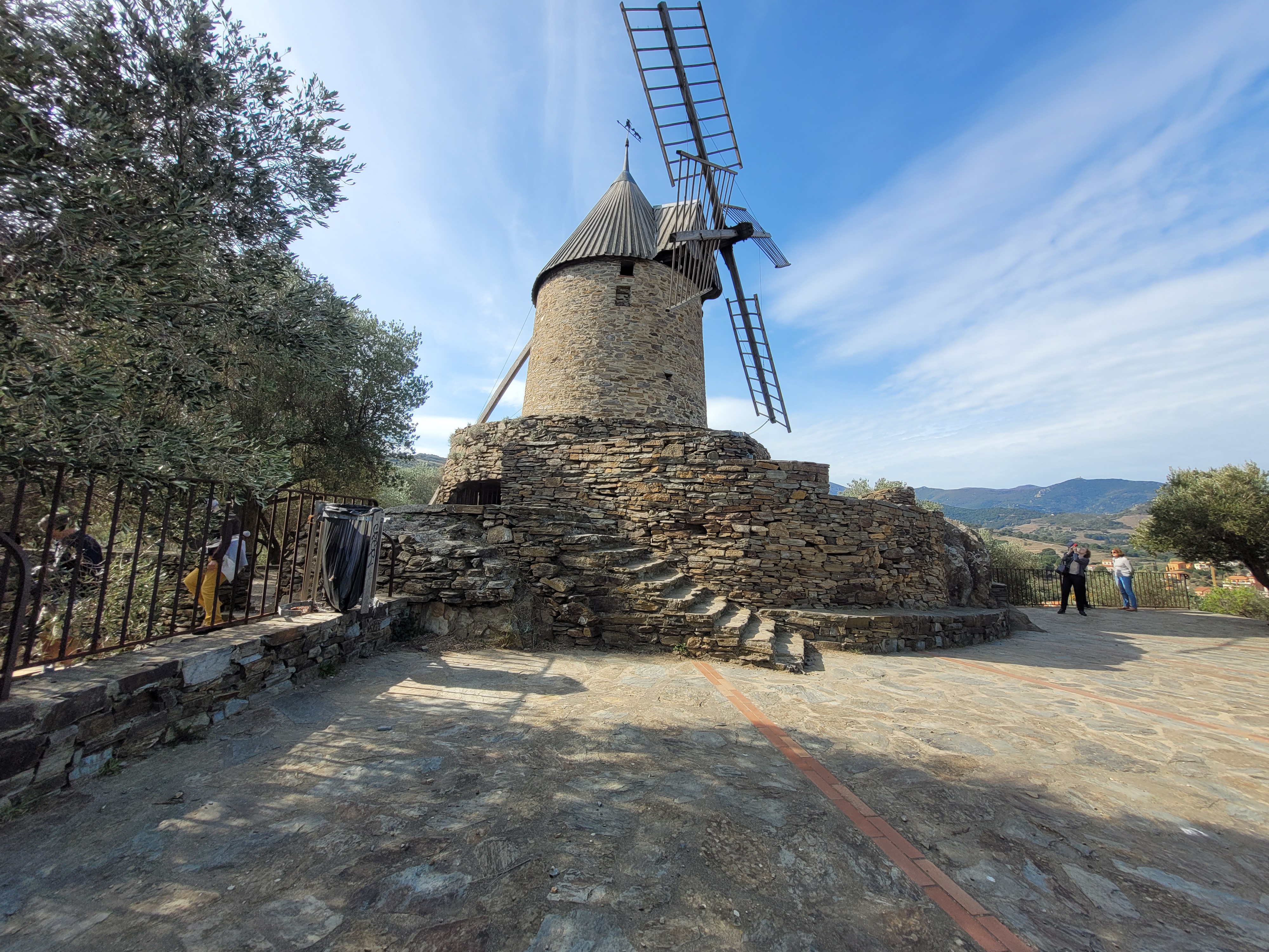 En provenance du Fort Saint Elme, cela prend 20 mn aller pour venir voir ce joli moulin à huile. Il culmine la baie de Collioure et offre une magnifie vue.