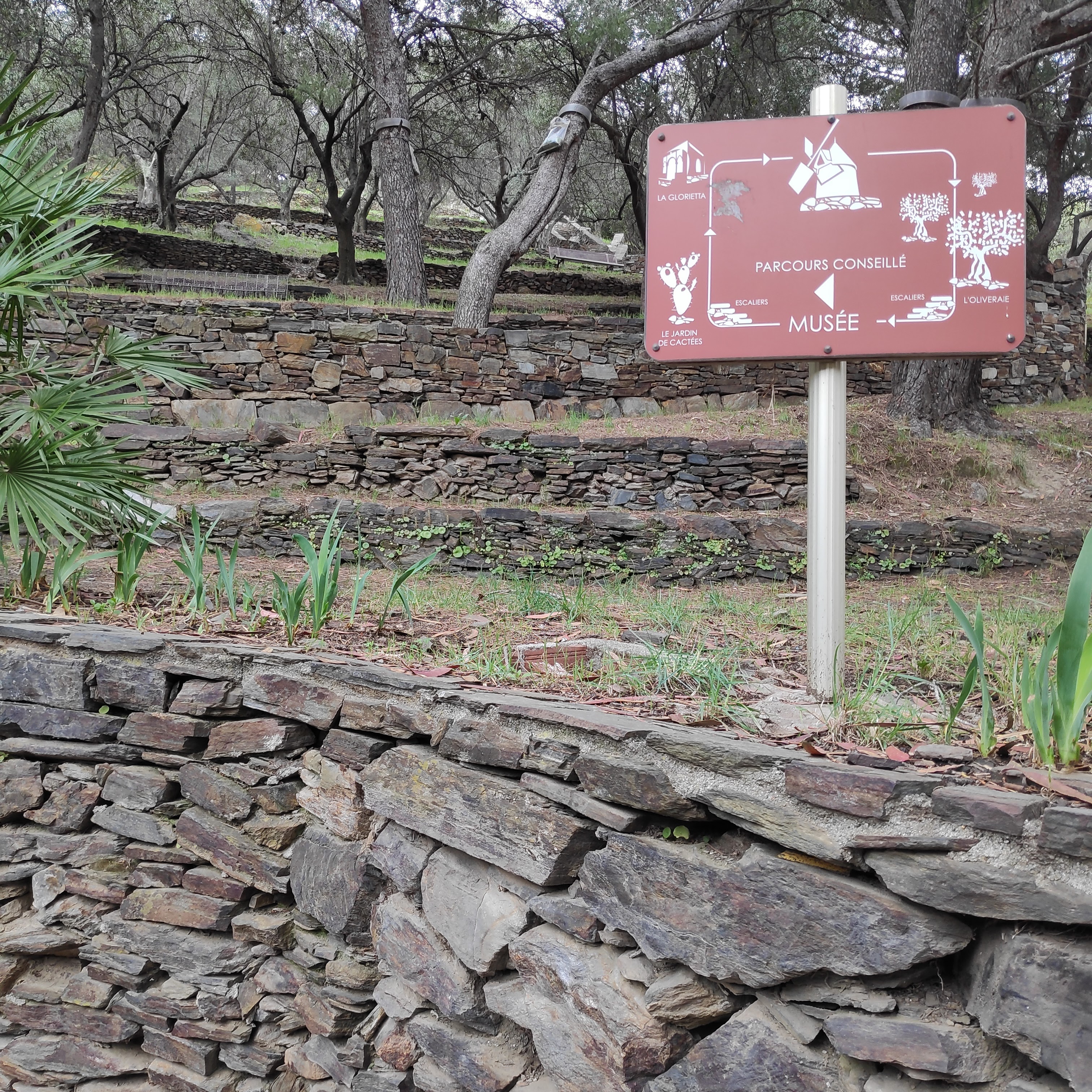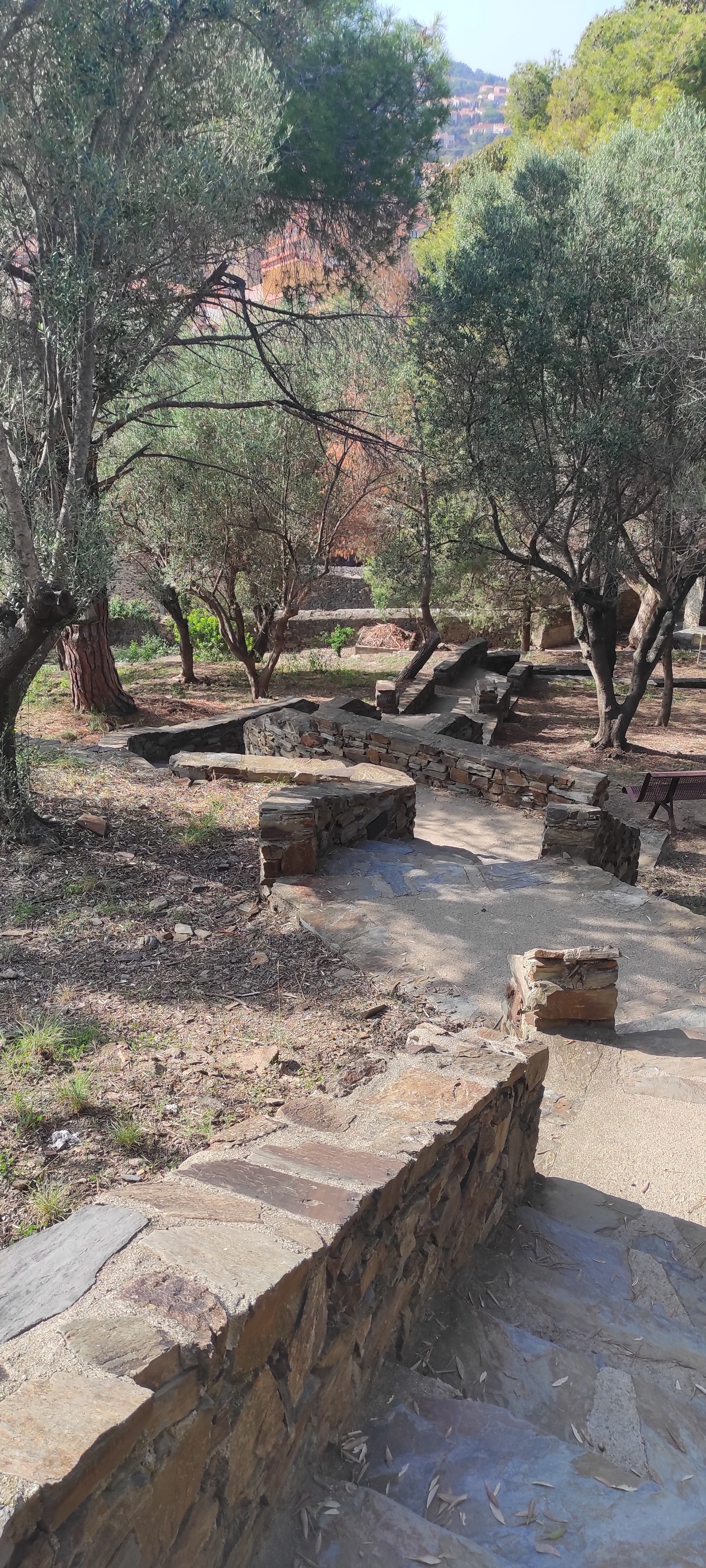 Magnifique lieu dans une oliveraie en haut d'un petit chemin de marches, à prendre en laissant le musée d'art sur votre gauche. Belle vue sur Collioure.