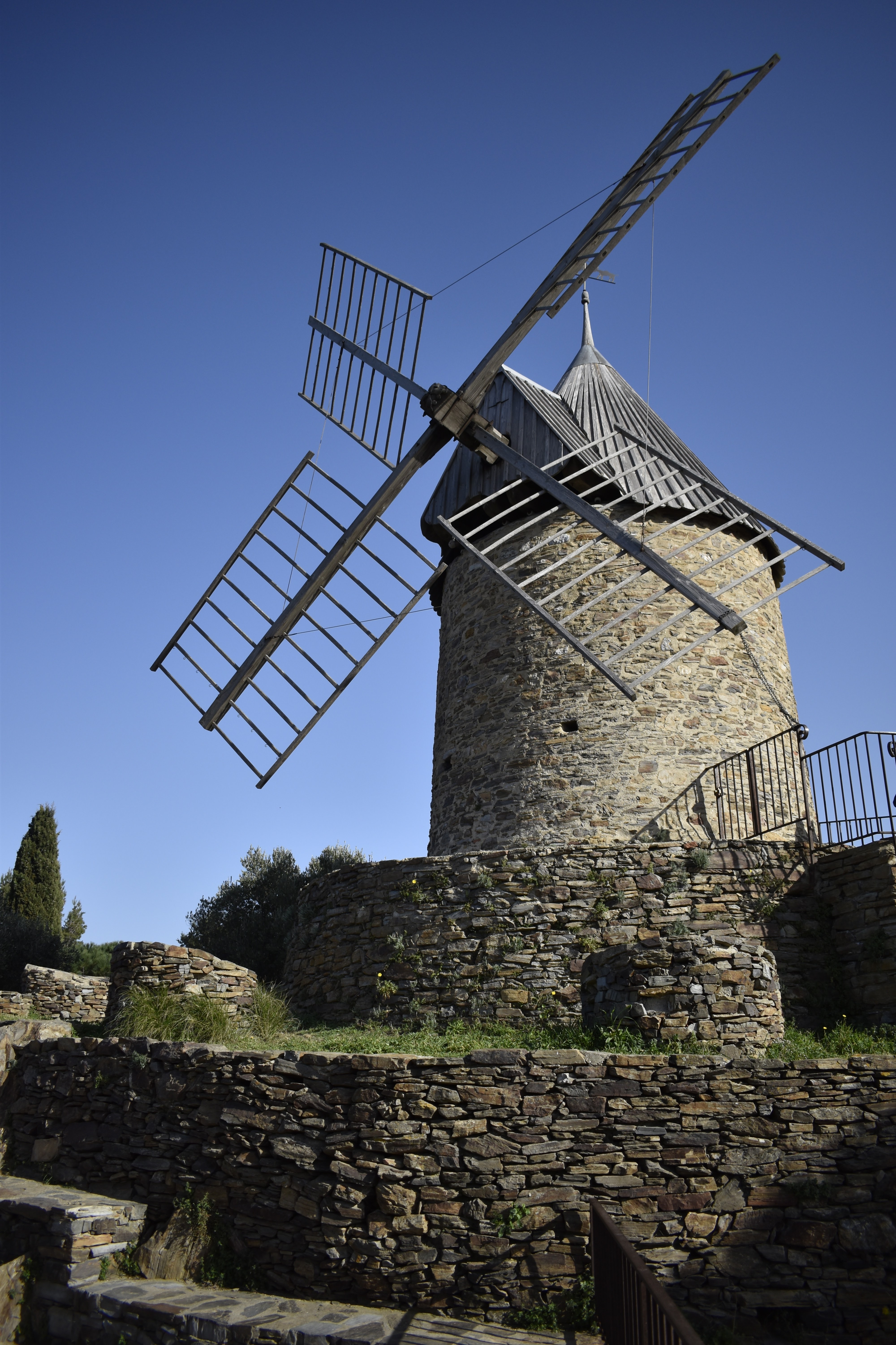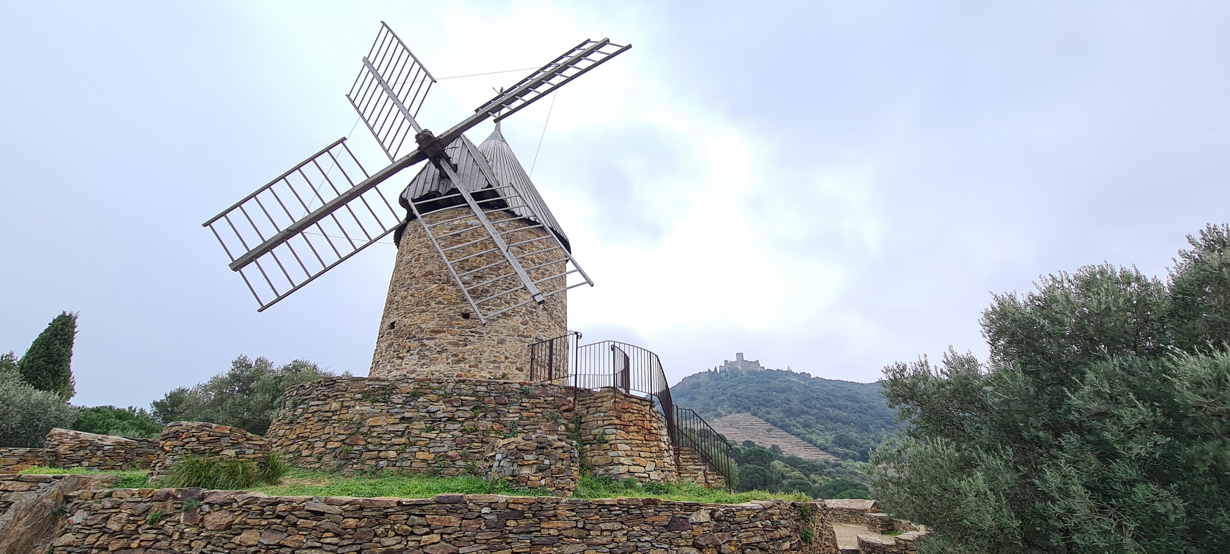 Beau moulin sur les hauteurs de Collioure restauré il y a quelques années