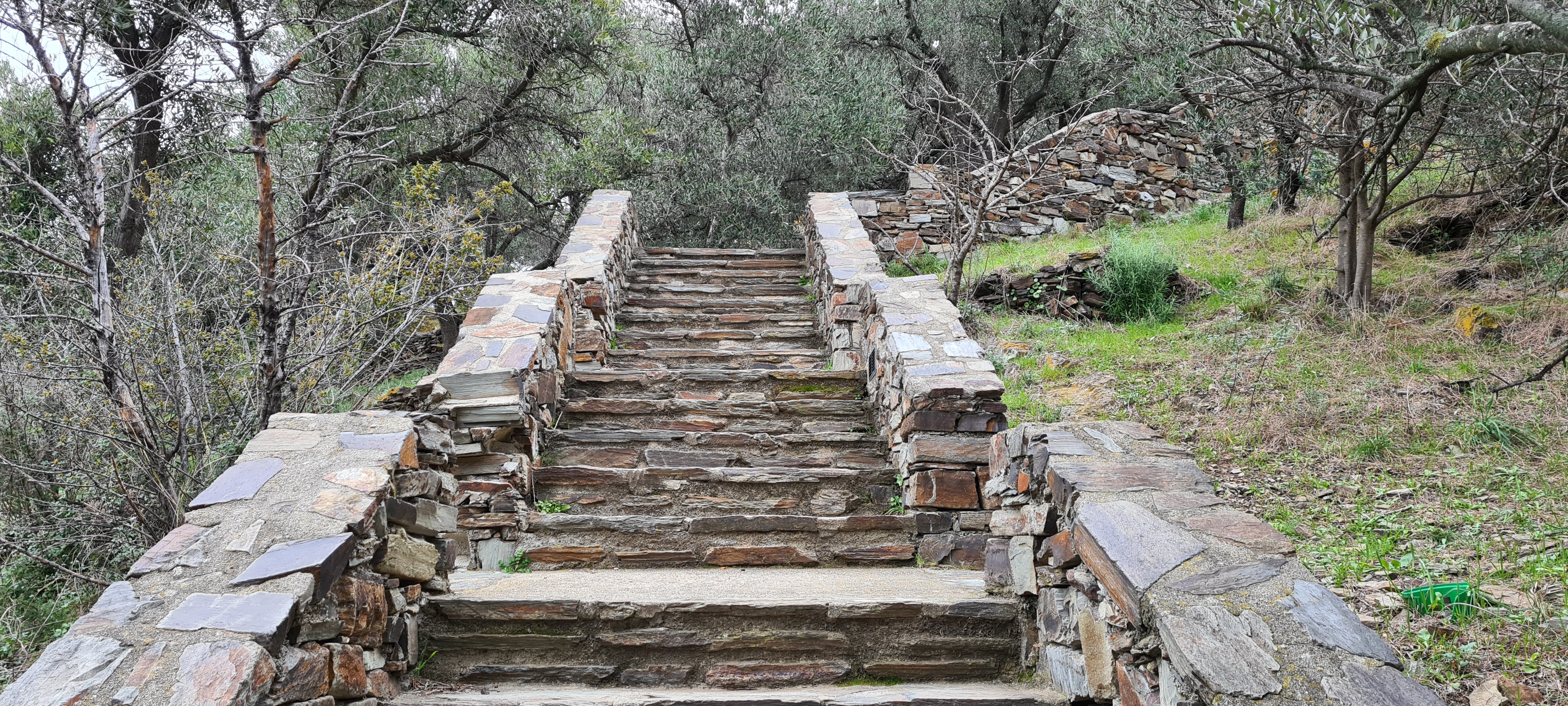 Un bel escalier de pierres à monter ( bien moins de 10 min) entouré d'olivier qui nous offrent le moilin et une jolie vue