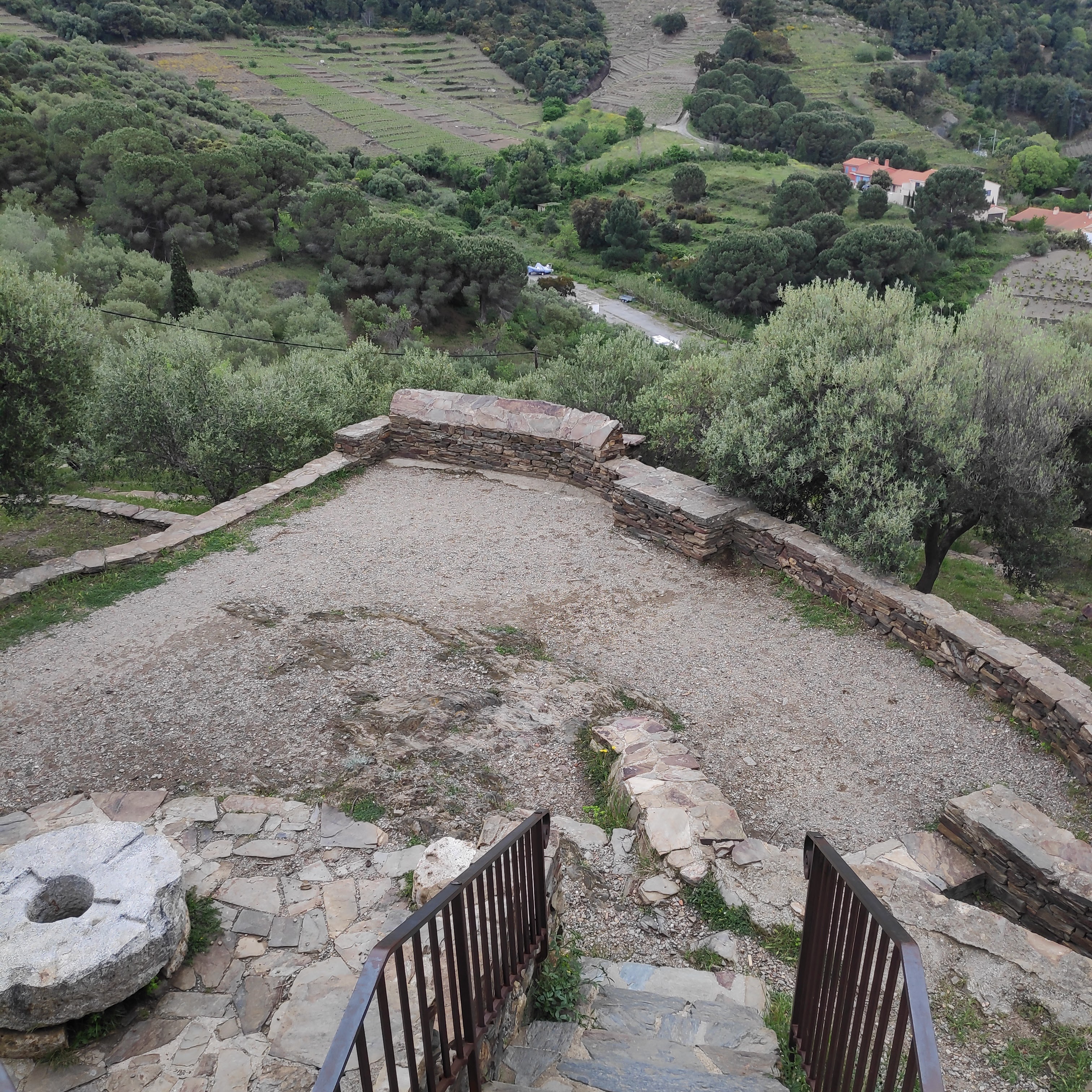 Sur les hauteurs de Collioure la perle de la côte des Pyrénées Orientales 🤡, le moulin à olives constitue un but de promenade très facile d'accès et loin de la foule et du bruit de la ville. On y accède depuis le Musée d'Art Moderne par quelques dizaines de marches en pierre. Altitude 50m. environ. Beau point de vue sur la ville et l'arrière-pays. Le moulin est entouré de champs d'oliviers en terrasses. Pressage à partir de fin octobre au moment de la récolte des olives.