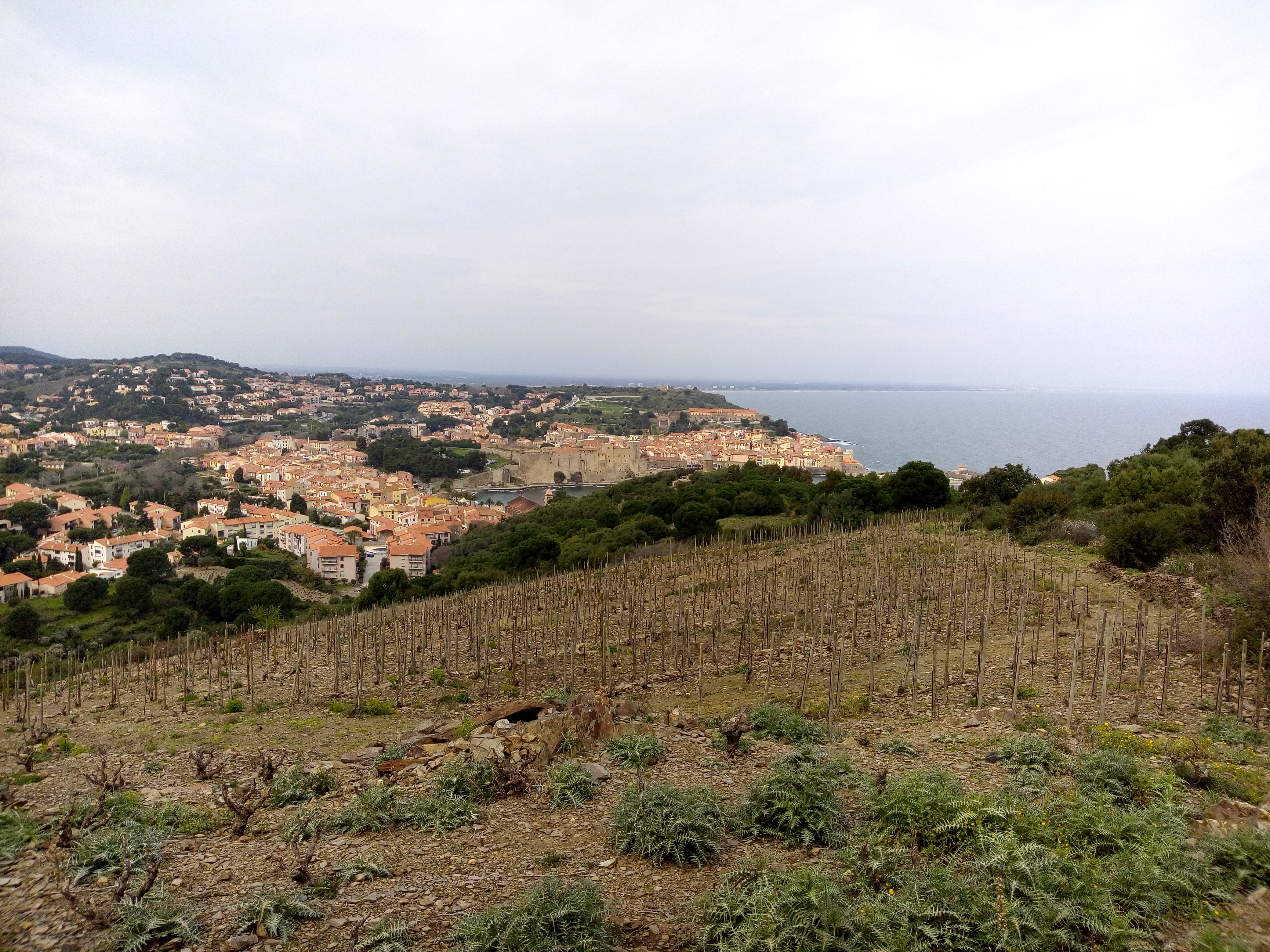 Beau point de vue sur Collioure et les collines alentours