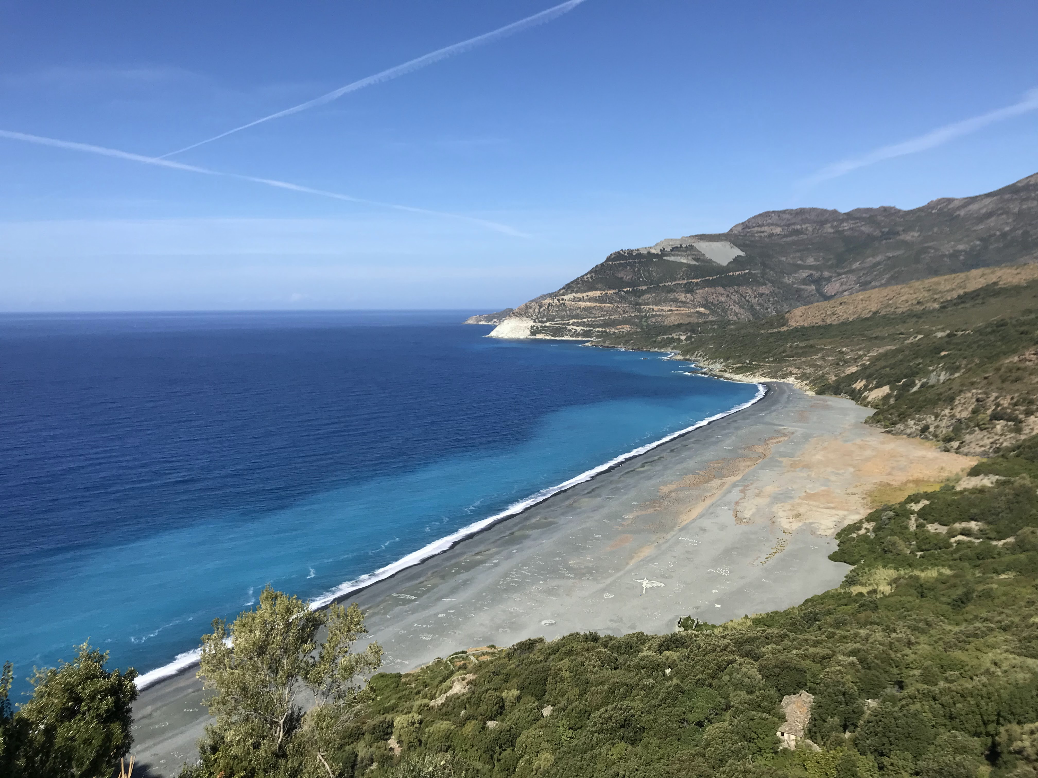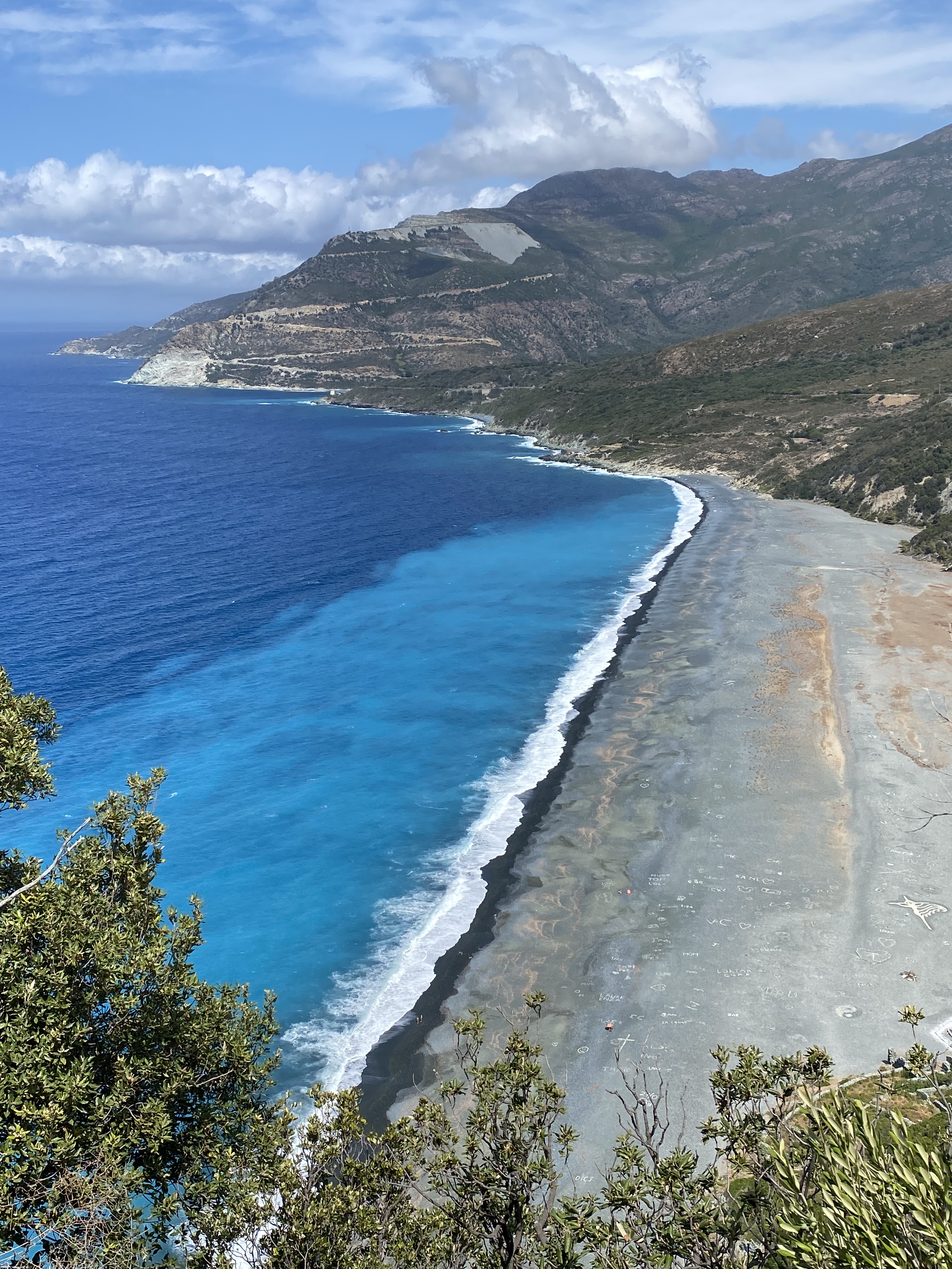 Ca faisait partie de nos points d’arrêt lors de notre road trip sur cape Corse. Les galets noirs, ça fait vraiment spécial