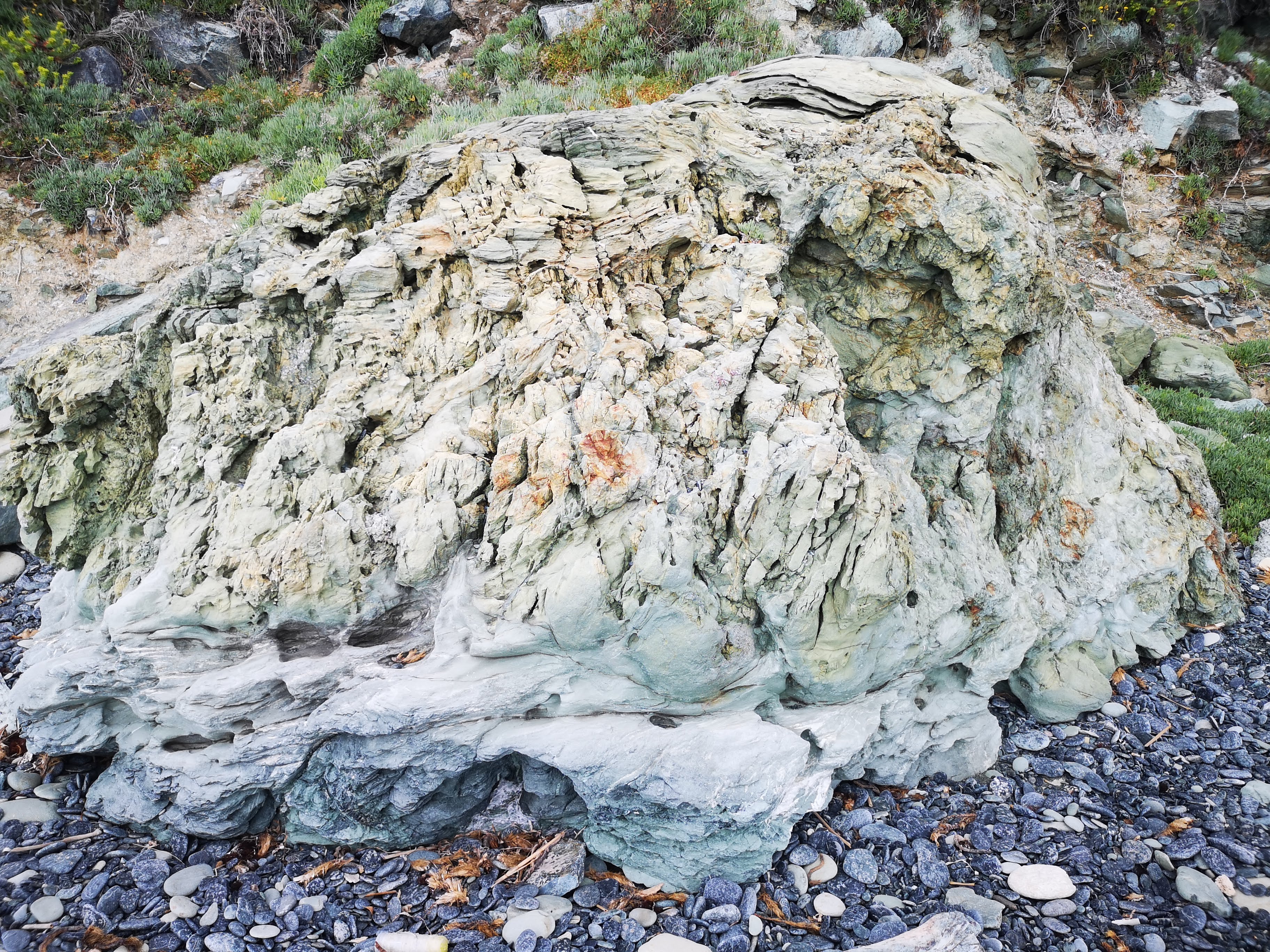 Belle plage de stériles et serpentinite amiantifère, issues de la majorité mine d’amiante de Canari.