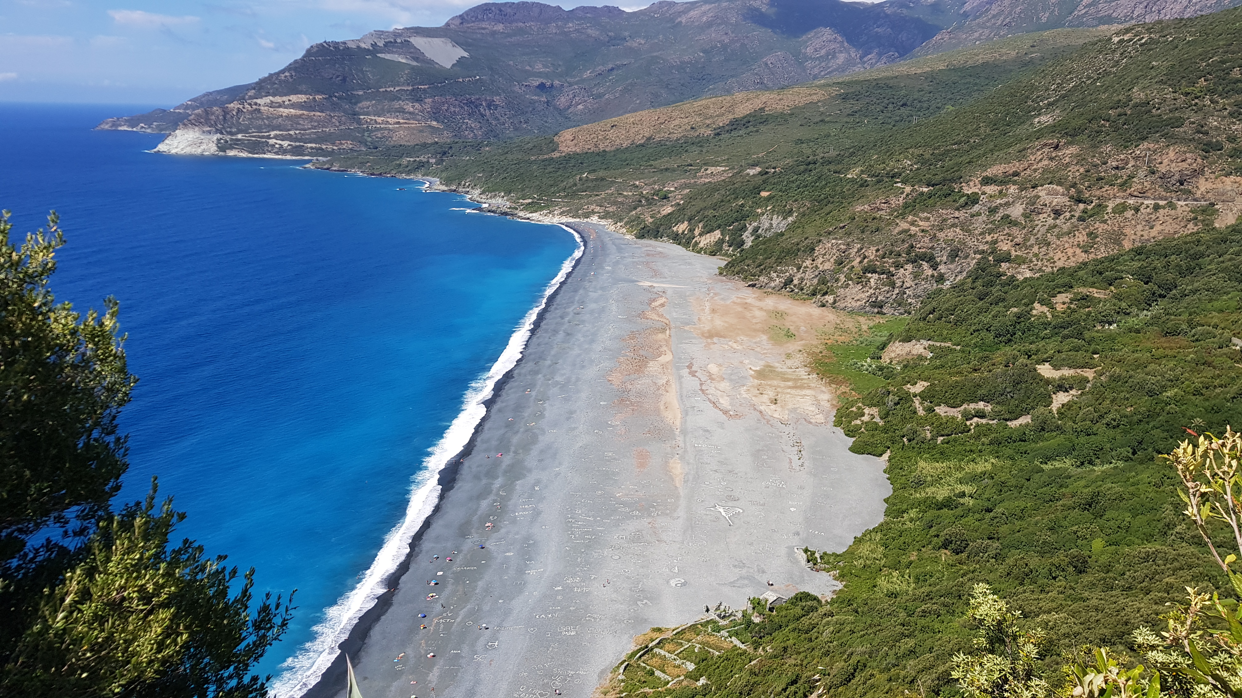 Magnifique grande plage de sable gris! L'accès se fait à partir du village de Nonza (prendre le chemin vers les fontaines de Julie) ou plus au nord par une petite piste goudronnée.