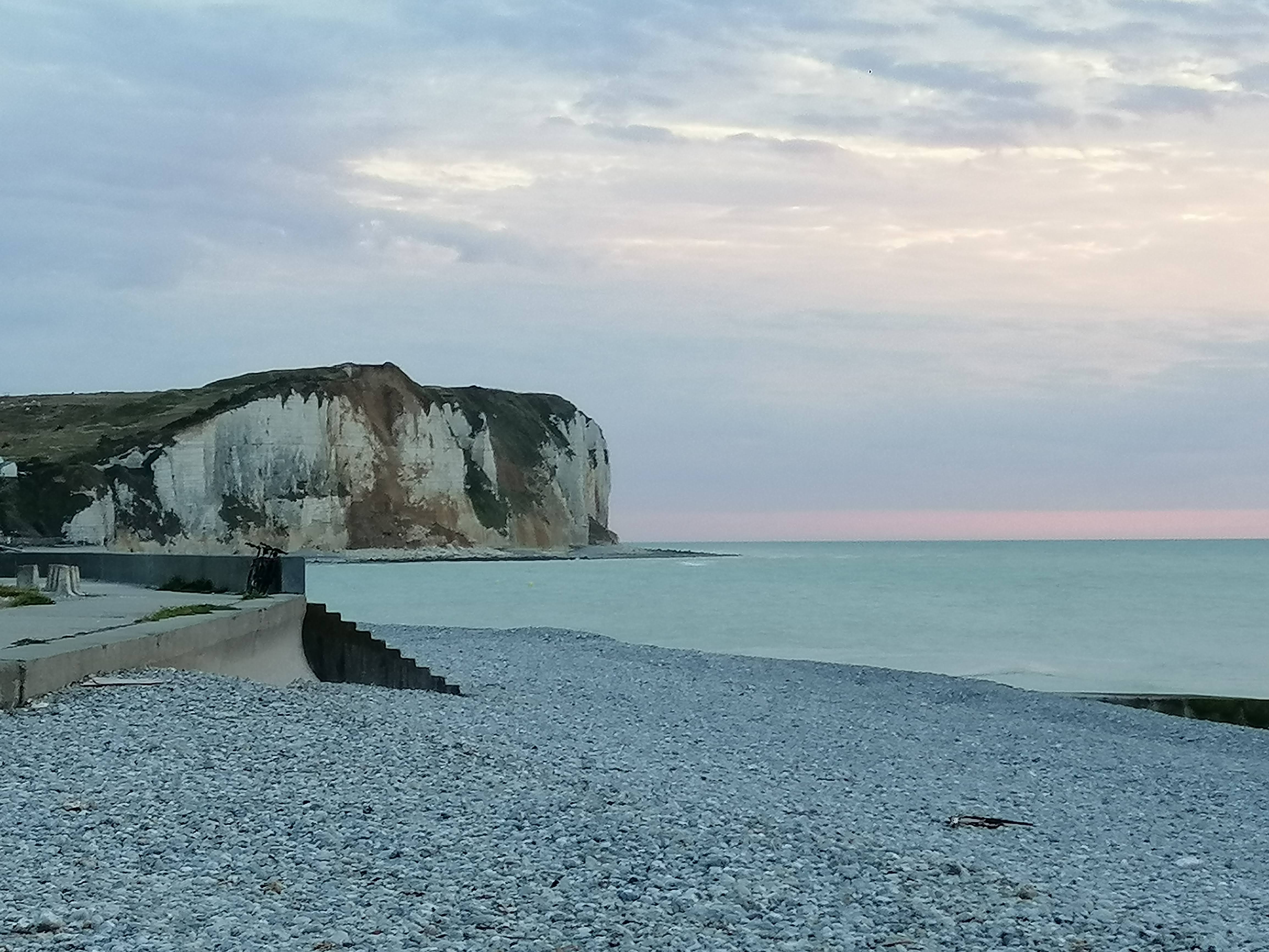 Veulette est une station balnéaire très agréable. Nous avons pu profiter de petits concerts guitare chant, notamment à la friterie au bout de la plage. La plage est sympa mais c'est une plage de galets et la marée ne descend pas fortement. La qualité de l'eau est toutefois excellente. Nous avons pu faire des petites balades le soir et profiter d'un très beau couché de soleil sur fond des falaises qui composent cette belle plage. Je conseille
