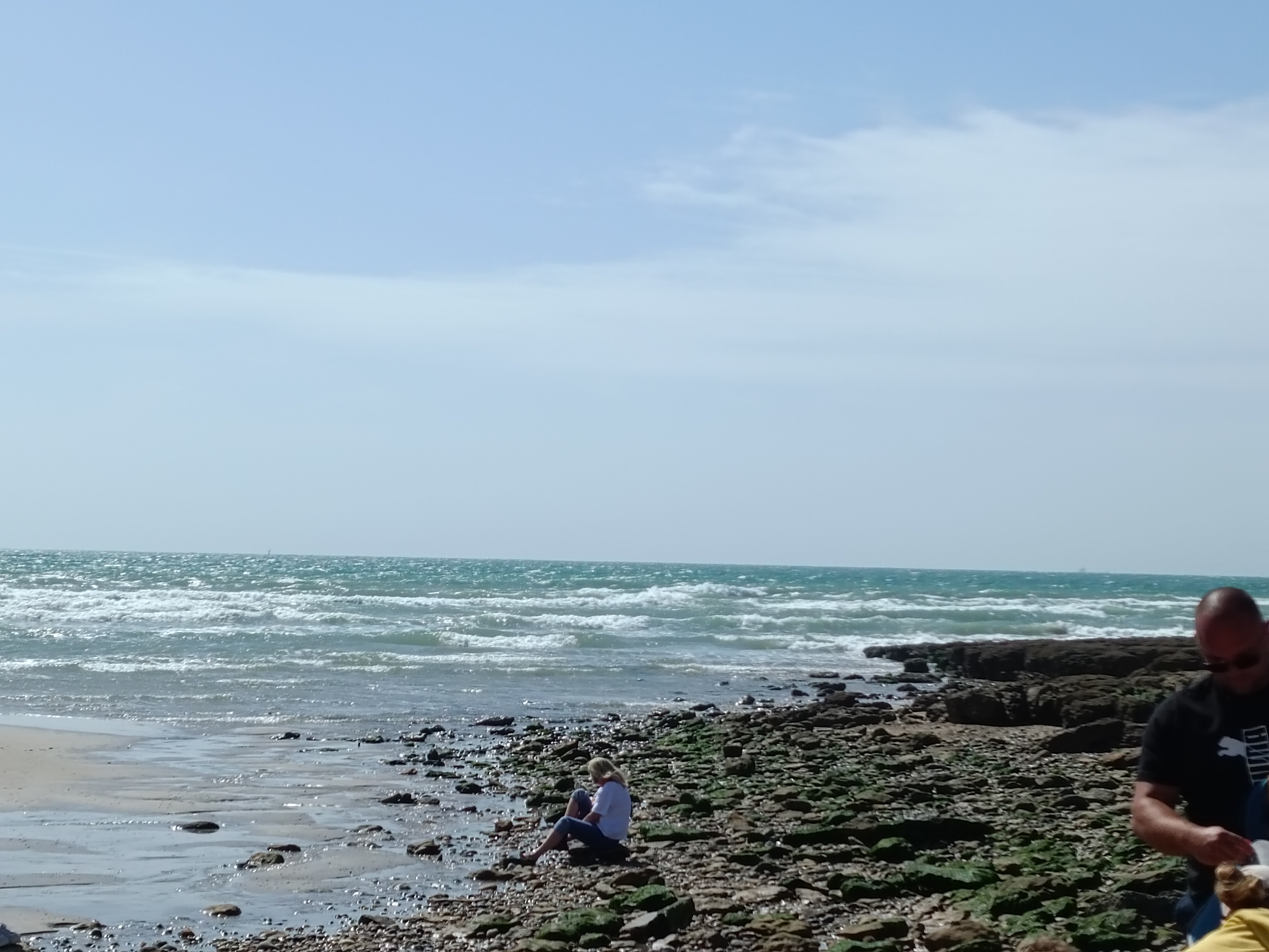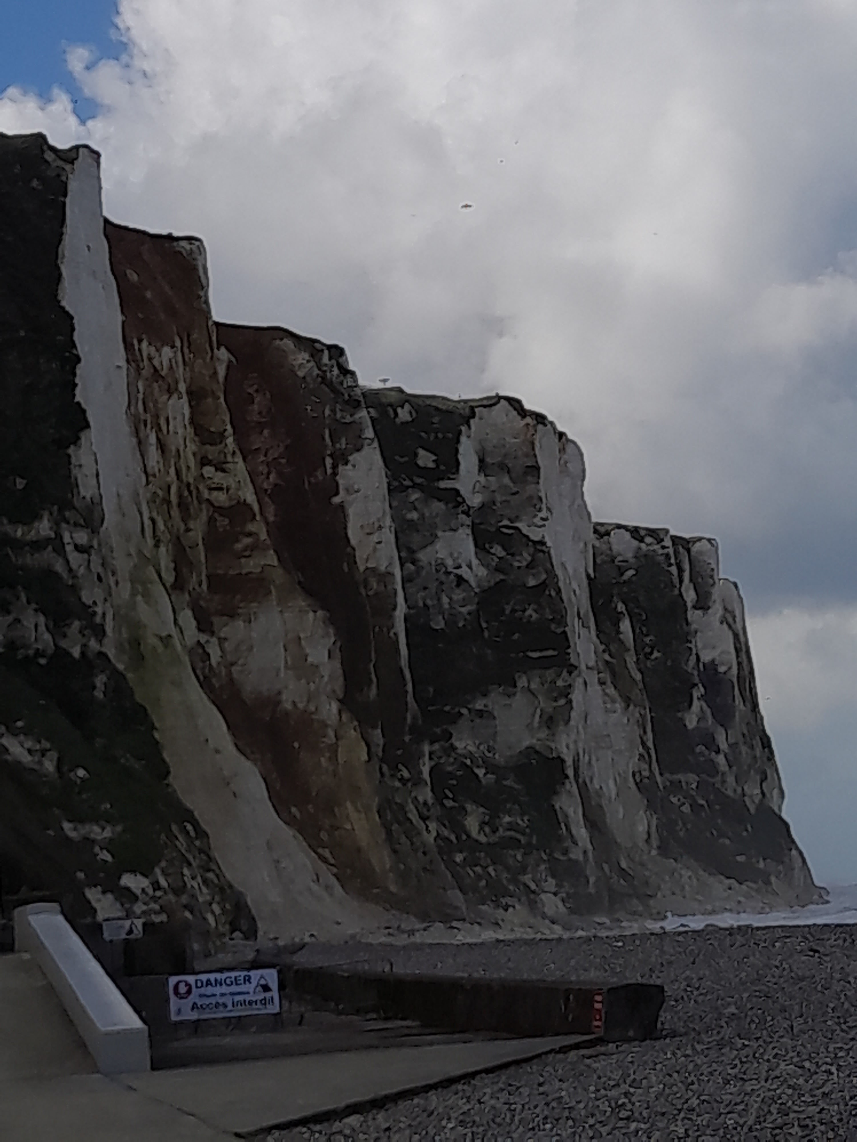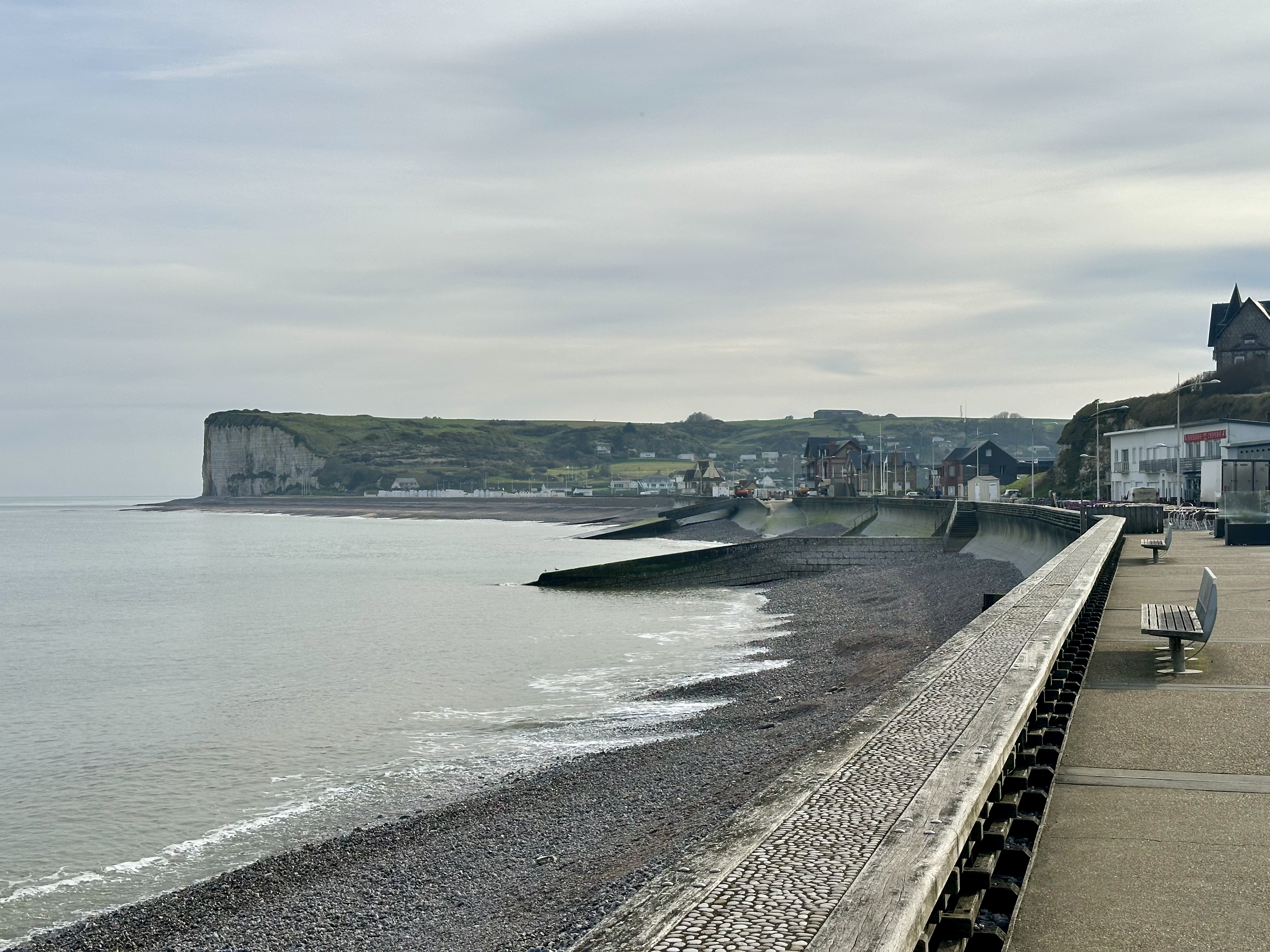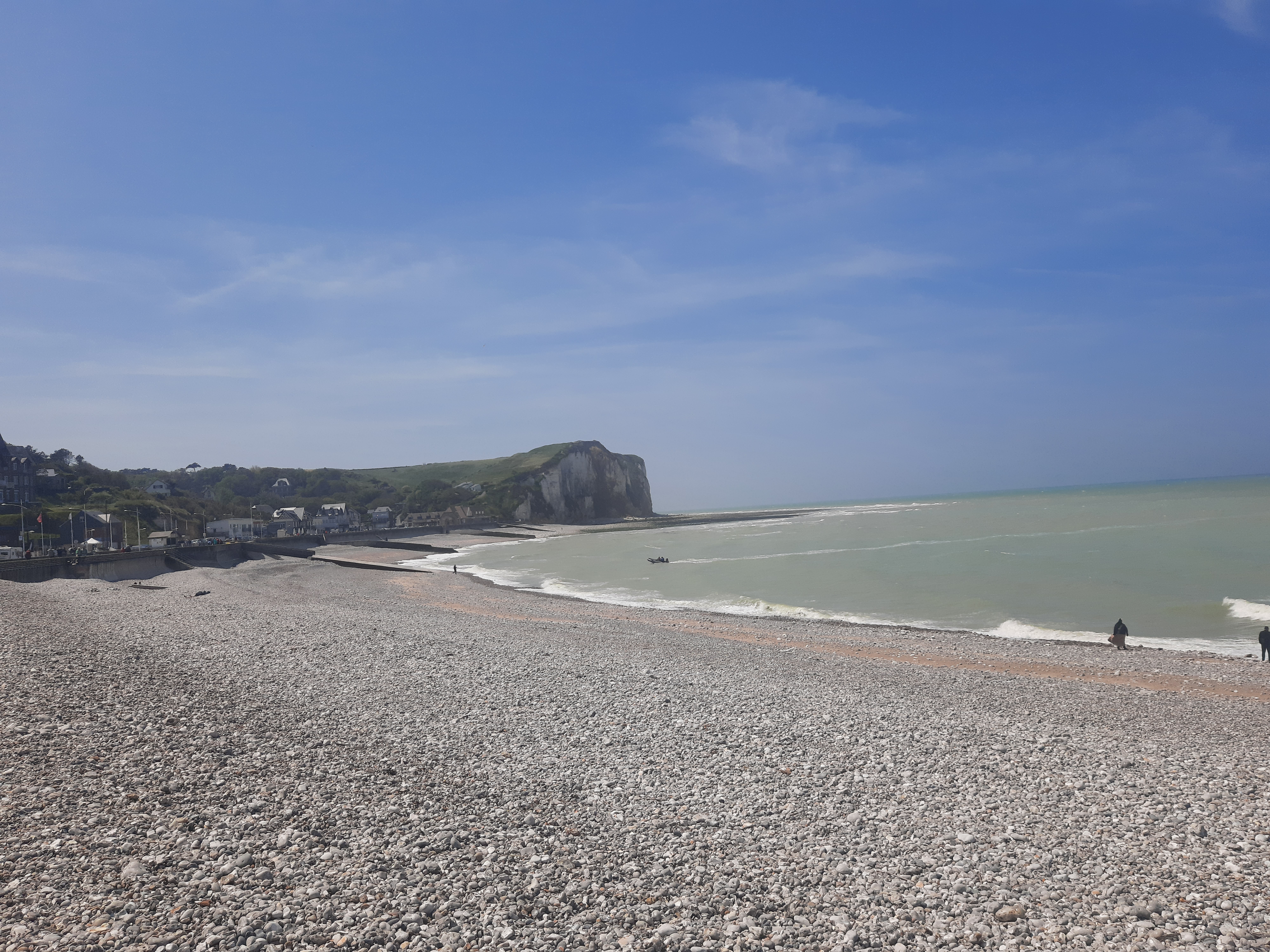 Au mois d'avril, avec un soleil mitigé, une mer houleuse et belle, de belles falaises, quelques promeneurs et touristes, une promenade sur la digue qui se révèle fortifiante