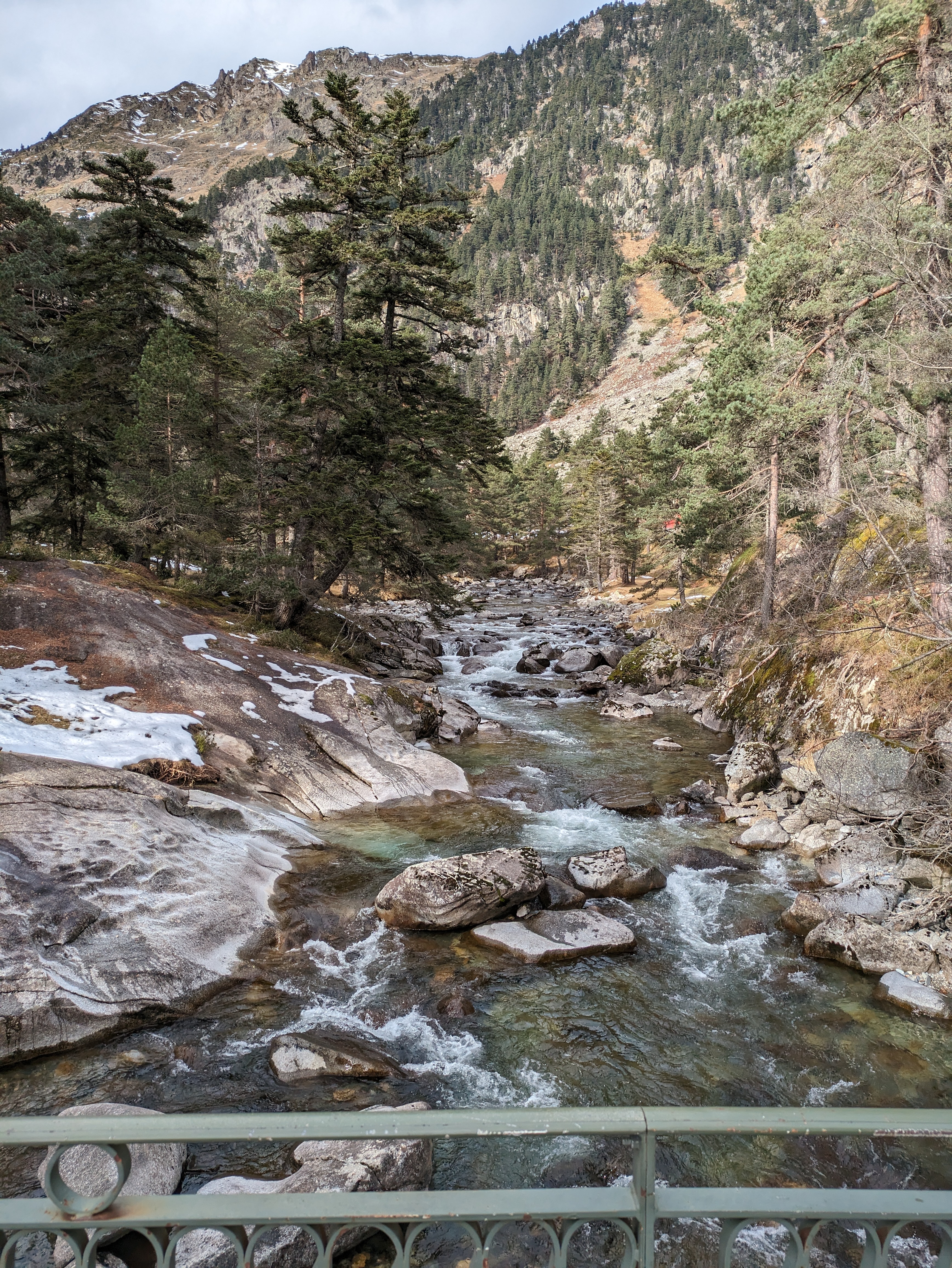 Magnifique endroit pour sortir à se promener. Superbe combinaison entre la neige et la montagne. Il y a une brasserie restaurant pour manger et un petit commerce pour acheter de petites choses. Il y a aussi de toilettes, et de choses pour les enfants. La rivière qui traverse les montagnes est magnifique et forme des immenses Cascades. La visite au Pont d'Espagne est bien recommandée pour tout le monde. Vous profiterez de la nature et aussi du beau paysage.