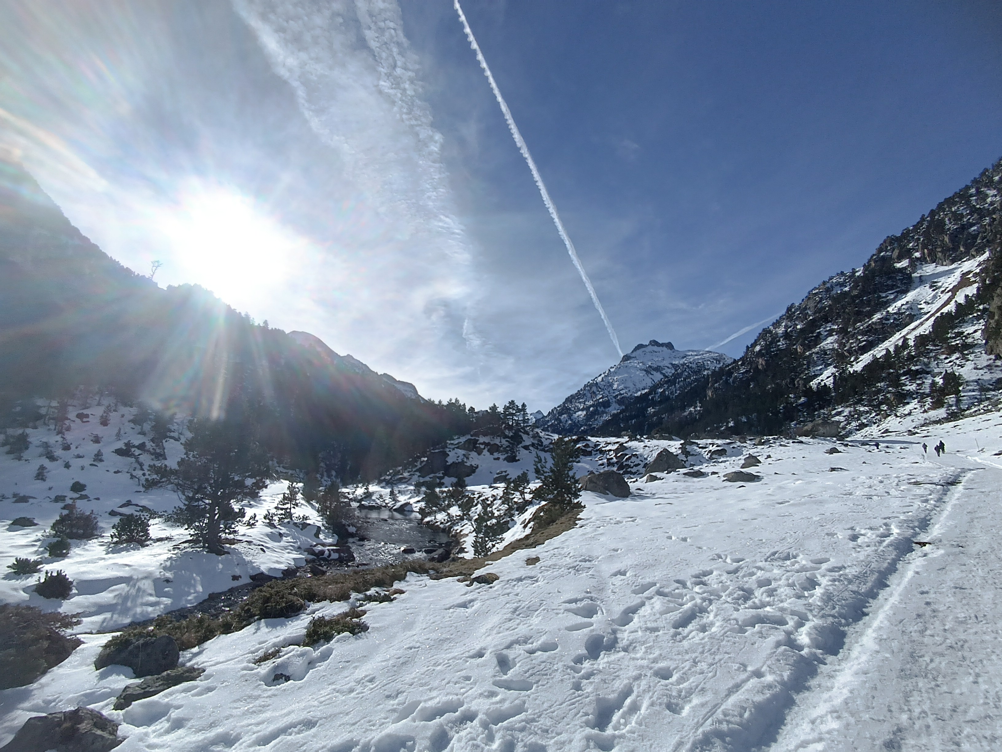 Randonnée au refuge des Oulettes. Prudence en cette saison. La neige et le gel rendent le sentier très glissant. Refuge non gardé, pas de connexion mais dépaysement et beauté garantis