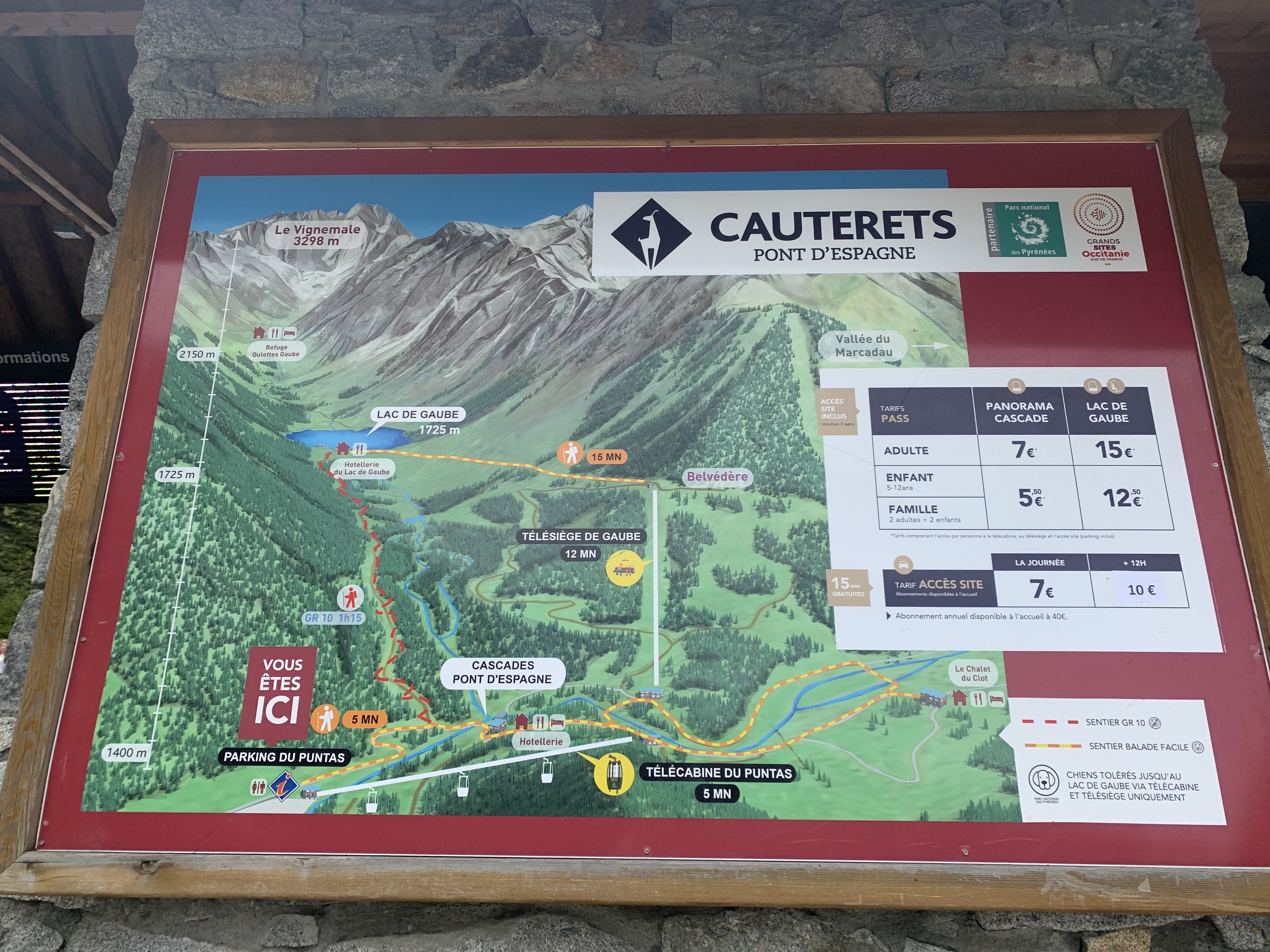 Petite randonnée tranquille praticable avec des enfants… à côté du pont d’Espagne de quoi se restaurer! Parking 7€ la journée même si vous n’y restez qu’une heure dommage un peu chère. Nous y reviendrons pour poursuivre l’ascension sur une journée complète!