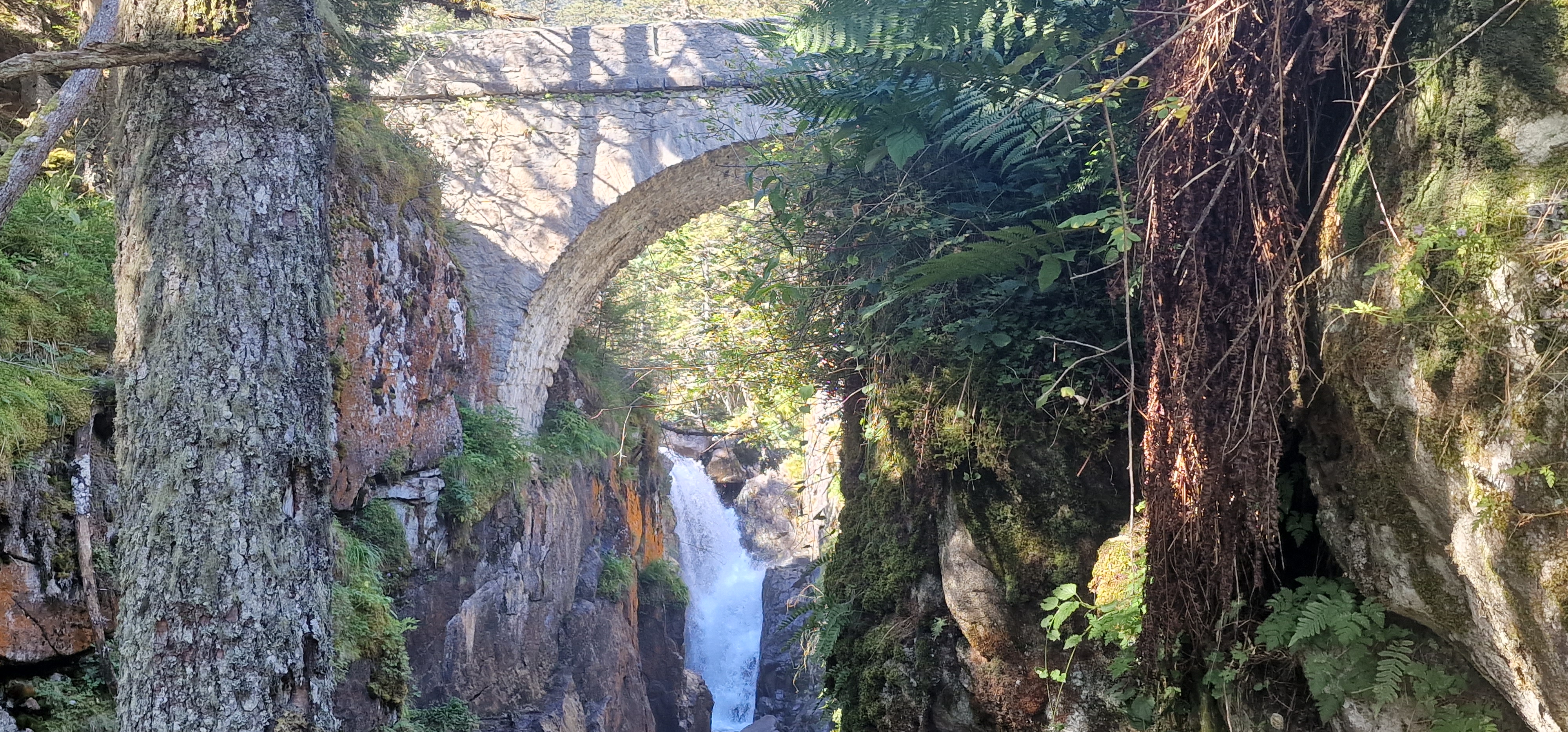 Encore un des incontournables des Pyrénées ! Évidemment fréquenté. Grand parking à l'entrée pour 6.5 € la journée. C'est le temps qui vous est nécessaire pour voir ce magnifique torrent passer sous ce joli pont, puis prolonger votre sortie jusqu'au très beau lac de Gaube. 2 alternatives possibles : montée aller et retour en télésiège, ou à pied en montant par les pistes jusqu'au lac, beau panorama en dégustant votre pique-nique. Possibilité d'aller au bout du lac par le sentier sur le côté. Descendre par le sentier de l'autre côté du torrent, chemin escarpé par endroits (Prévoir de bonnes chaussures).