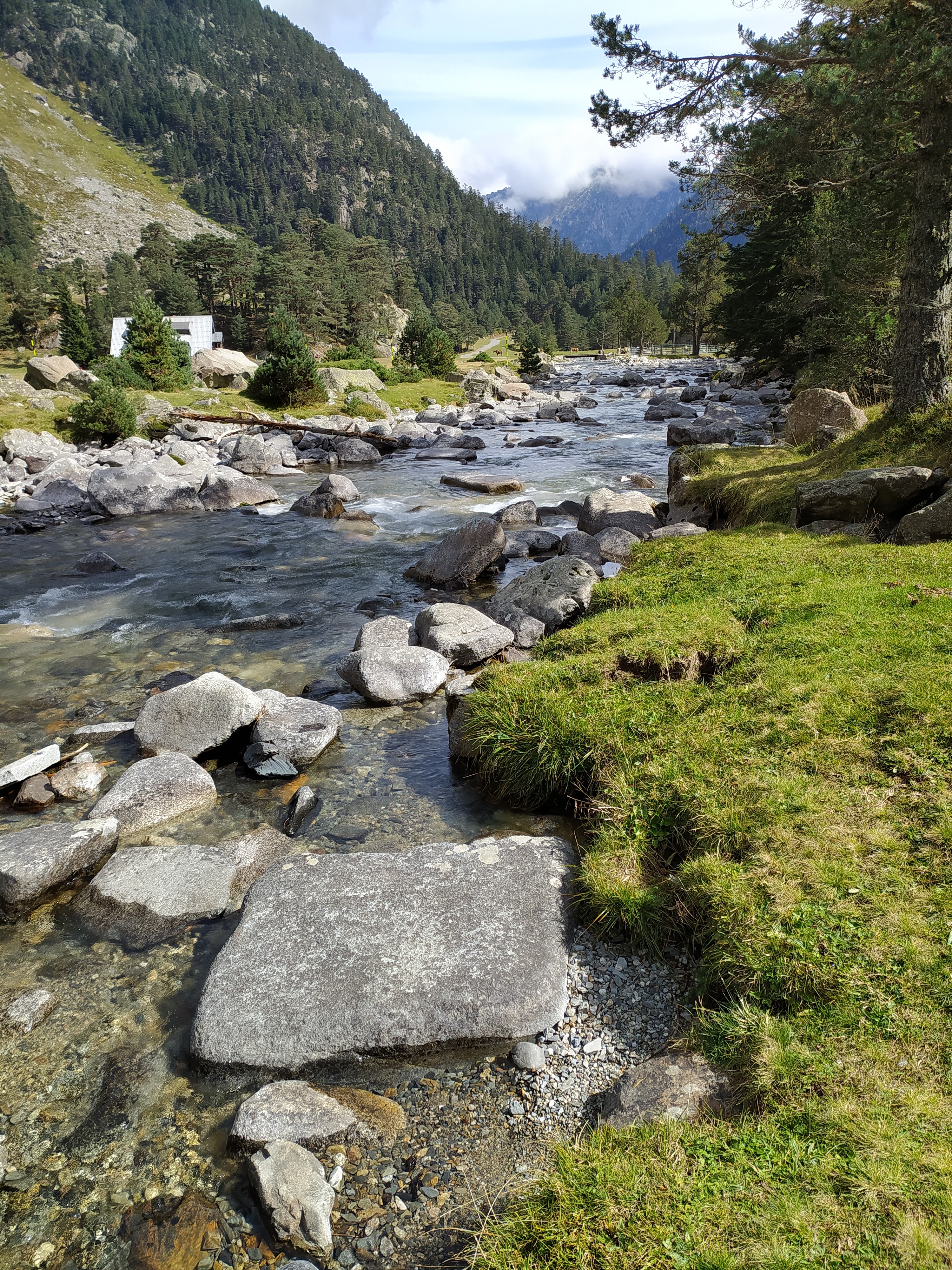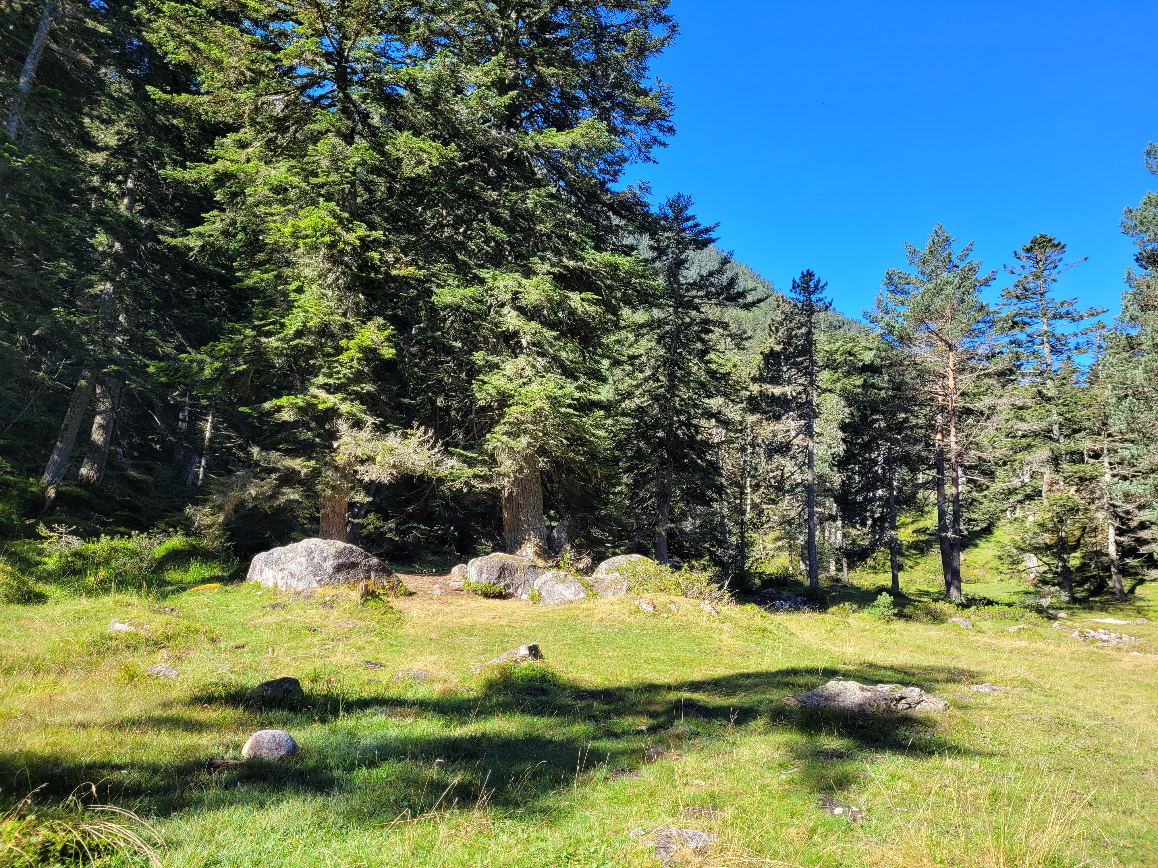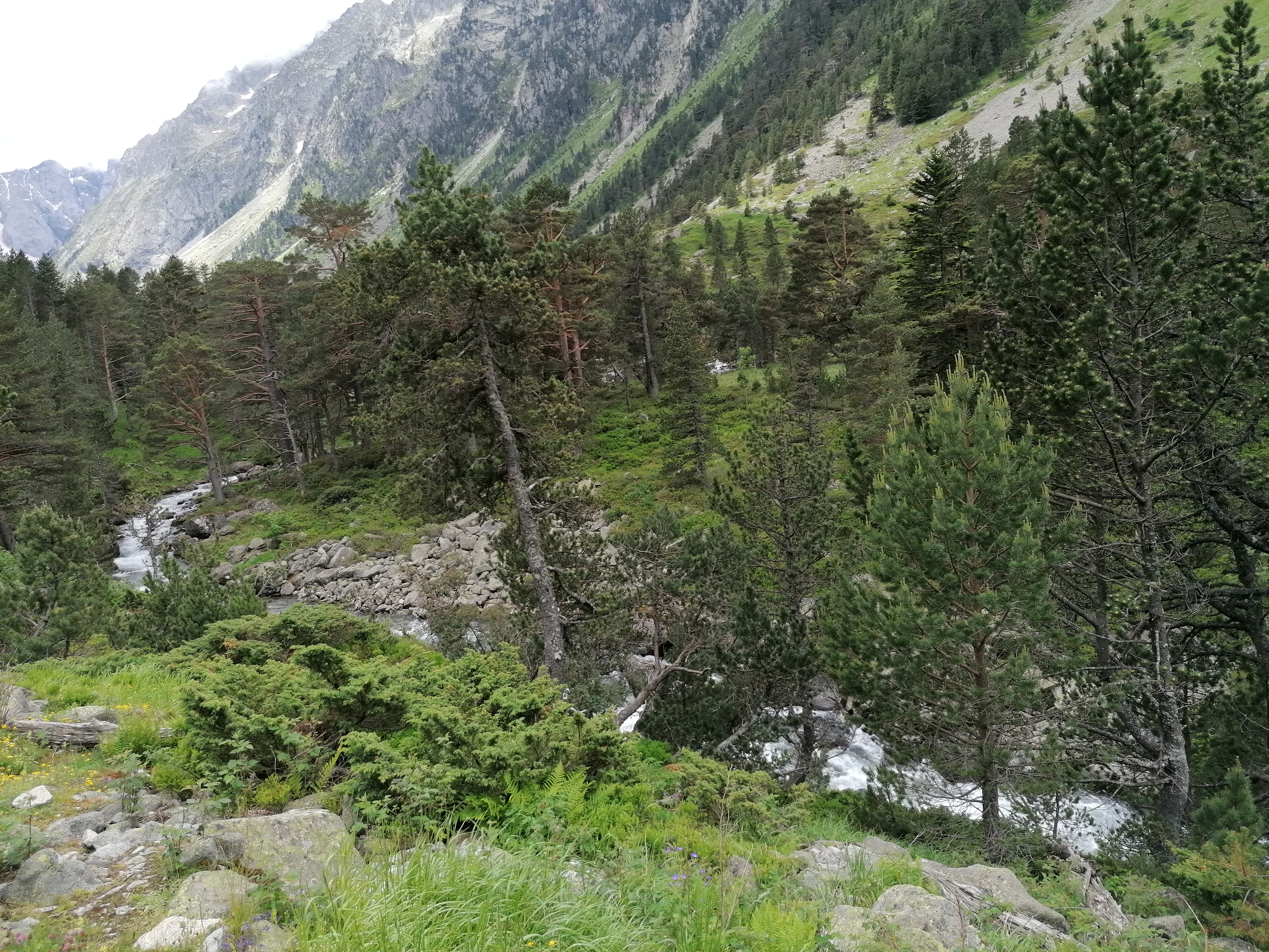 Lieu superbe dans un écrin rocheux sur une plaine où coule une rivière. Rafraîchissant et verdoyant..Ça fait un bien fou. Avec de la chance on peut apercevoir un isard, des marmottes...pour nous aujourd'hui c'est une biche qui a traversé un pierrier pour aller boire..Nous sommes heureux.