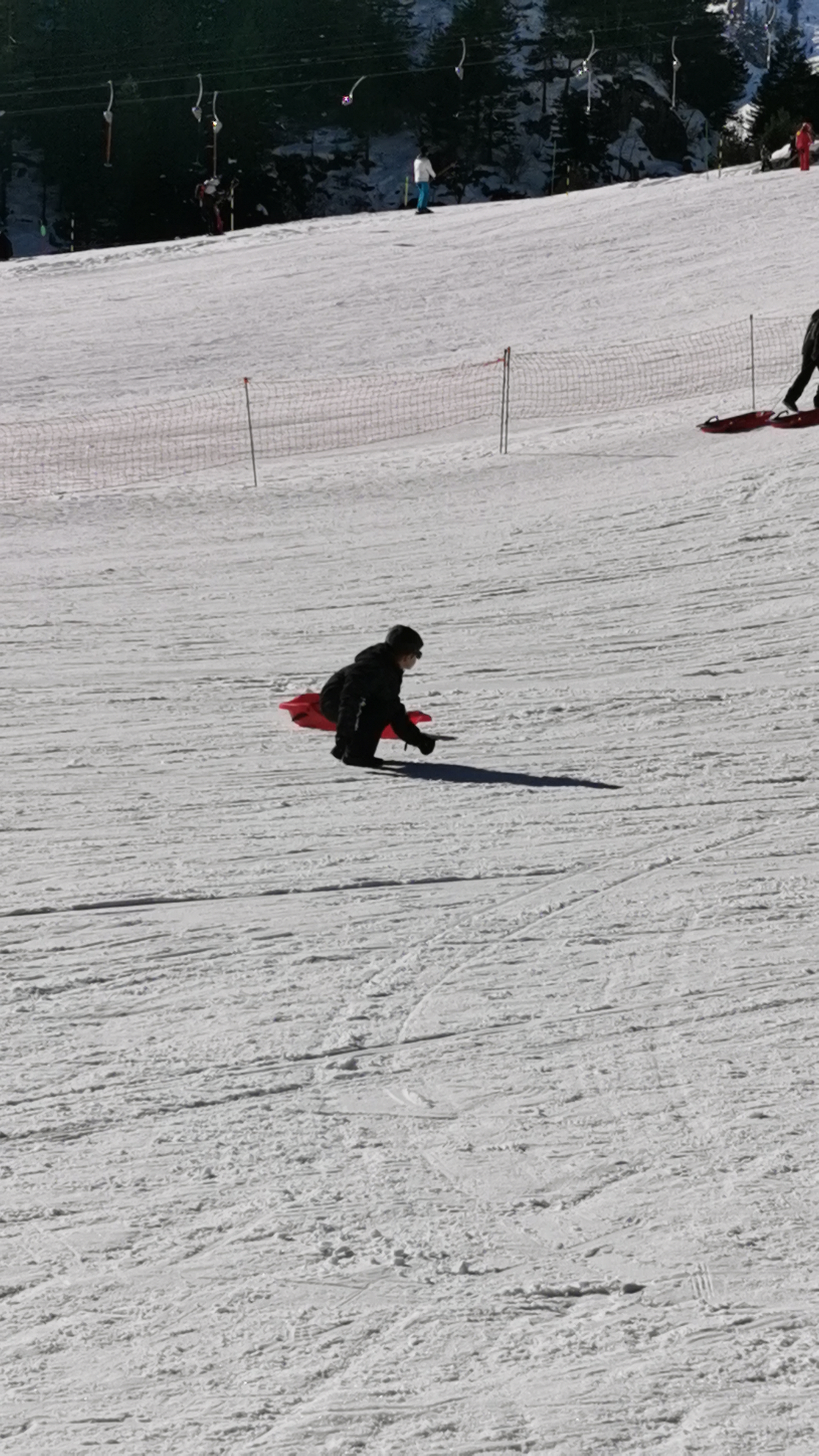 Parfait pour débuter en ski alpin, une piste verte, bleu et rouge, mais en lendemain de jour de neige les pistes sont toutes fermées pour manque de neige.