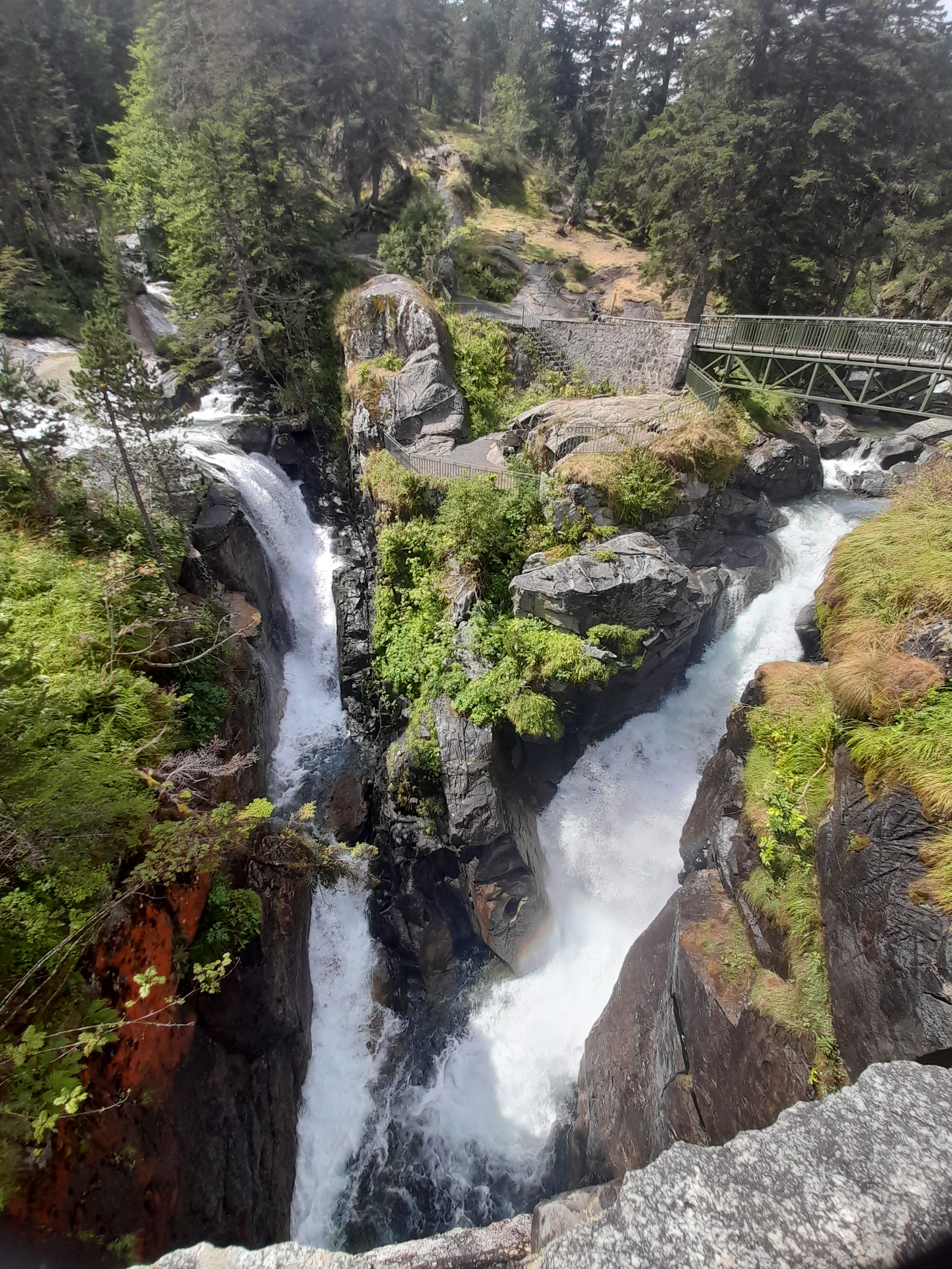 La vue du pont sur les cascades est top mais vieux vaut passer de l'autre côté en contre bas, accès par un escalier. La vous aurez une vue du dessous plongeante sur la rivière. Je ne conseille pas de se garer en voiture au parking car énormément de monde voir même des bouchons. Privilégier la rando du chemin des cascades jusqu'au pont d'Espagne. 1h30 de marche depuis la Raillère. Parking gratuit. Rando famille avec de très belles cascades et des points pour faire trempette.