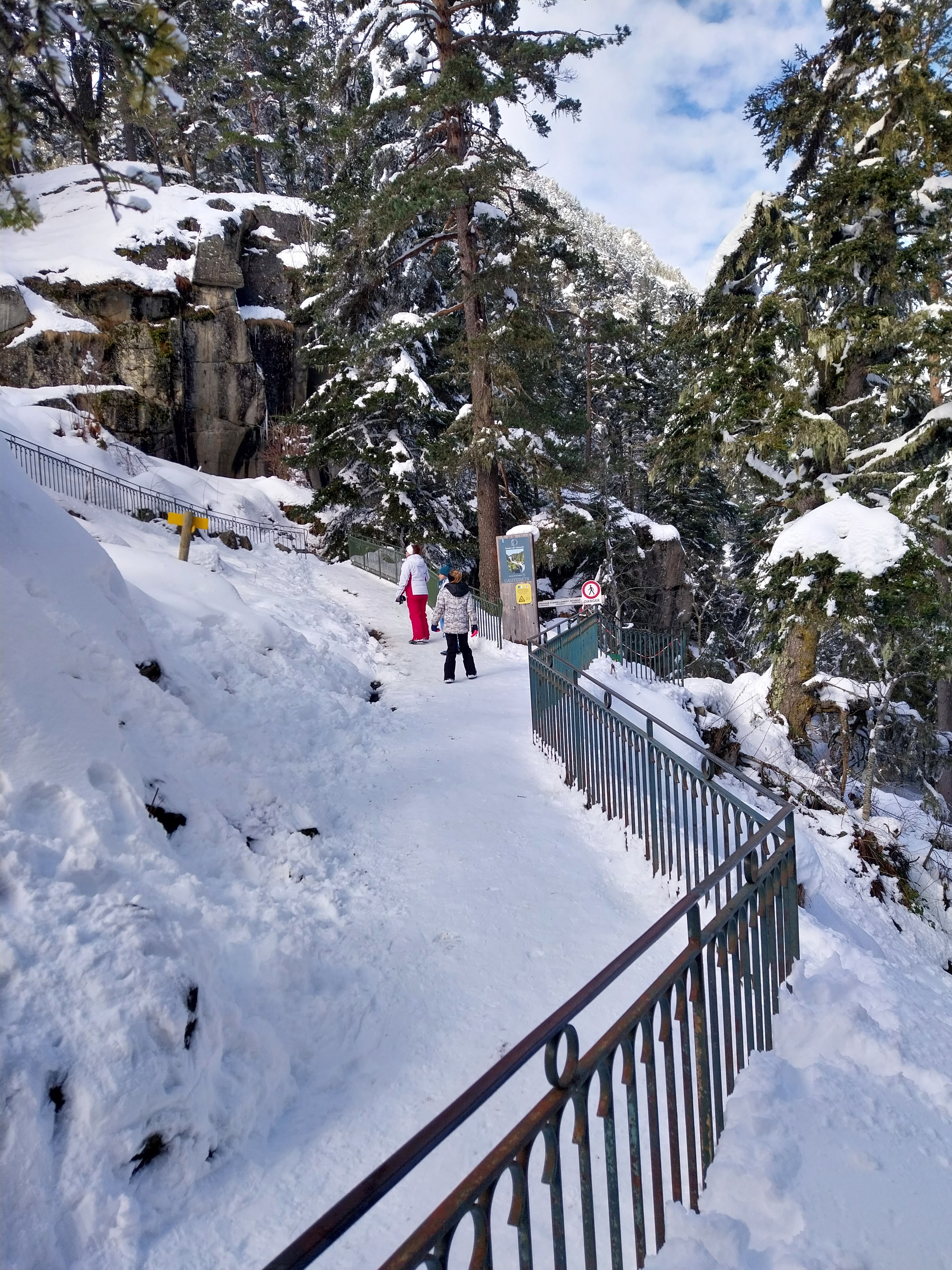 journée absolument parfaite au Pont d'Espagne. De la neige partout, c'est agréable de se promener et de voir tout le monde faire son travail. décontracté, sans effort, détendu. La télécabine qui vous emmenait depuis le parking était ouverte. 6 euros par personne je crois et parking gratuit avec ce ticket. La deuxième télécabine ne fonctionnait pas et je ne sais pas pourquoi, elle ne pouvait donc pas accéder au lac. Le Pont d'Espagne est l'un de mes meilleurs endroits à visiter été comme hiver. c'est magique