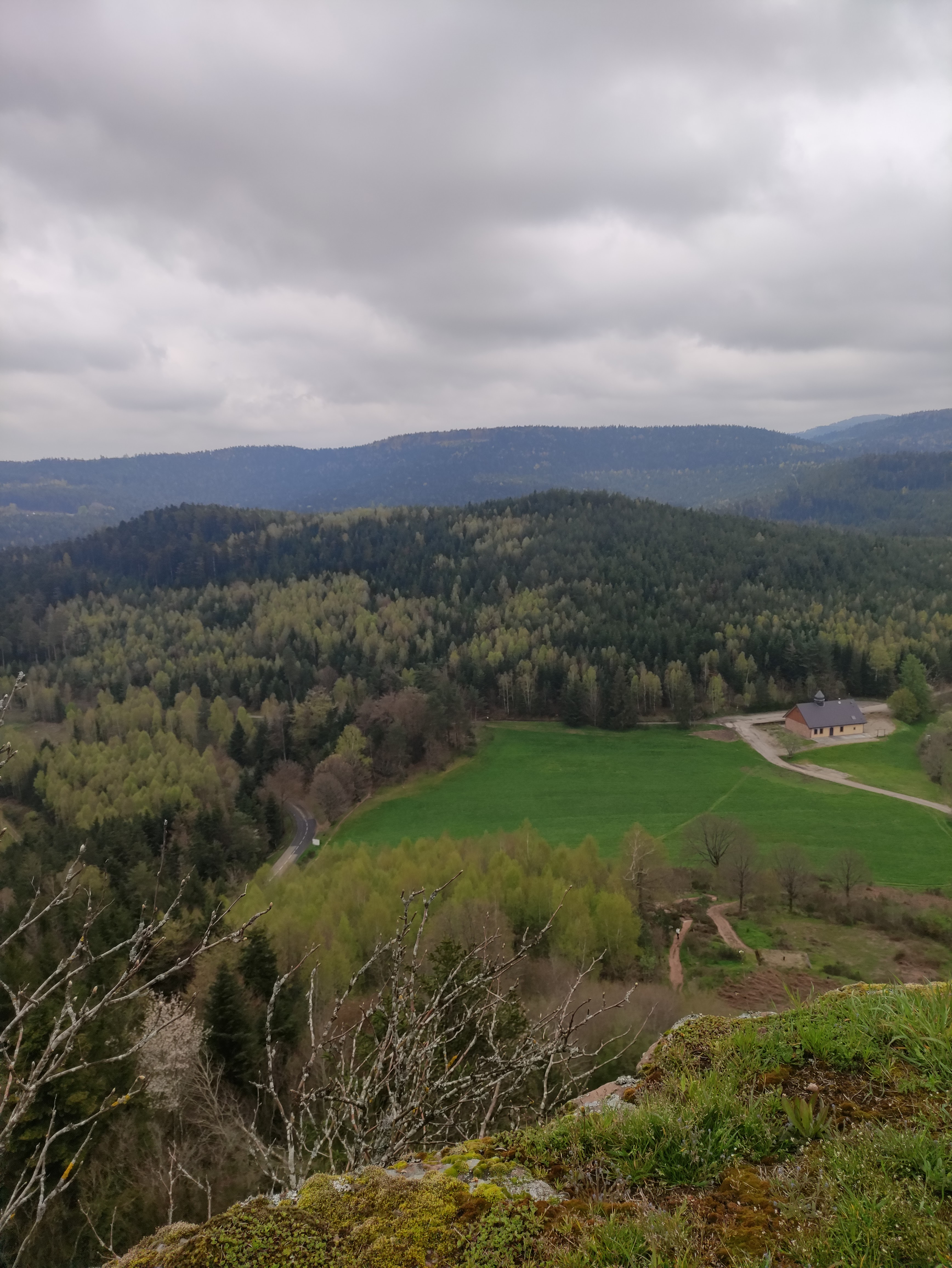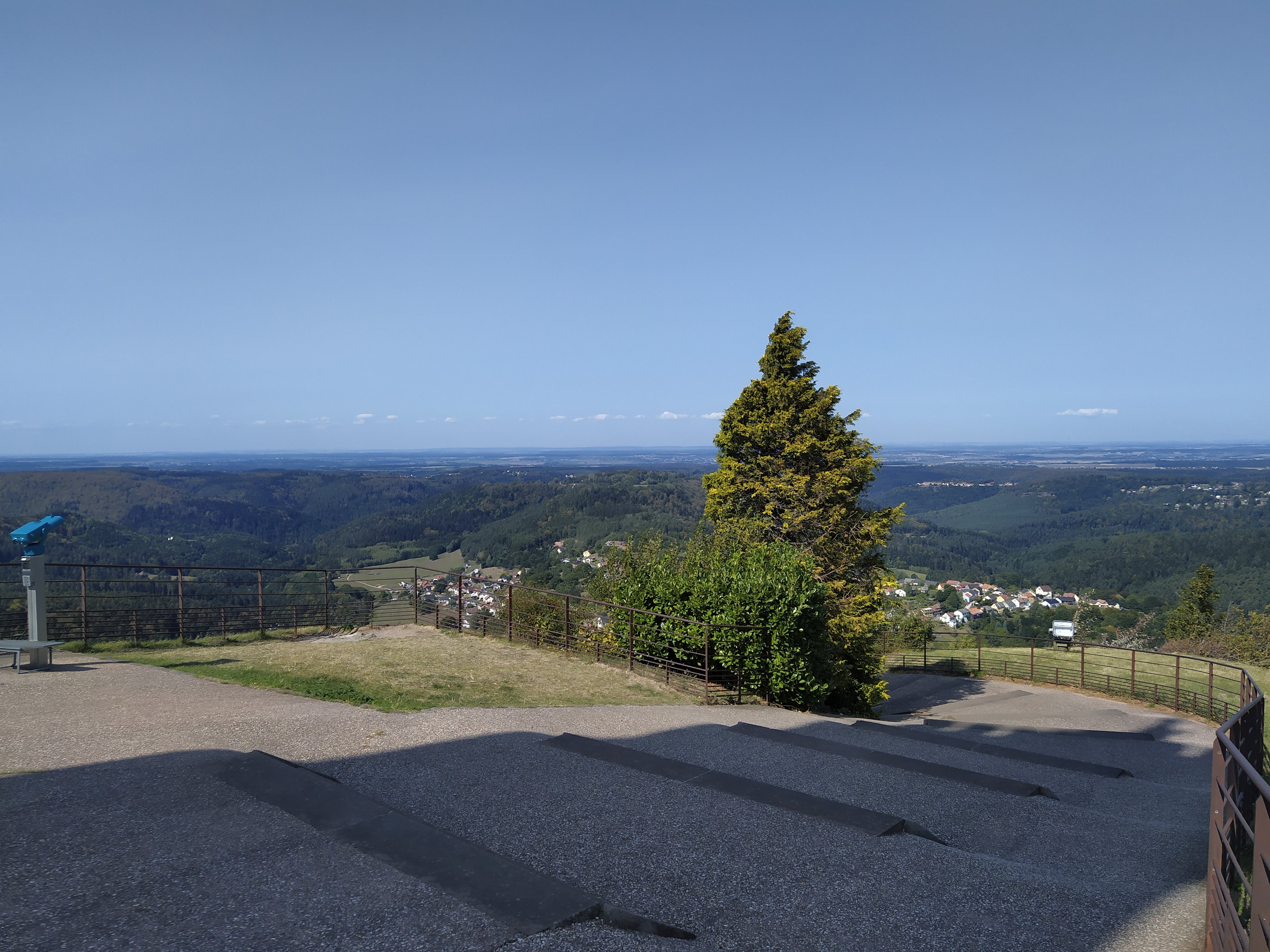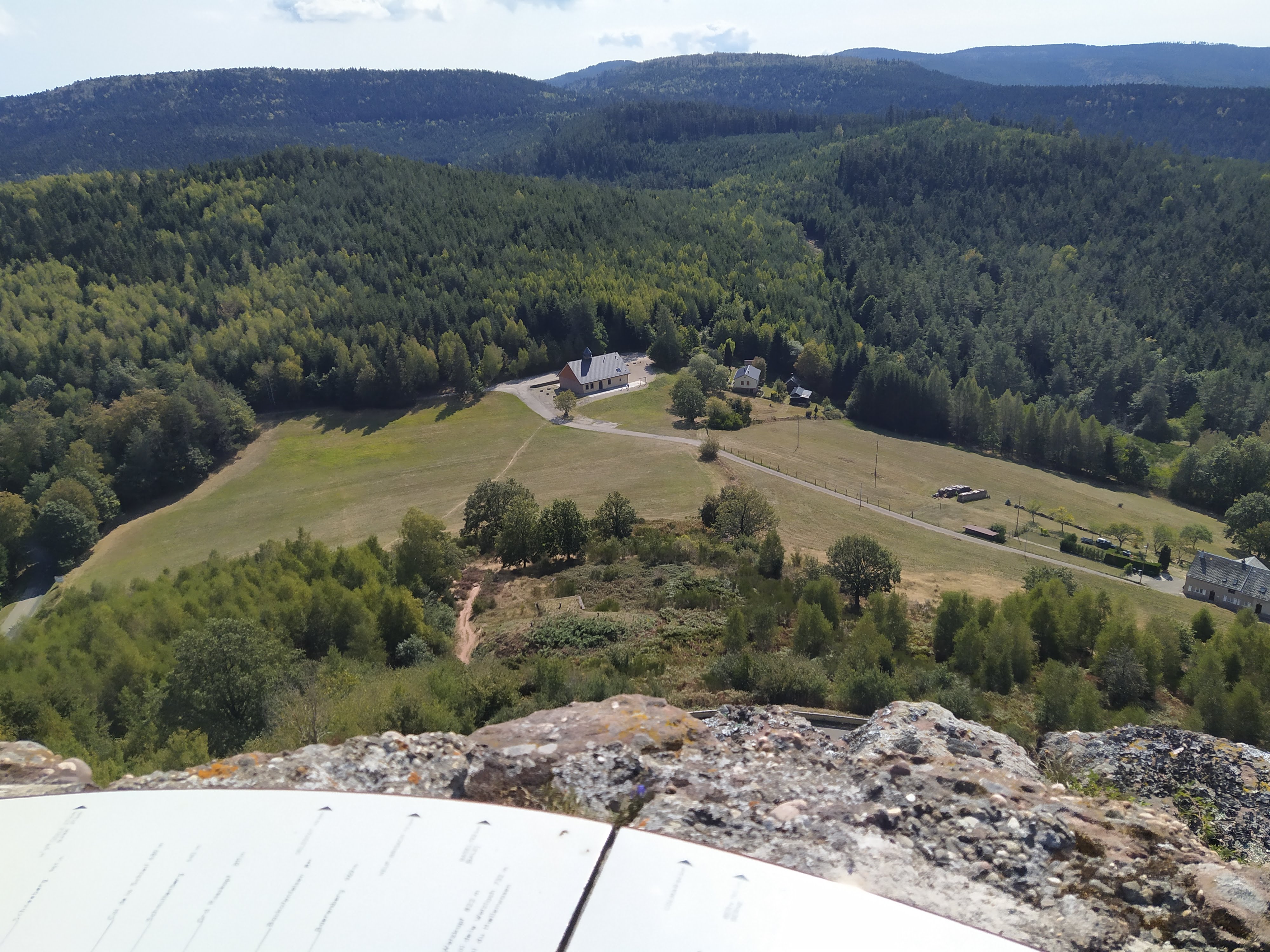 La vue est magnifique. C est beau les Vosges. L hôtel restaurant au sommet ou j ai eu mes premiers souvenirs coquins avec celle qui est ma femme depuis 30 ans a malheureusement été détruit par le feu il y a 4 ans.il faut encore 2 ans pour tout refaire a neuf. En attendant ils font de superbes flammenkuche sous toile et petits cabanons provisoires. Allez les soutenir car l hôtel refait cela sera splendide : ils ont plein d idée. Et ont besoin de nous.