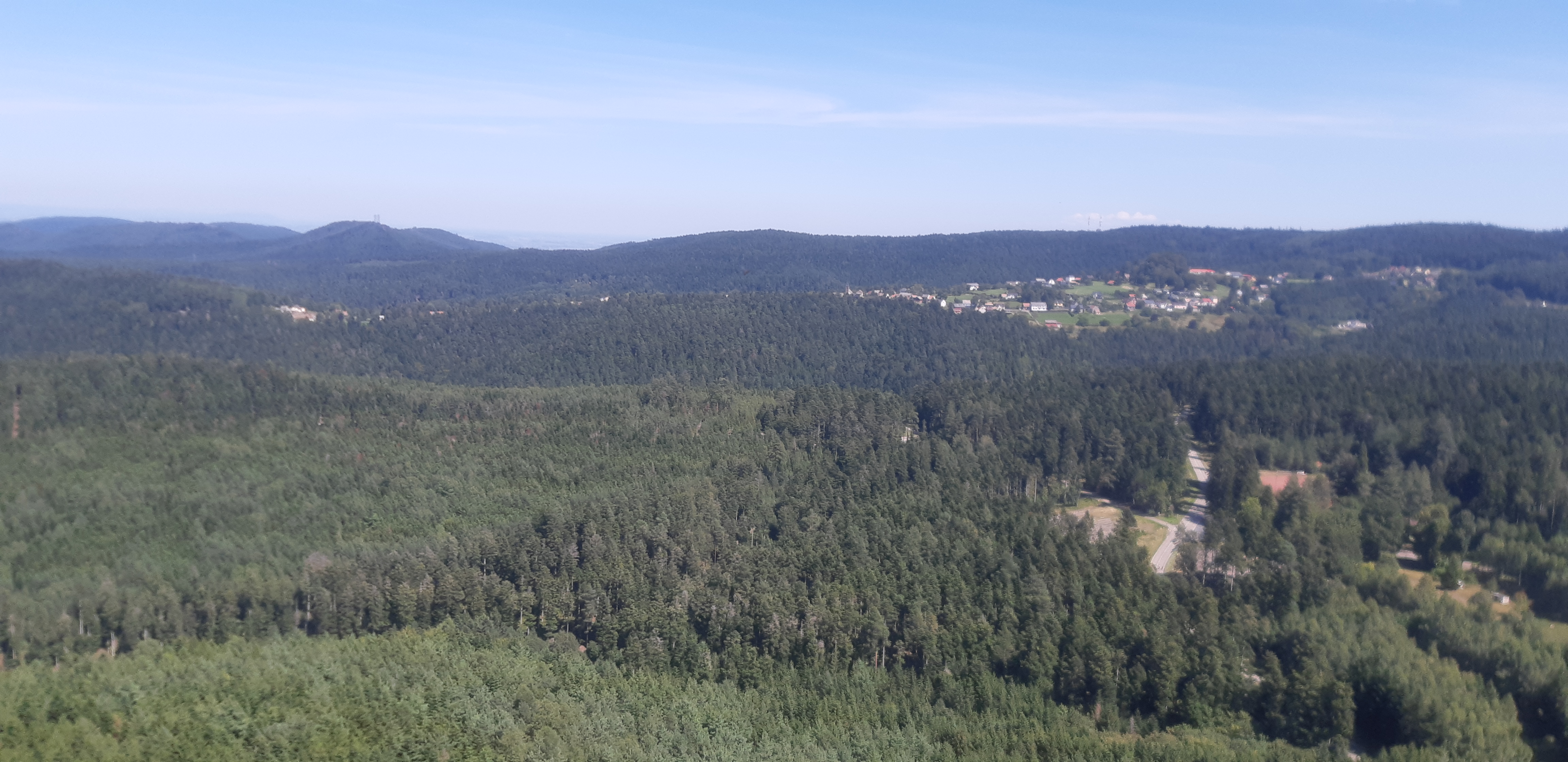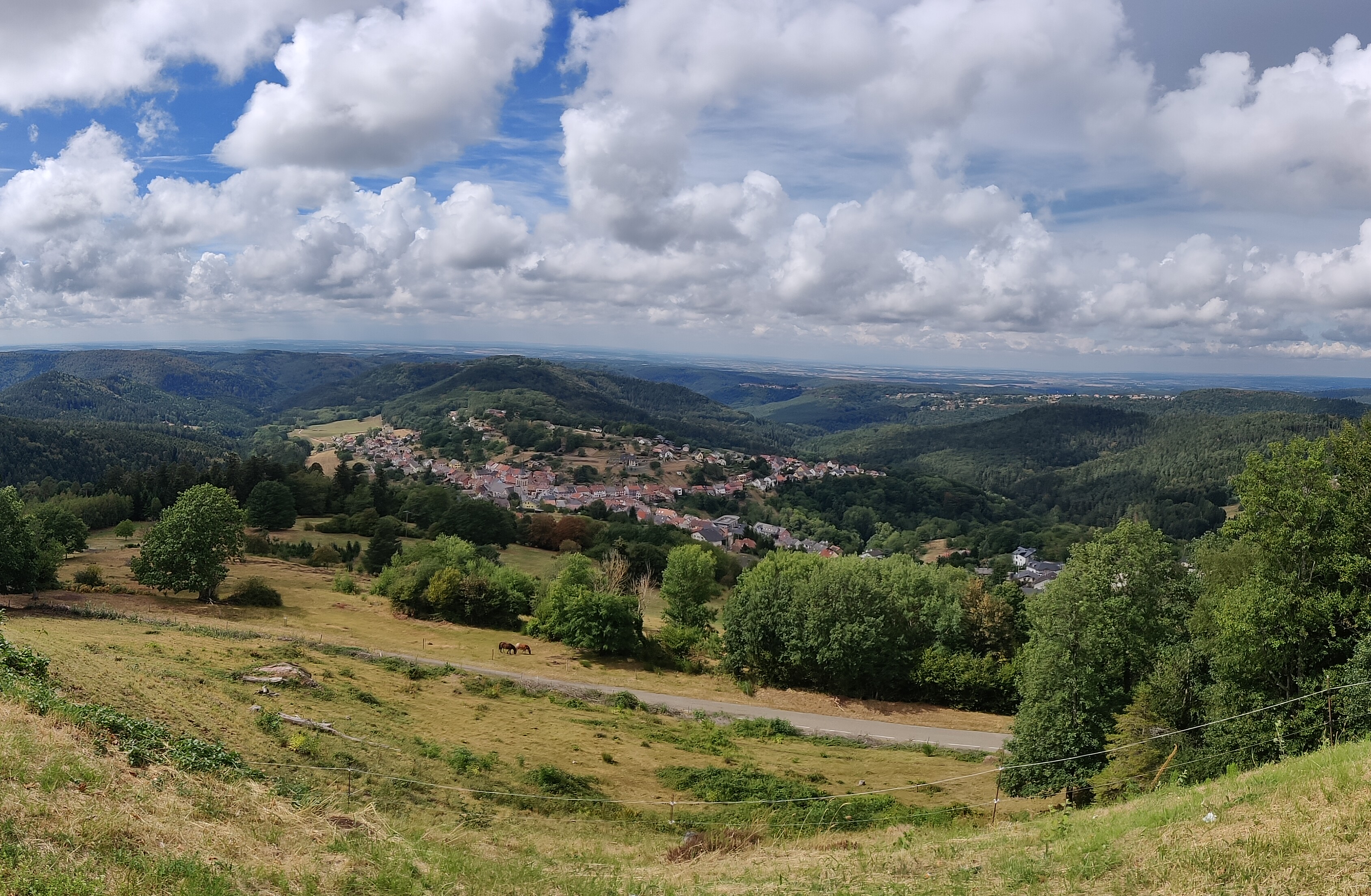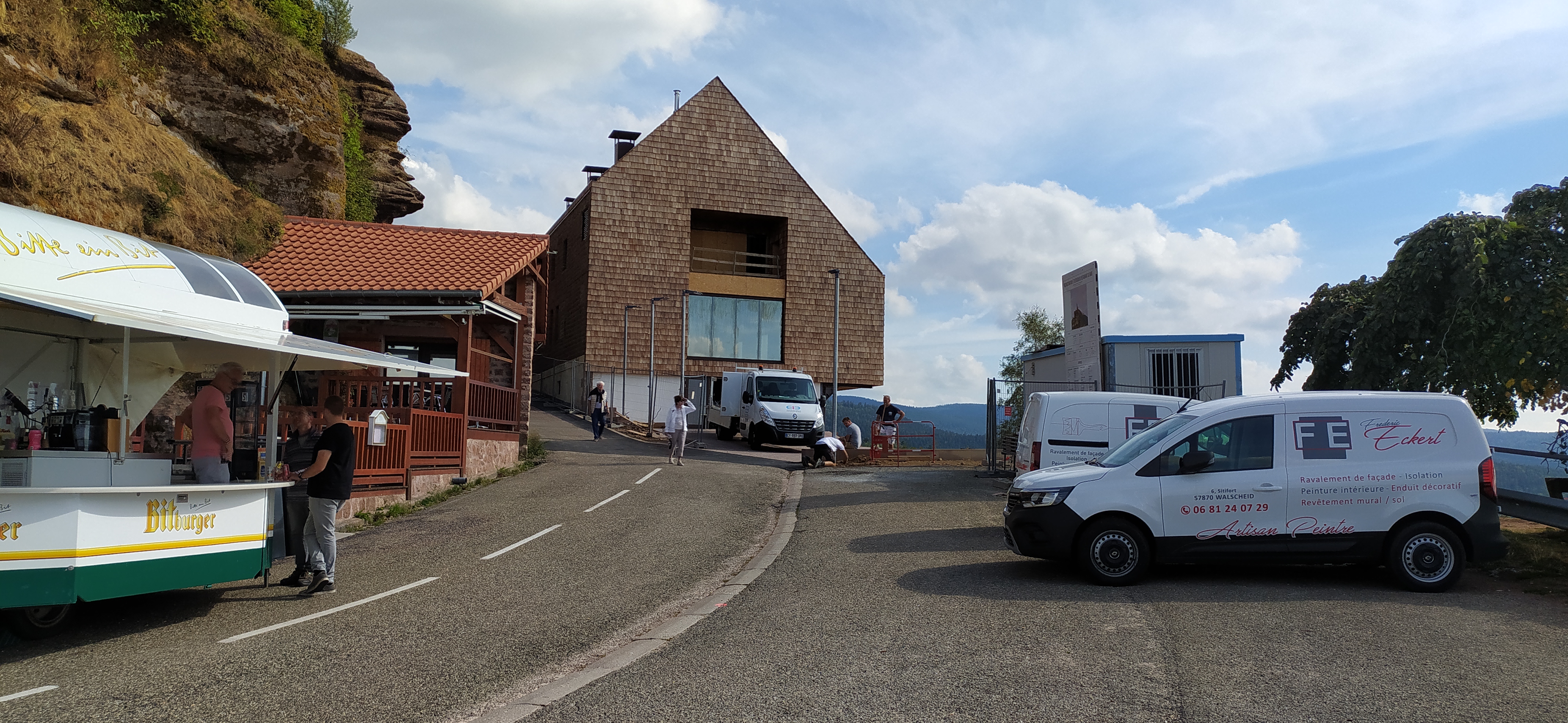 La vue est magnifique. C est beau les Vosges. L hôtel restaurant au sommet ou j ai eu mes premiers souvenirs coquins avec celle qui est ma femme depuis 30 ans a malheureusement été détruit par le feu il y a 4 ans.il faut encore 2 ans pour tout refaire a neuf. En attendant ils font de superbes flammenkuche sous toile et petits cabanons provisoires. Allez les soutenir car l hôtel refait cela sera splendide : ils ont plein d idée. Et ont besoin de nous.