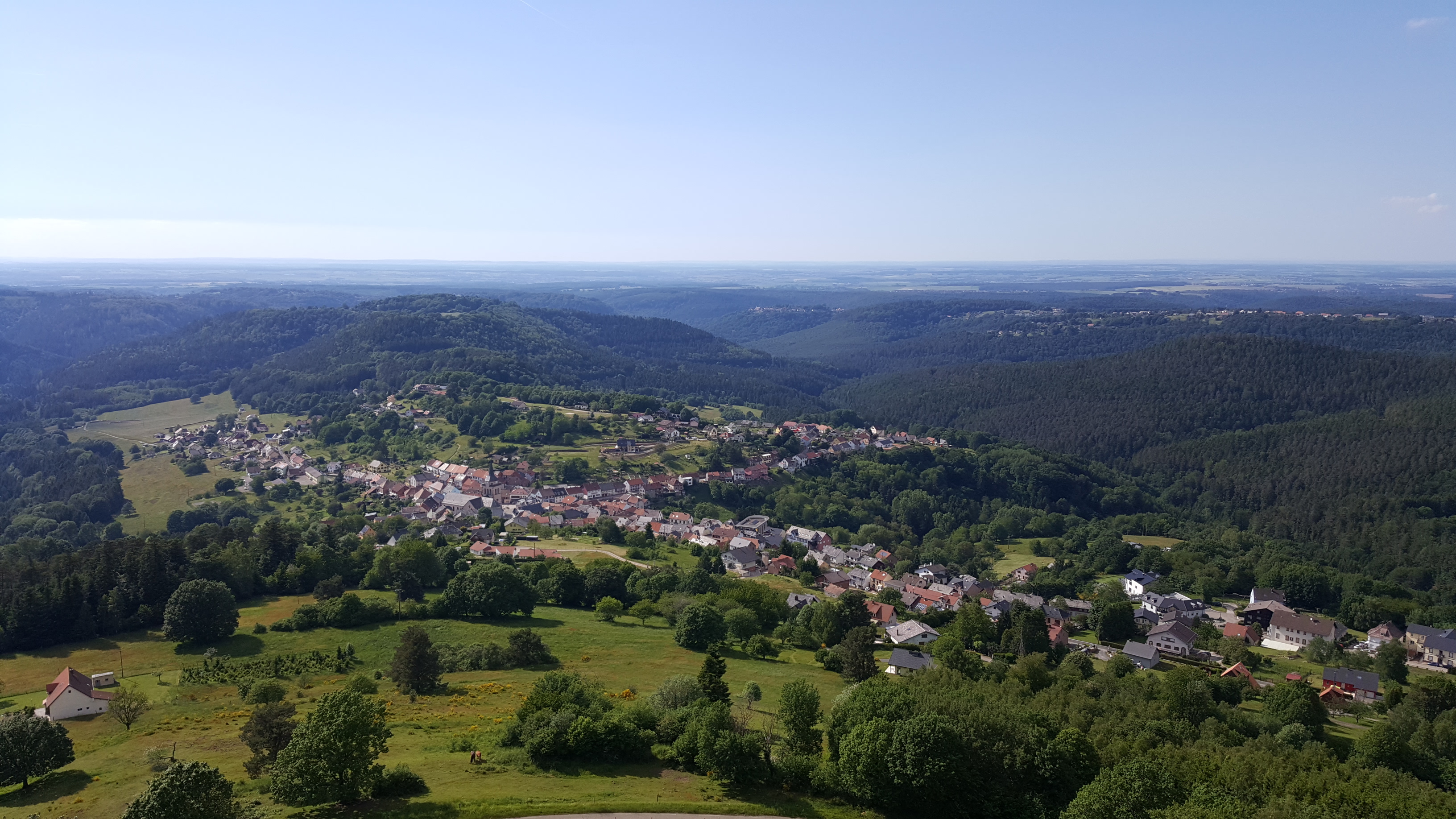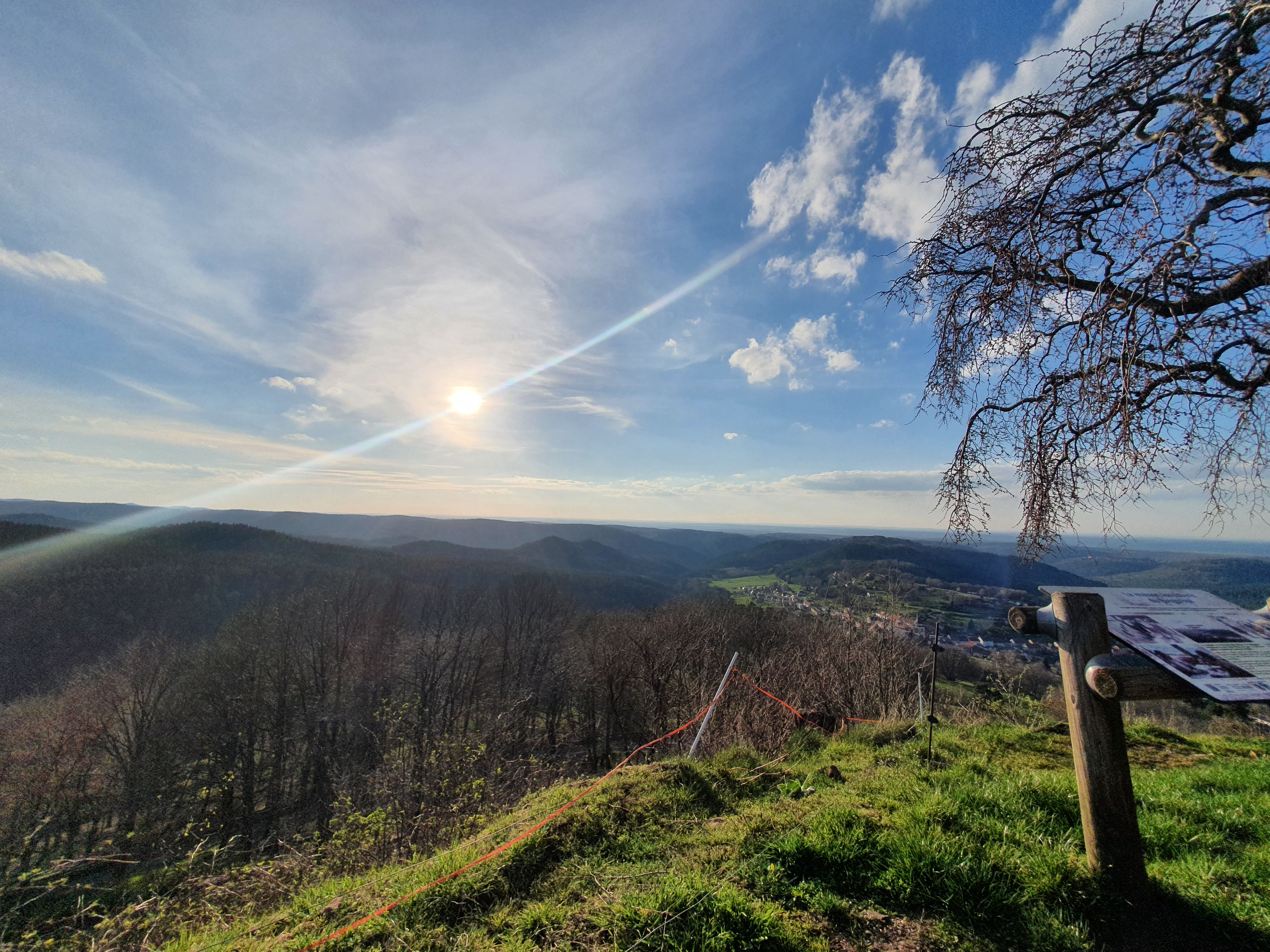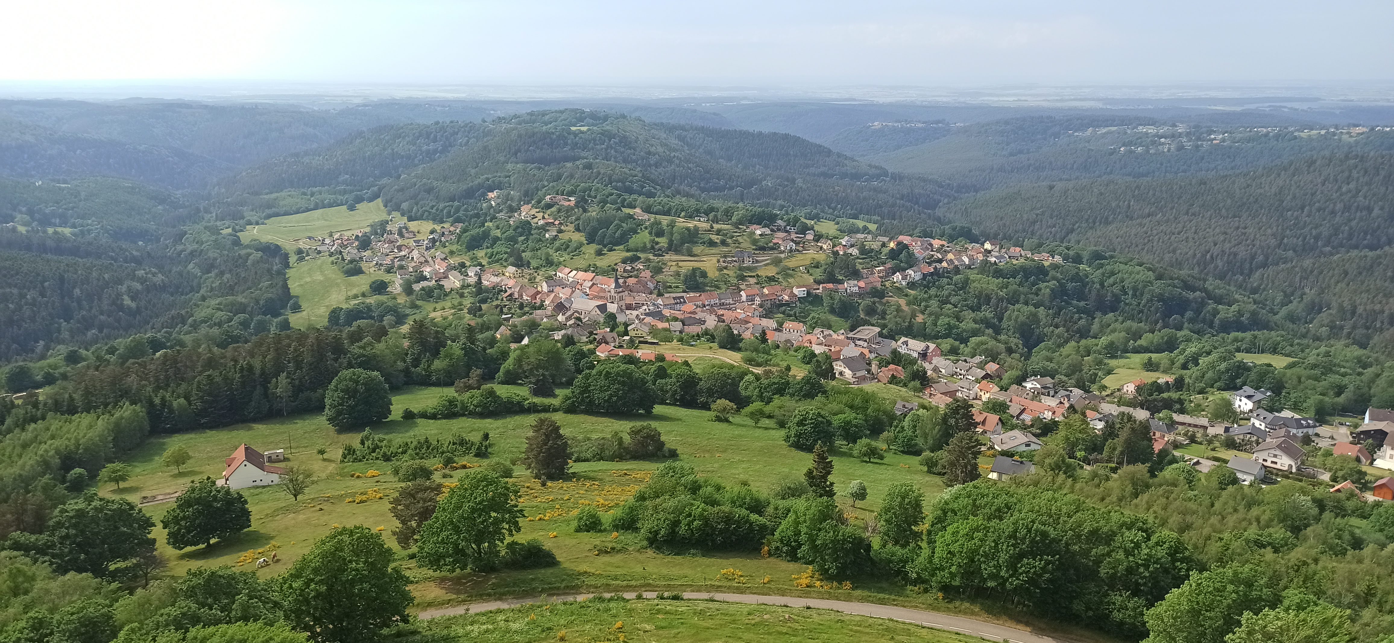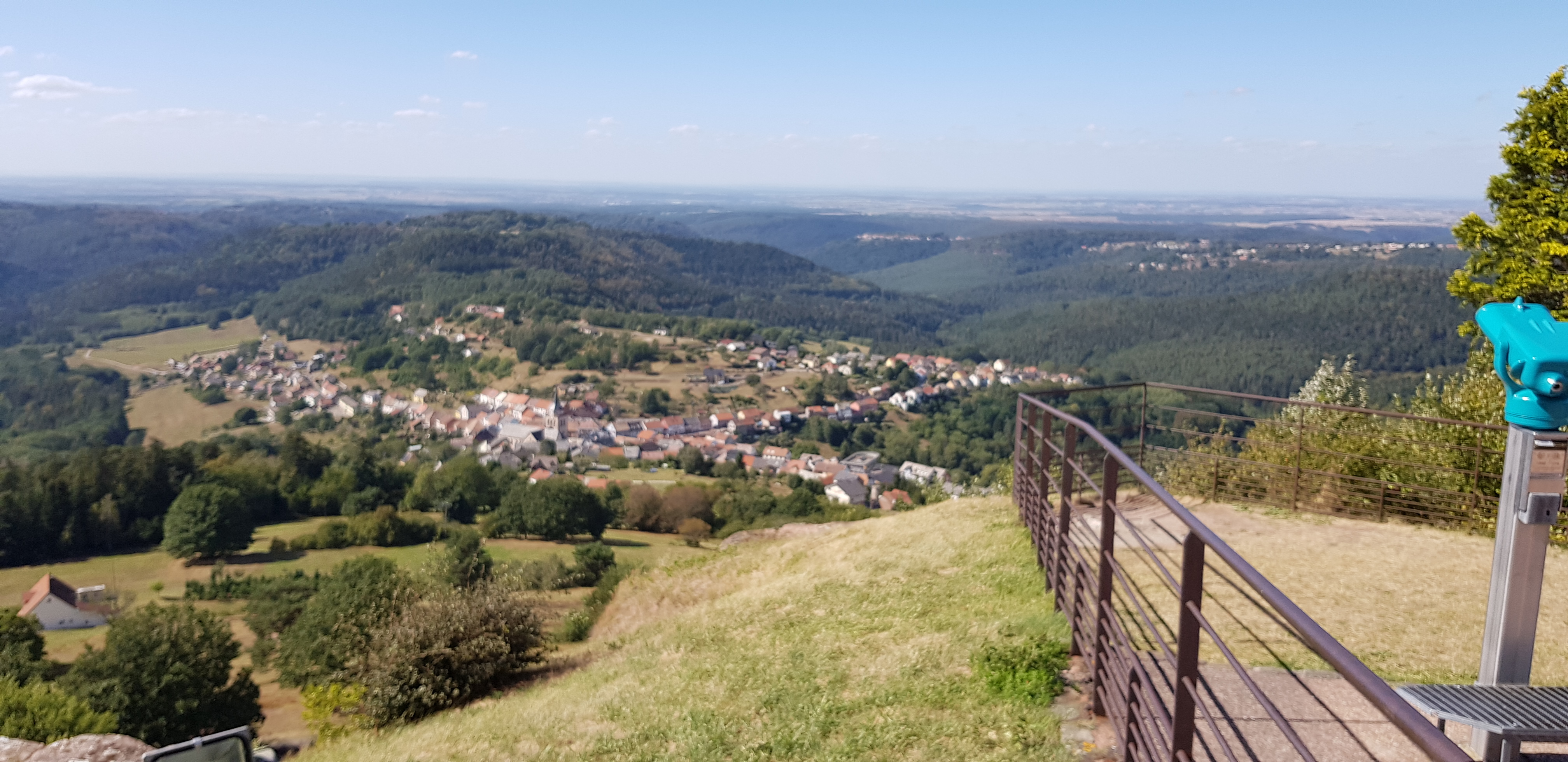 Une vue magnifique depuis la route d'accès où on découvre le promontoire rocheux au fur et à mesure. Une fois au sommet, un magnifique panorama sur la Lorraine alentours