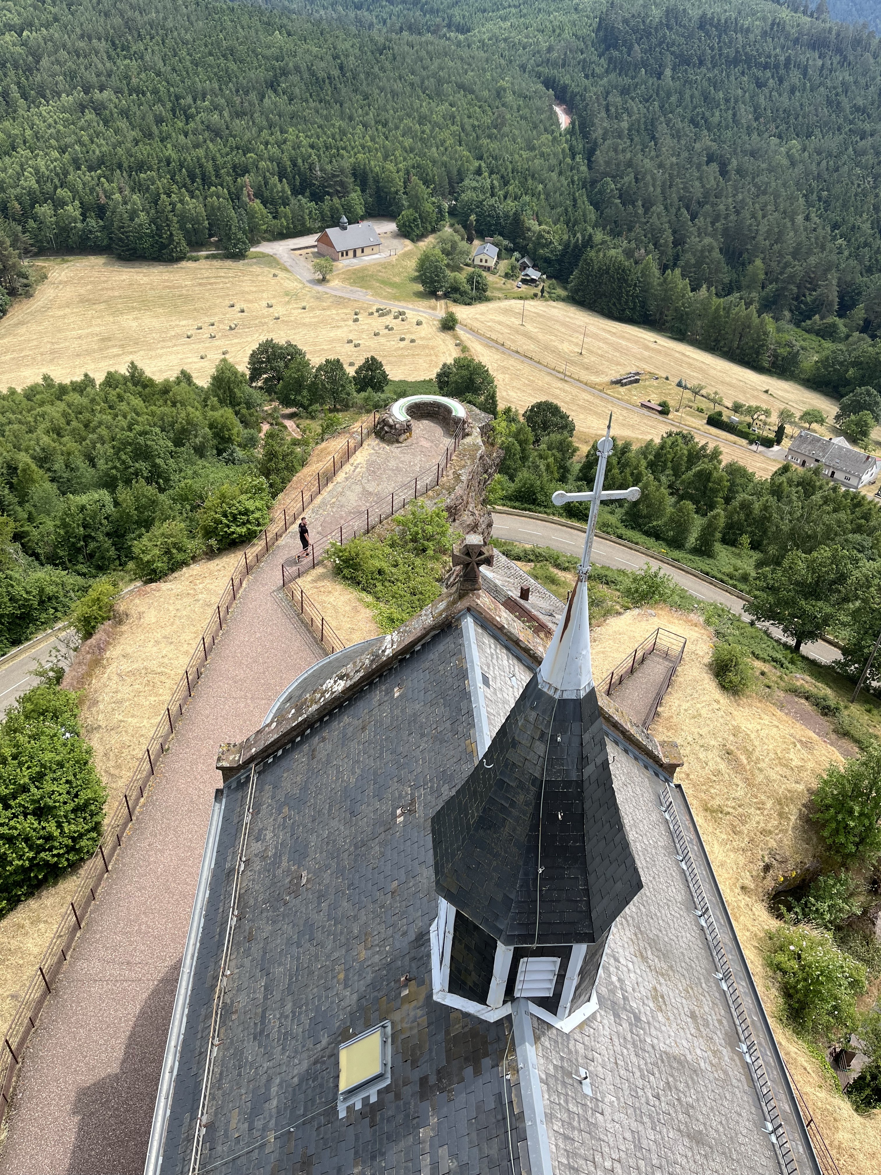 Dommage de pas avoir pu accéder a la tour de la chapelle. Vue imprenable sur le massif vosgien