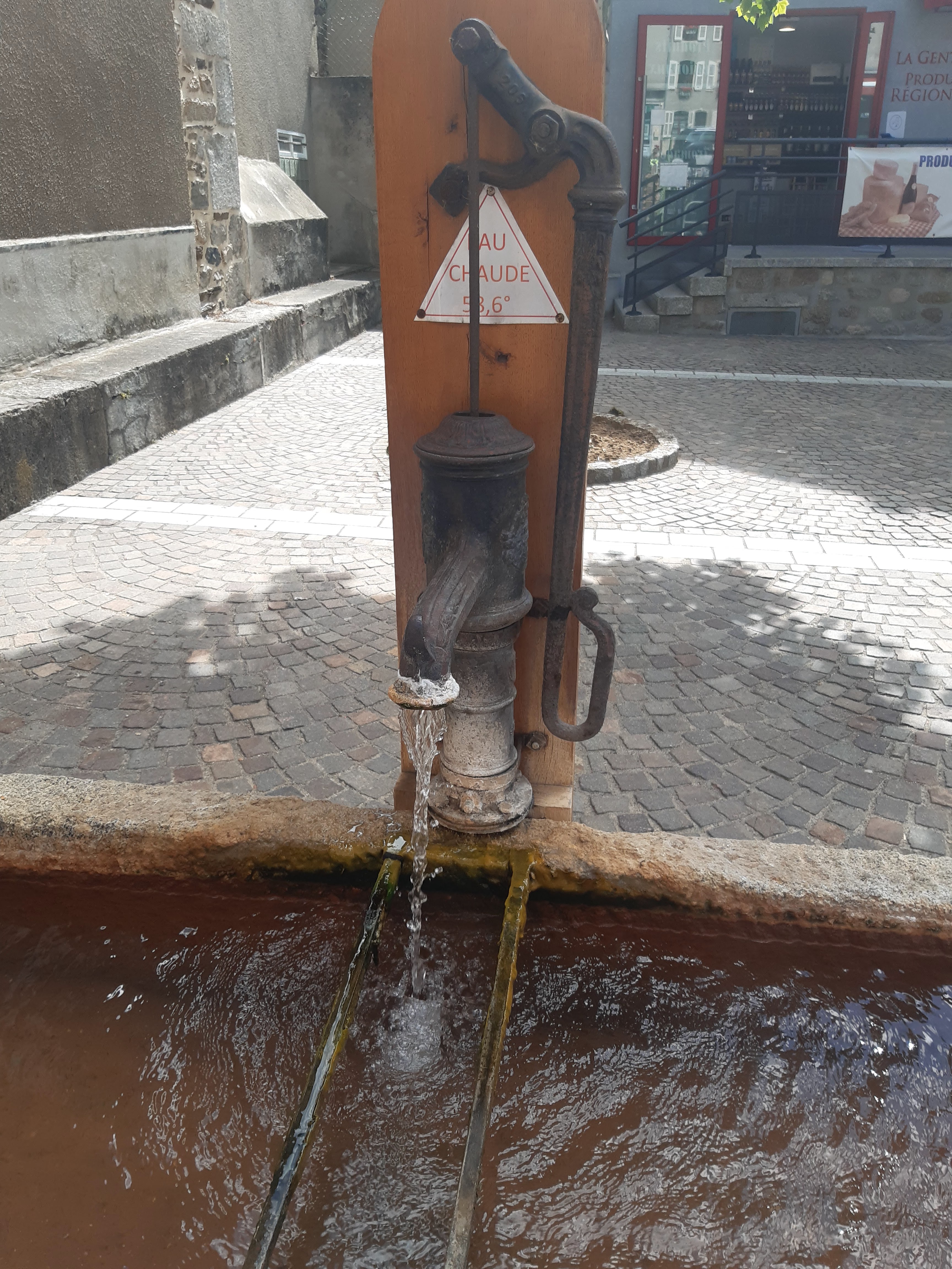 L'eau de source à 82°C, venant des entrailles de la terre ; grâce à elle, toute la ville de Chaudes-Aigues est alimentée pour le chauffage et l'eau chaude .