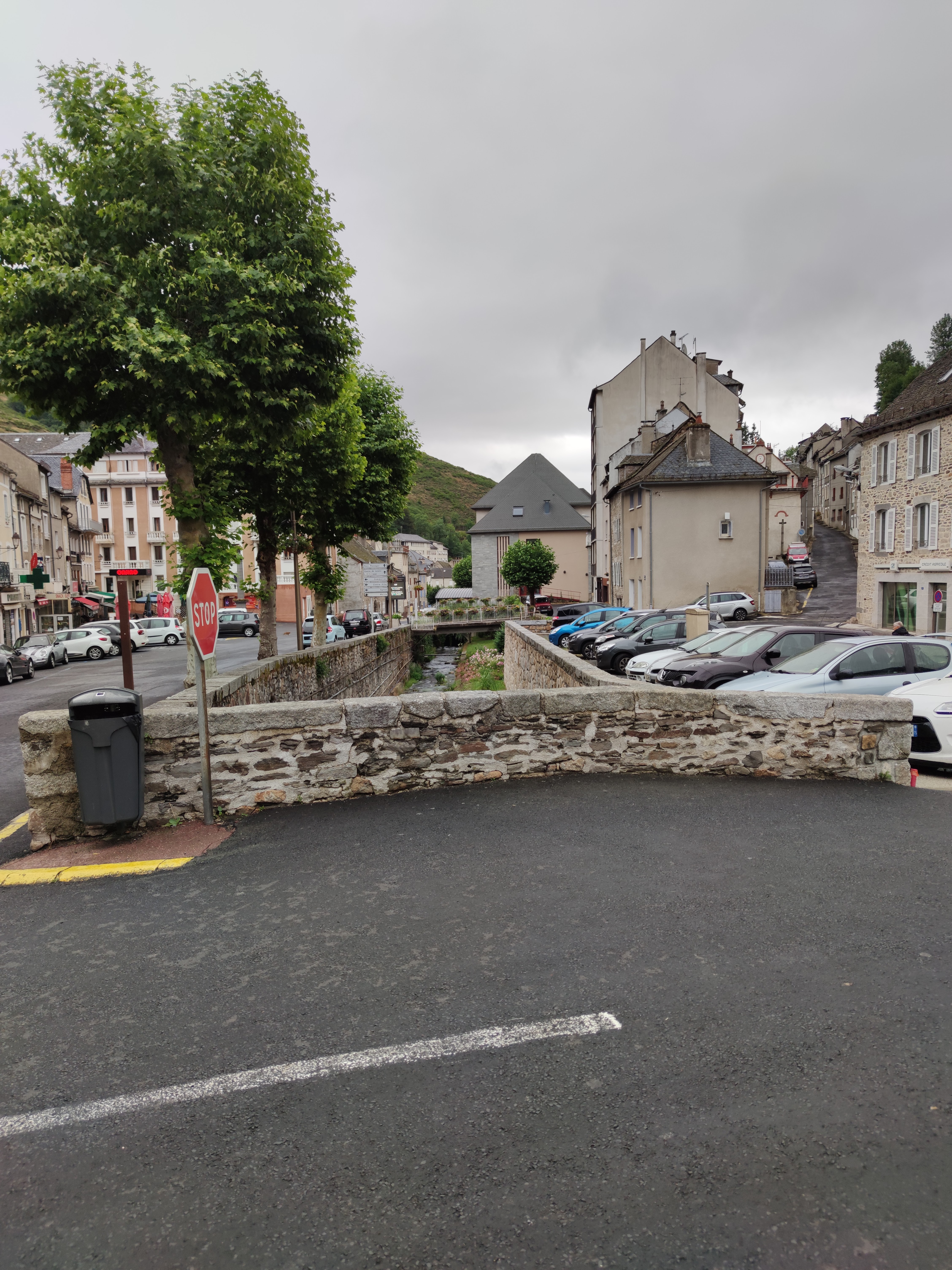 à découvrir dans Chaudes-Aigues, petite place cachée, parking, magasin alimentation, poste, souvenirs, etc, petit lieu retiré.
