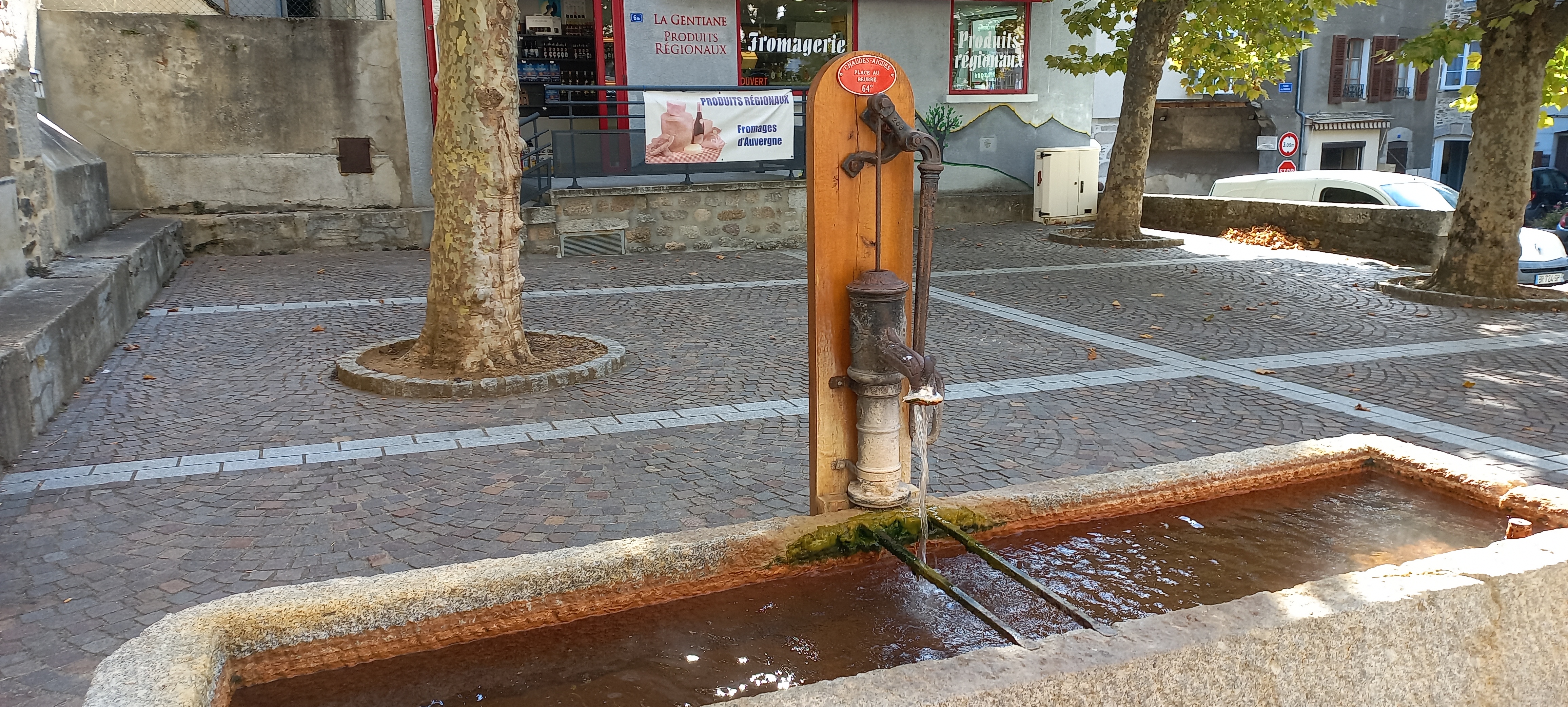 Joli village thermal ,toits de lauzes,fontaines et lavoir d'eau chaude[ 50 à ,82°]>^| des commerces de bonnes charcuteries et du bon fromage