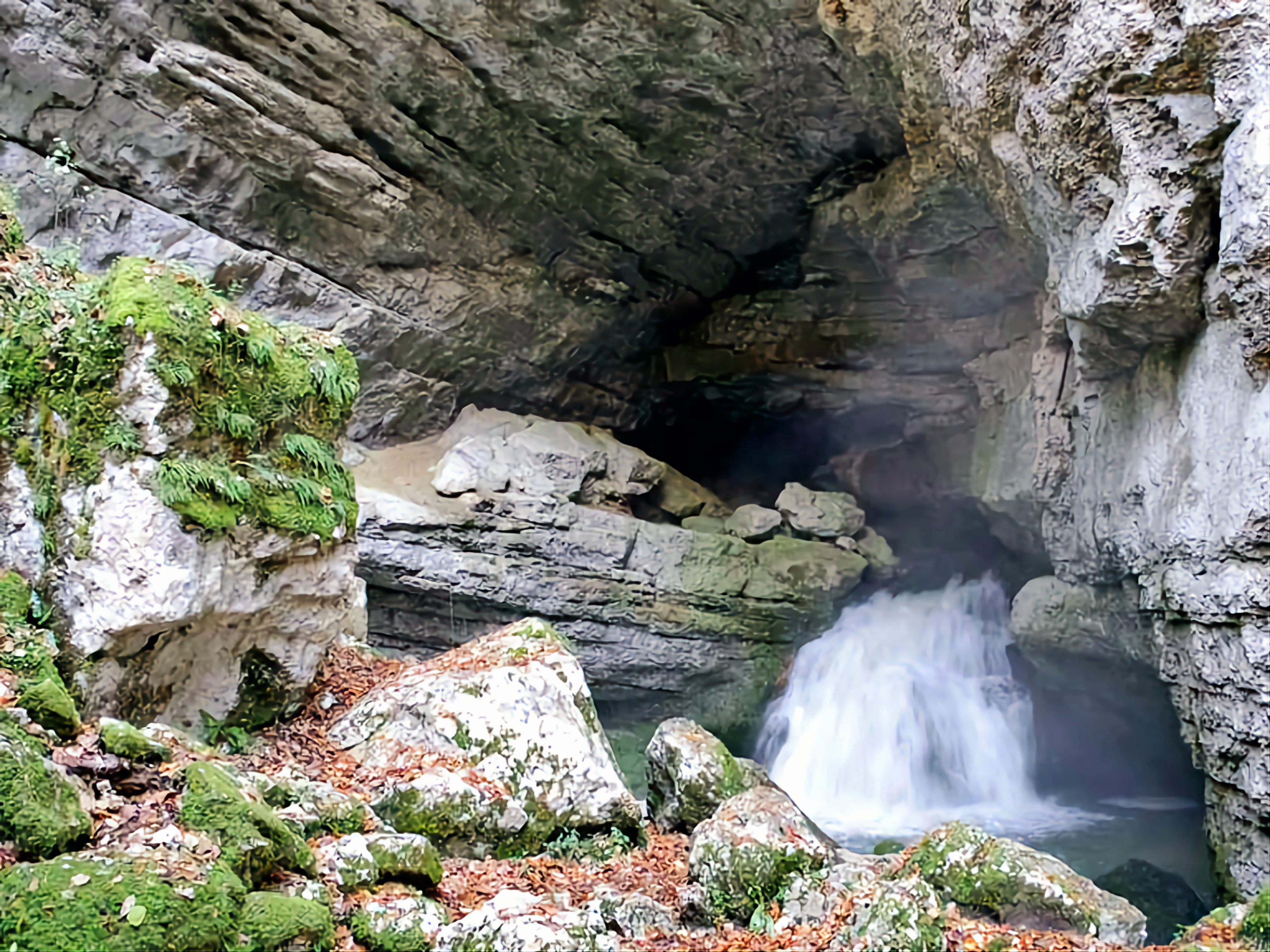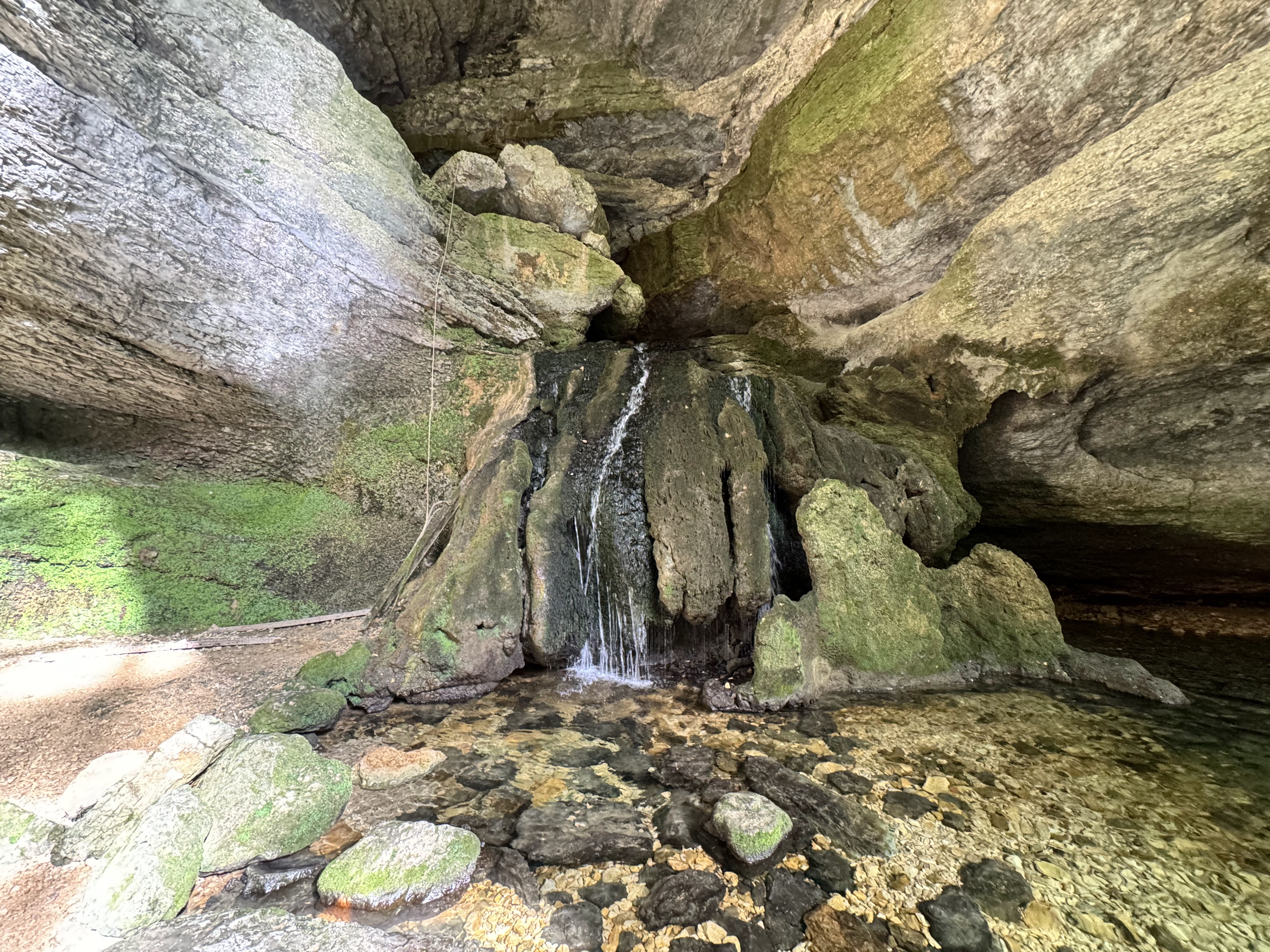 Intéressant point d’intérêt sur le chemin de la randonnée. Un bonne pause fraîcheur et un petit antre qui débouche sur des cavités calcaires plus profondes. Il y avait même une antique échelle en bois près de la jolie cascade pour les aventuriers les plus intrépides ! 😂