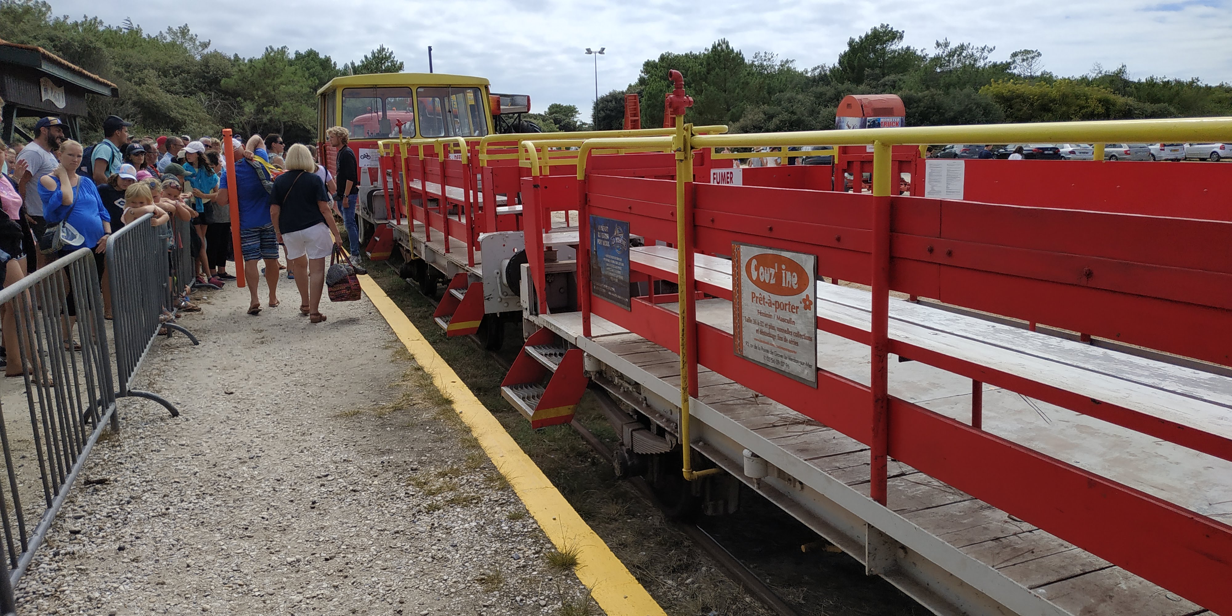 Déjà pris à deux reprises, le parcours fait plaisir à faire, nous traversons les pins pendant environ 20 minutes. Belle vue sur l'océan également. Beaucoup de bruit lors de la mise en route du sifflet à chaque traversée de route ou de piste cyclable mais ce n'est rien. Possibilité de faire le trajet en extérieur ou en cabine. 4€ l'aller et 7€ l'aller - retour. A refaire.