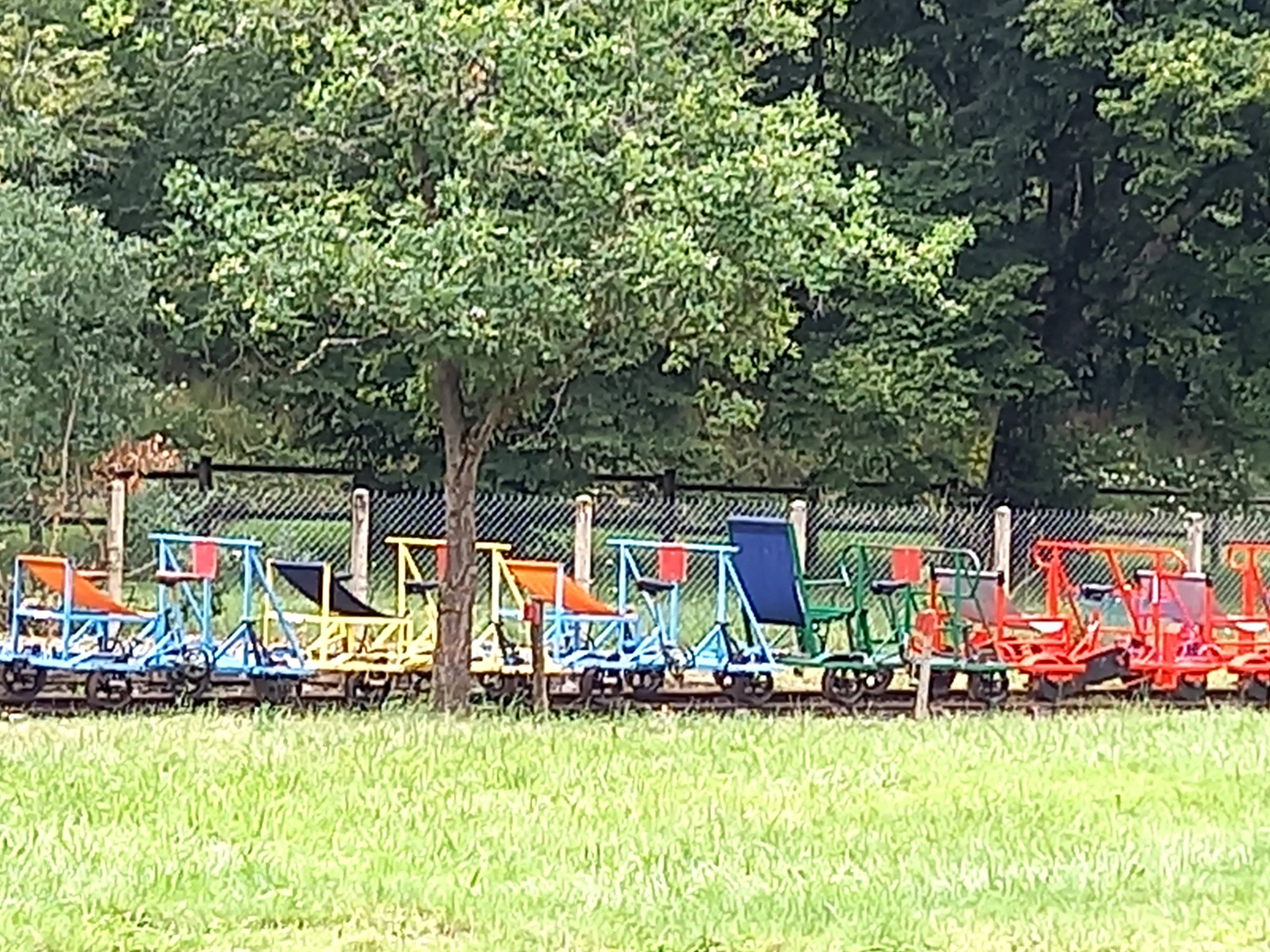 J'ai bien aimé cette attraction. ● 25€ pour 4 ou 5 personnes max (réservations obligatoires). ● 1h de pédale sur des rails dans des petites montées (petite mais physique !), et dans des petites descentes - descente à l'allée - monté au retour (donc vous épuisez pas à l'allée) ● Parfois on pédale souvent dans le vide (comme un vélo en vitesse 1) car le vélo n'a pas de vitesse. Cependant vous ressentirez quand même les sensations dans la montée. ●Des petits paysages sympas ●Petit coin pour manger et boire avec des tables et chaises ● Un concept original à refaire entre amis ou en famille (pas tout seul vous y arriverez pas) ● SPOILER●●●●●●●●●●●●●●● Vous êtes dans la forêt, vous passerez sous un pont, vous verrez un ruisseau (j'ai oublié le nom 😅). Vers la fin vous verrez une grande scierie avec des quantités hallucinante de bois. ●●●●●●●●●●●●●●●●●●●●