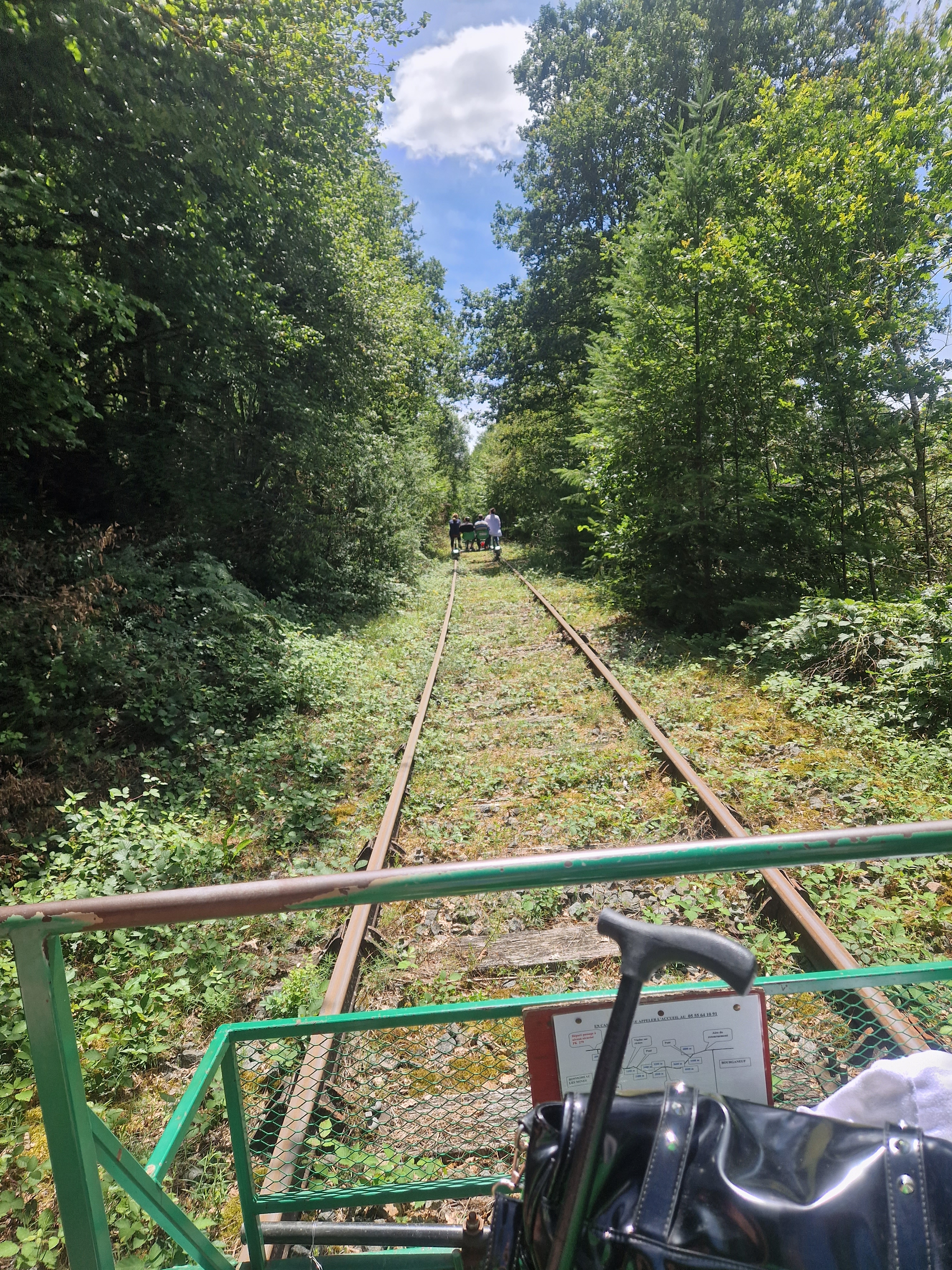 Un bon moment en famille, à faire tout âge confondu, il ne faut que 2 personnes qui pédalent par vélo.5 kms aller et idem retour, on retourne le velorail au bout, plus facile à l'aller car ça descend pas mal 😉 Jolie ballade dans le vert !